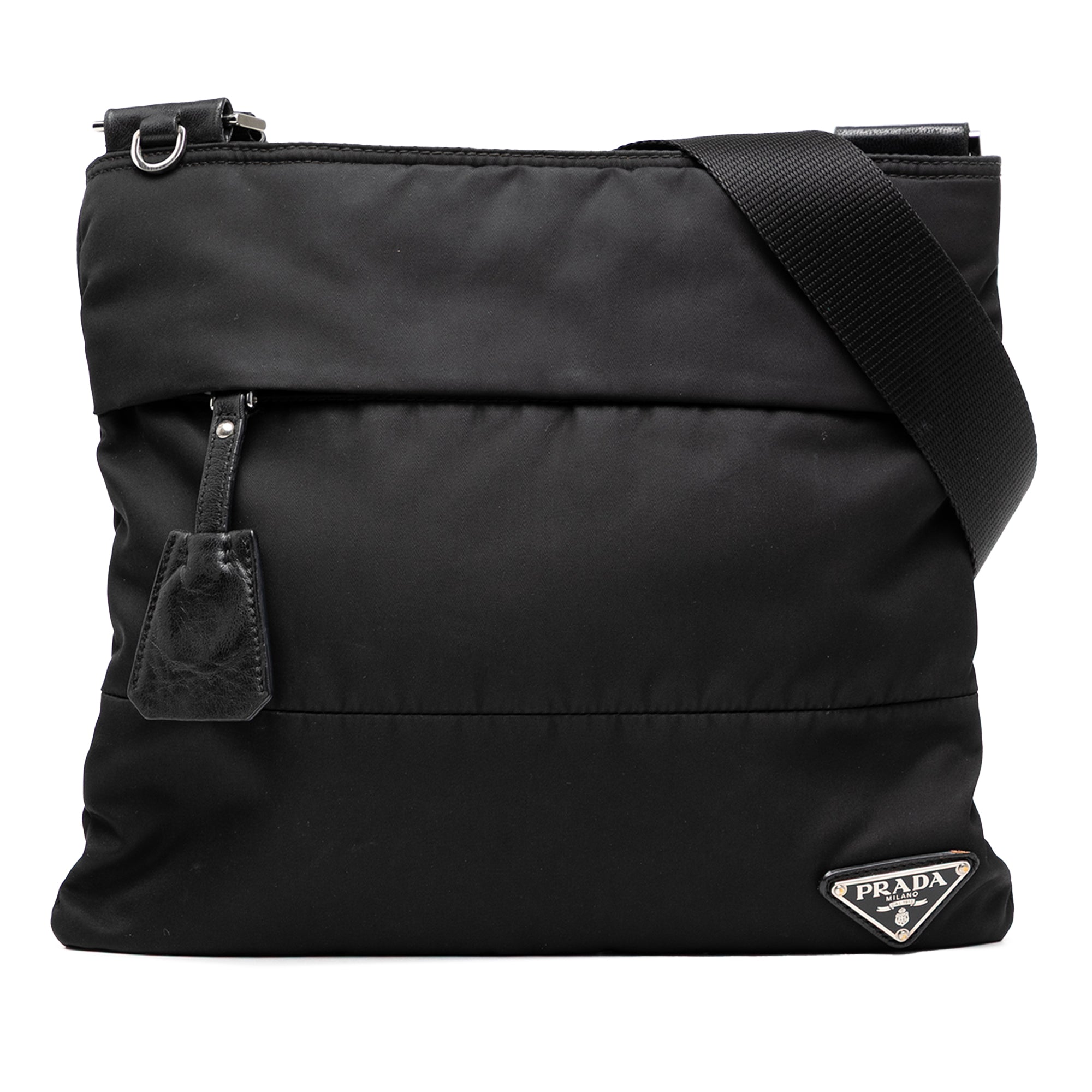 This crossbody bag features a nylon body, a flat adjustable canvas strap, a top zip closure, an exterior front zip pocket, and an interior zip pocket. Retail Price: 600.00