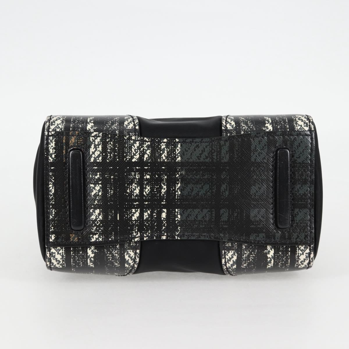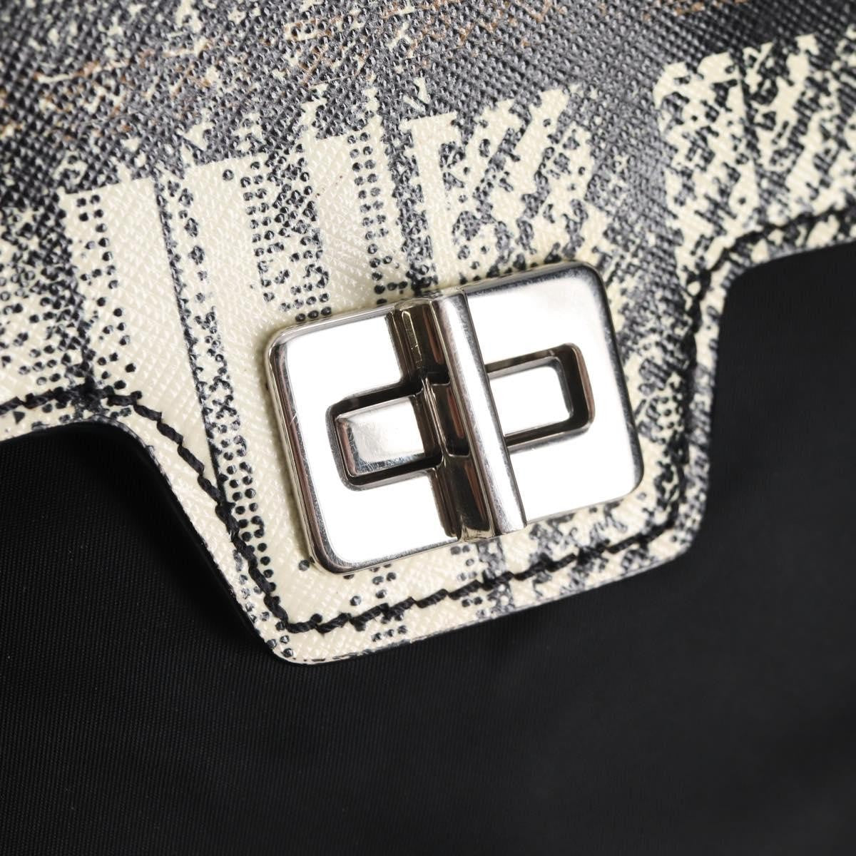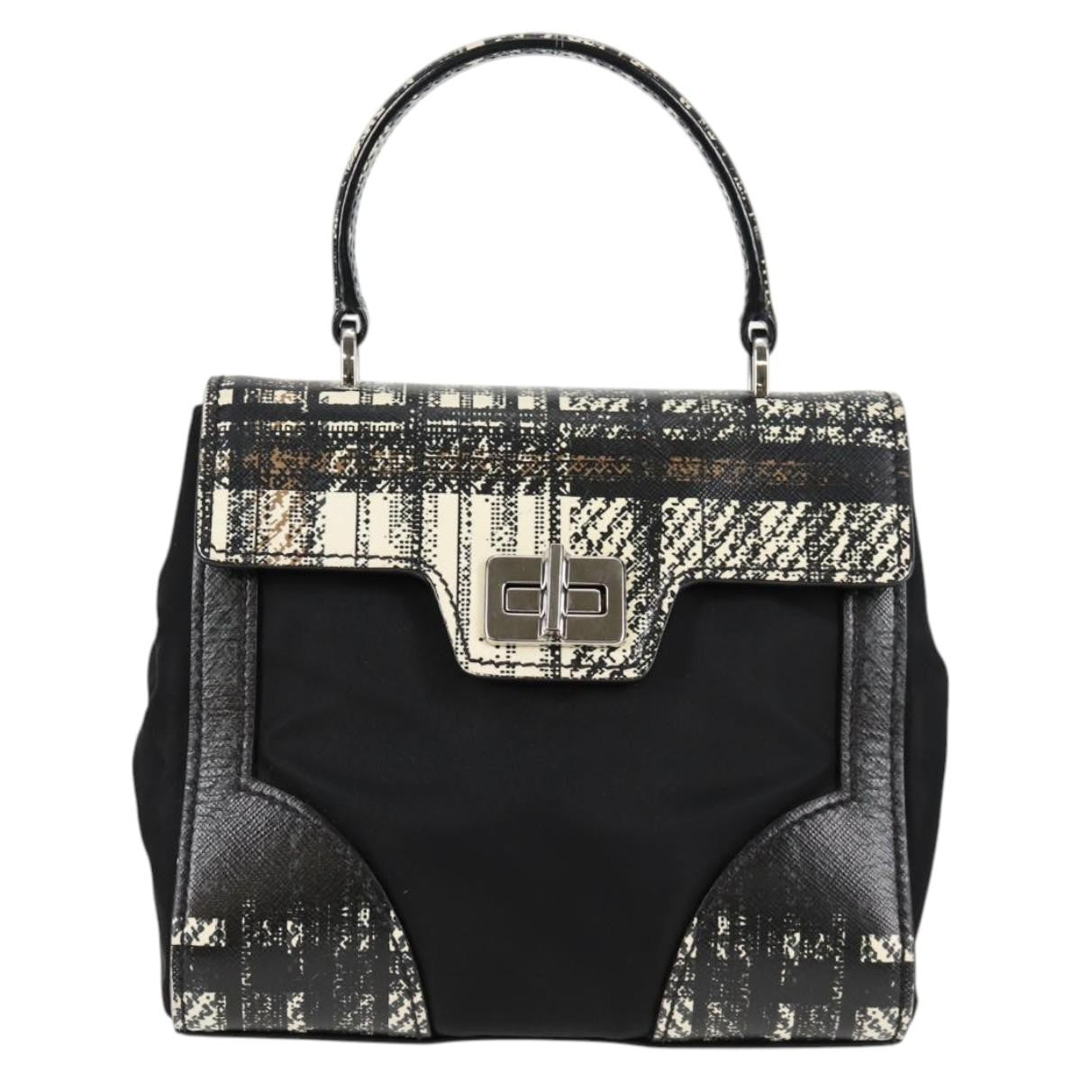 Prada Turn Lock Top Handle Bag Printed Saffiano Leather with Tessuto