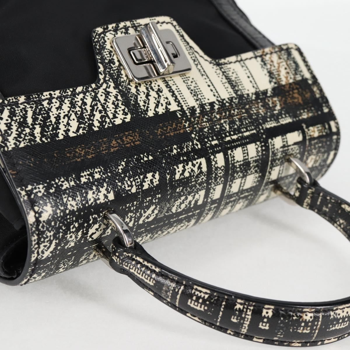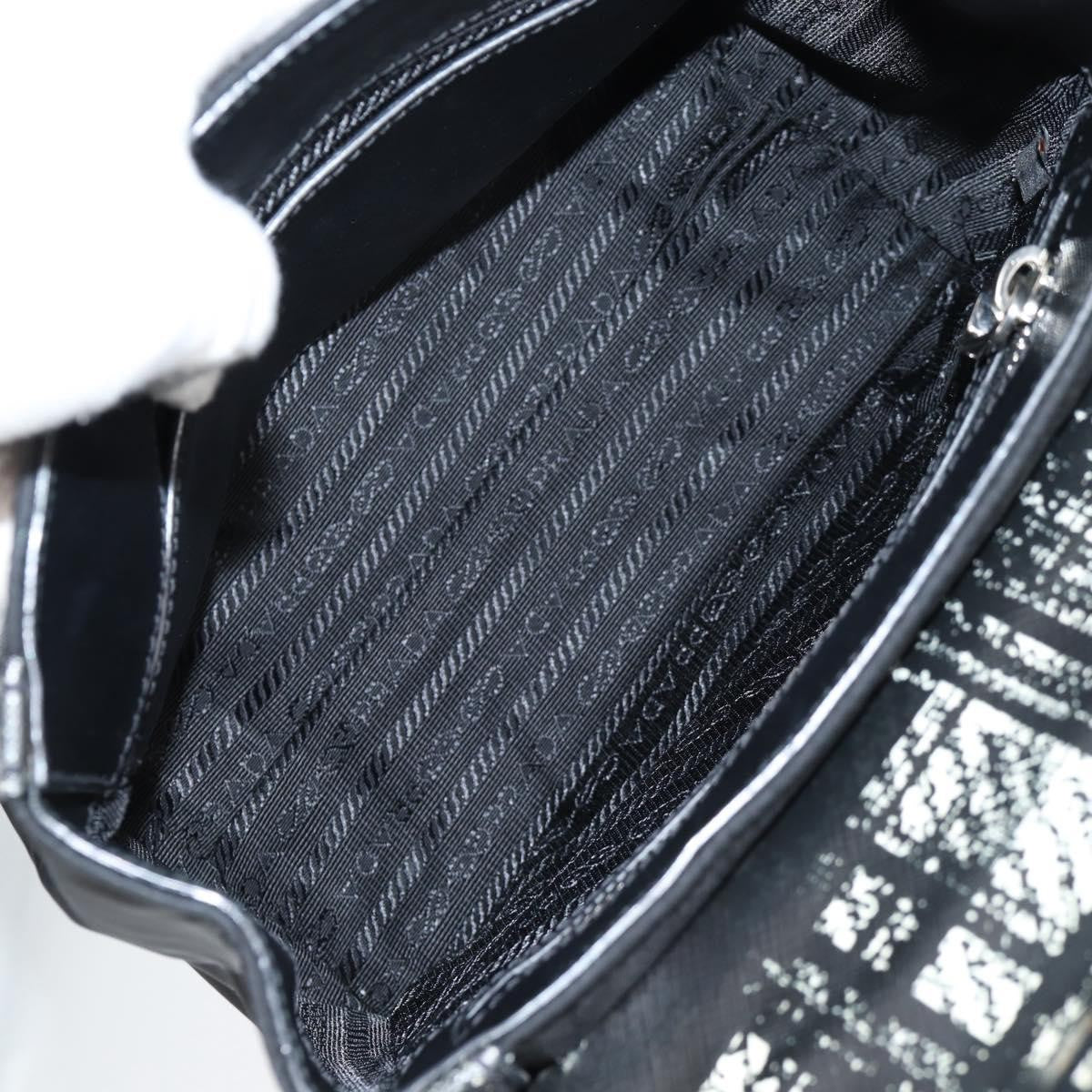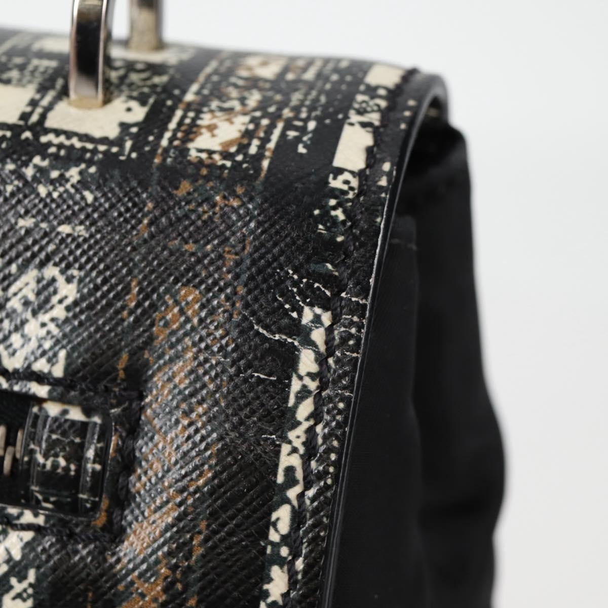 Prada Turn Lock Top Handle Bag Printed Saffiano Leather with Tessuto