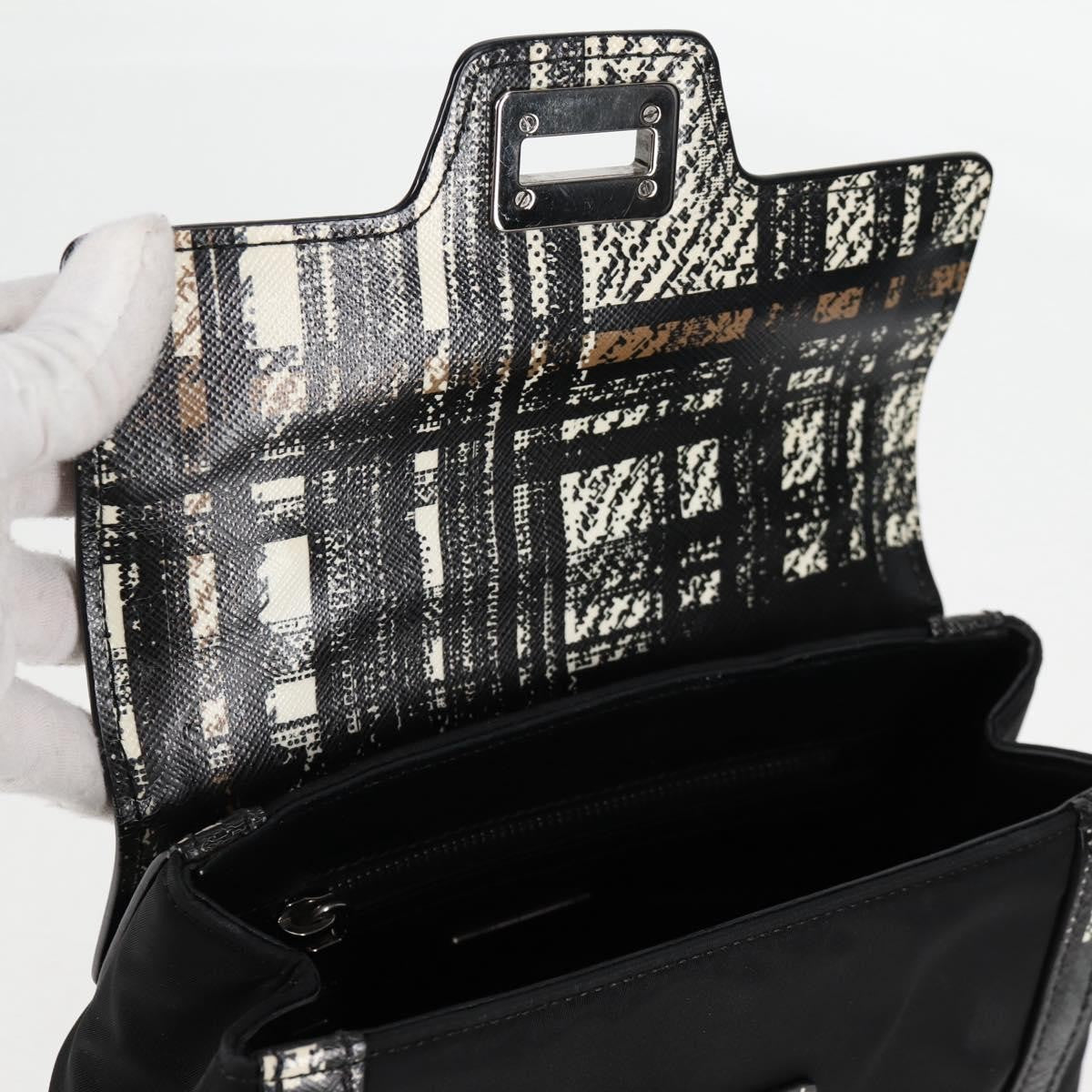 Brand : Prada Model : Turn Lock Top Handle Bag Style : Printed Saffiano Leather with Tessuto Serial number : 25 Inclusions : Shoulder Strap