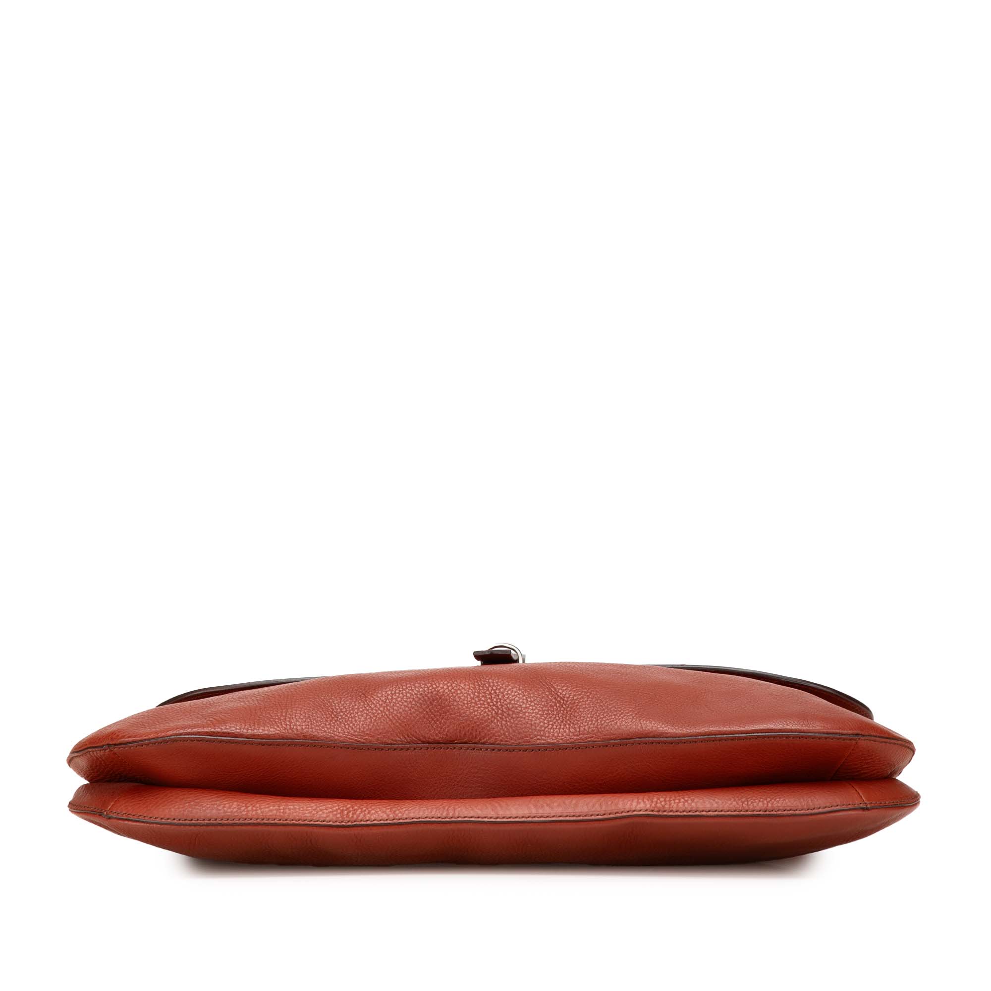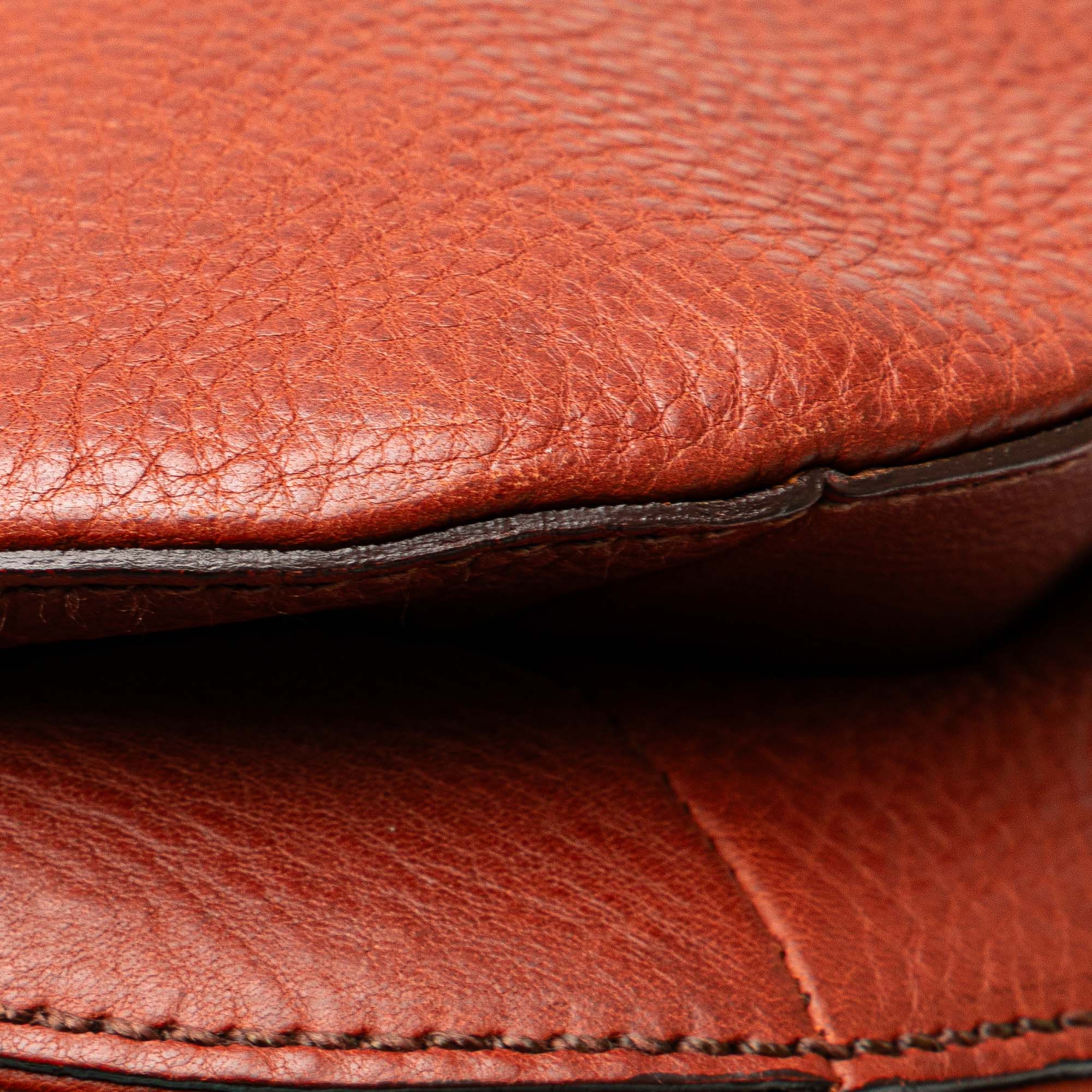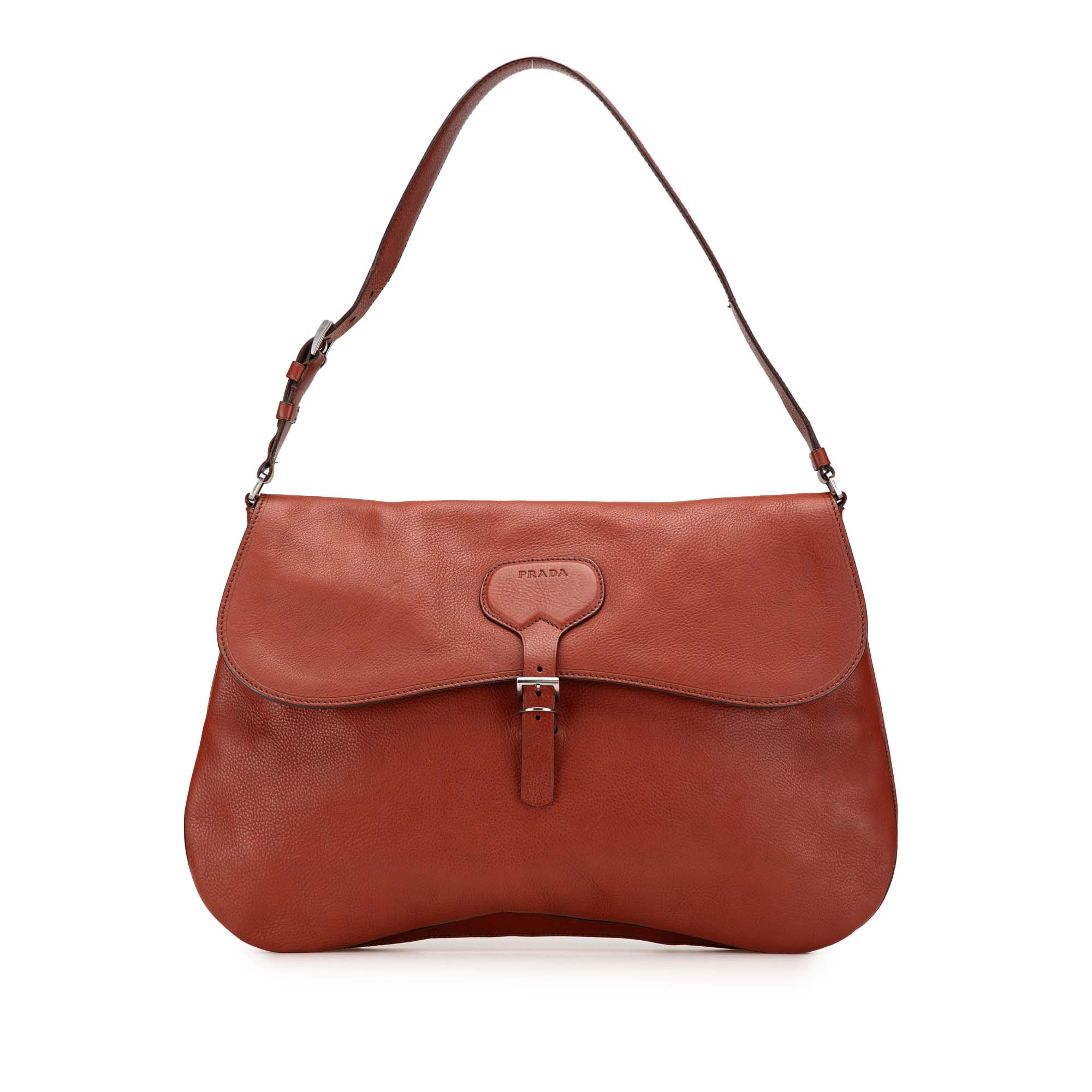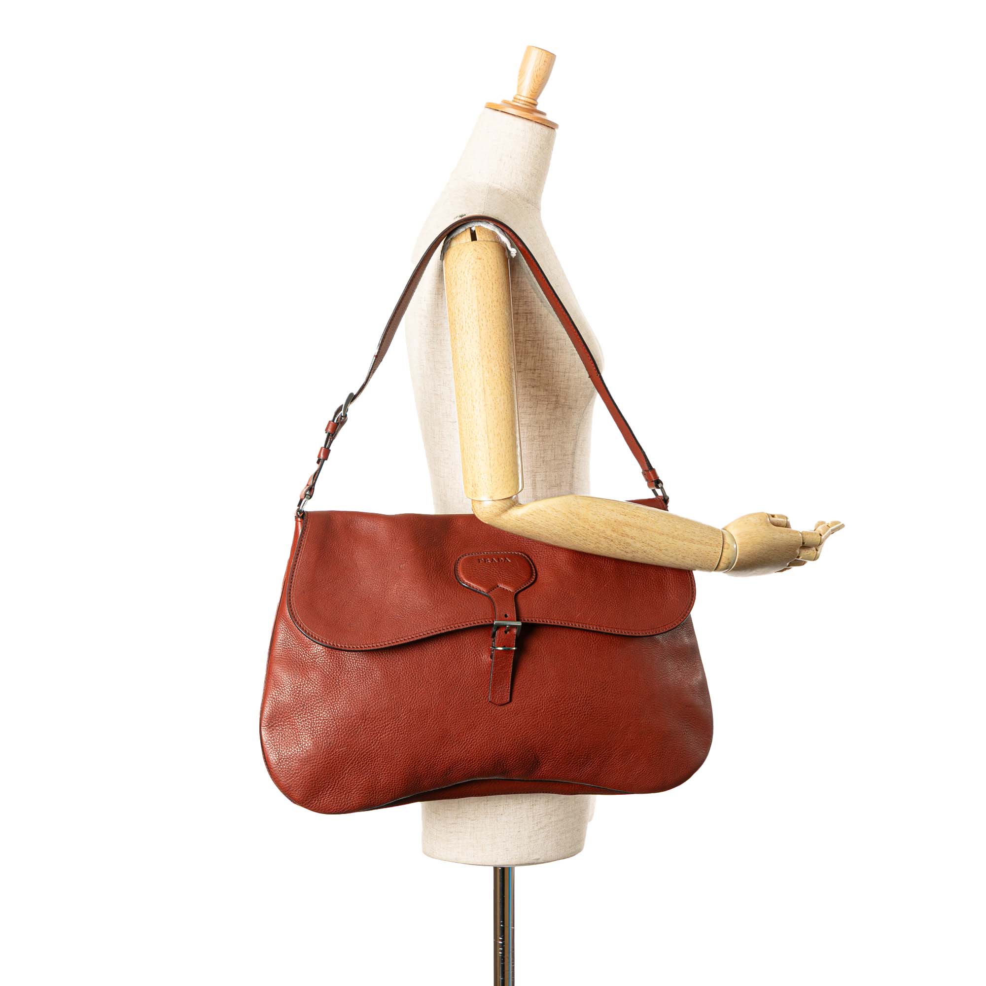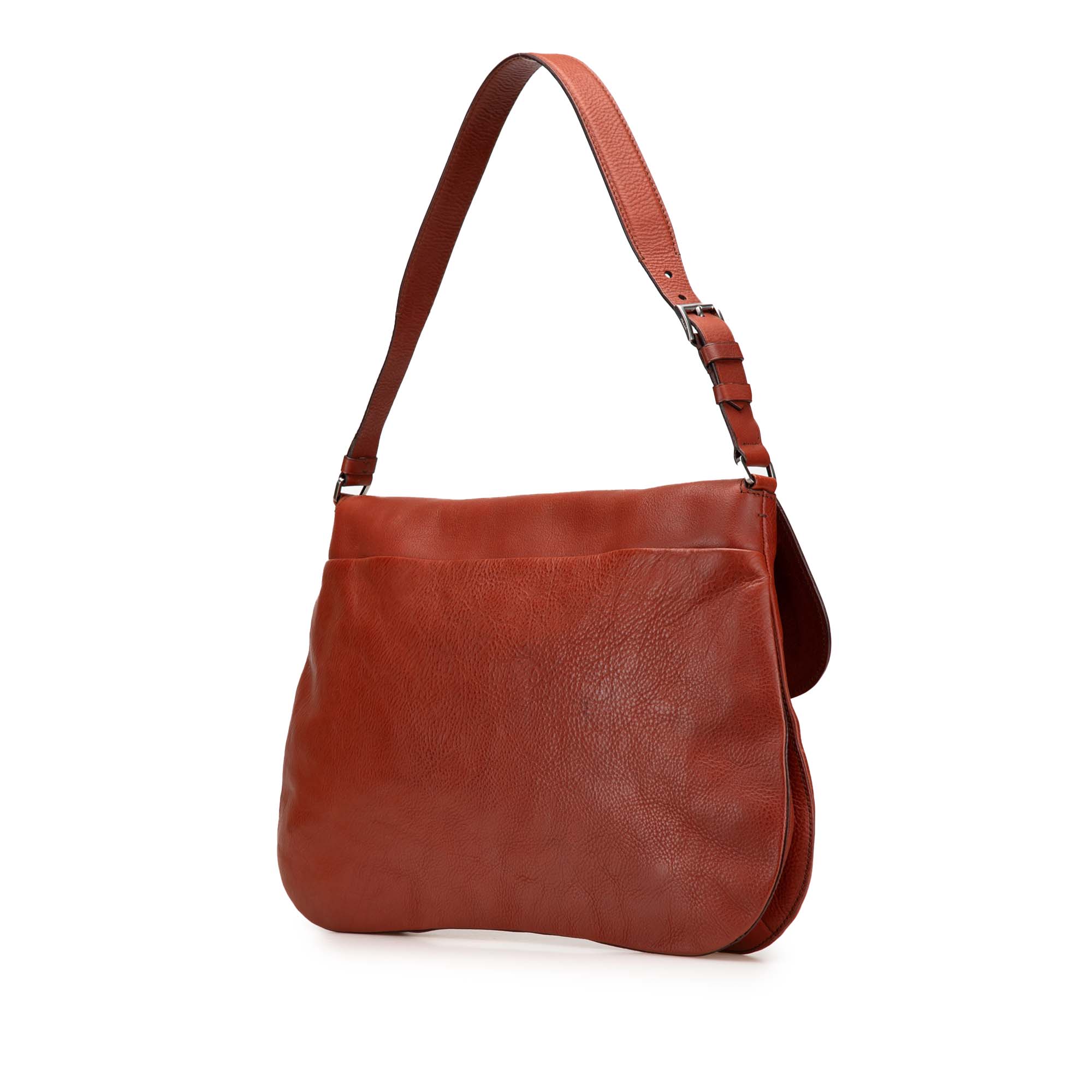 This shoulder bag features a leather body, a flat leather strap, a front flap with buckle closure, and an interior zip pocket. Inclusion: Dust bag. Retail Price: 395.00