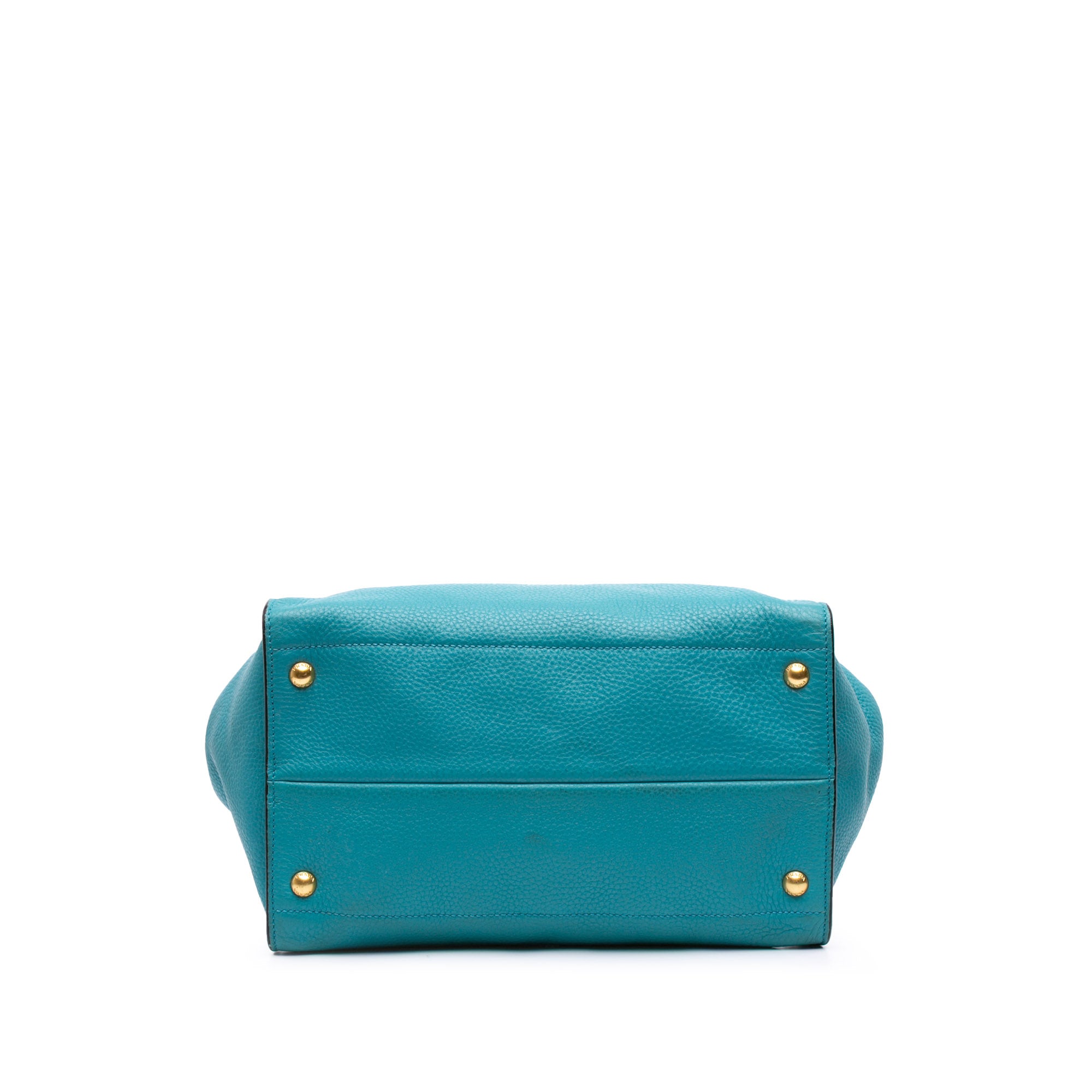This satchel features a leather body, rolled leather handles, a detachable flat leather strap, an open top with magnetic snap closure, and interior zip and slip pockets. Inclusion: authenticity card. Retail Price: 1780.00