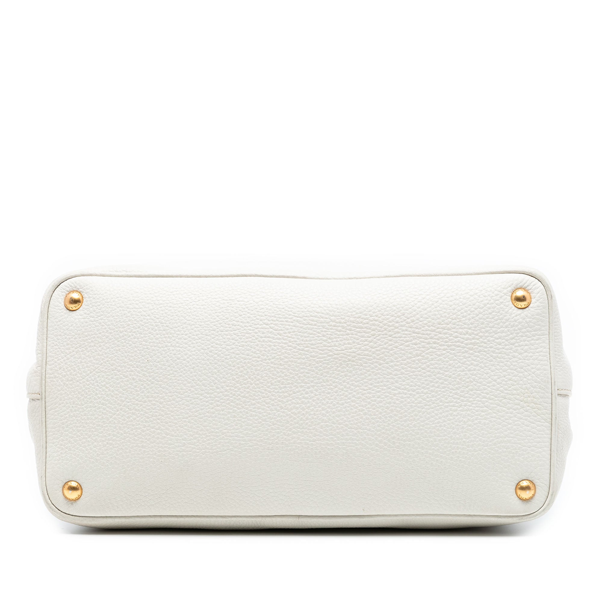 This satchel features a leather body, rolled leather handles, a detachable flat strap, an open top with a snap button closure, an interior zip compartment, and interior zip and slip pockets. Inclusion: authenticity card. Retail Price: 1695.00