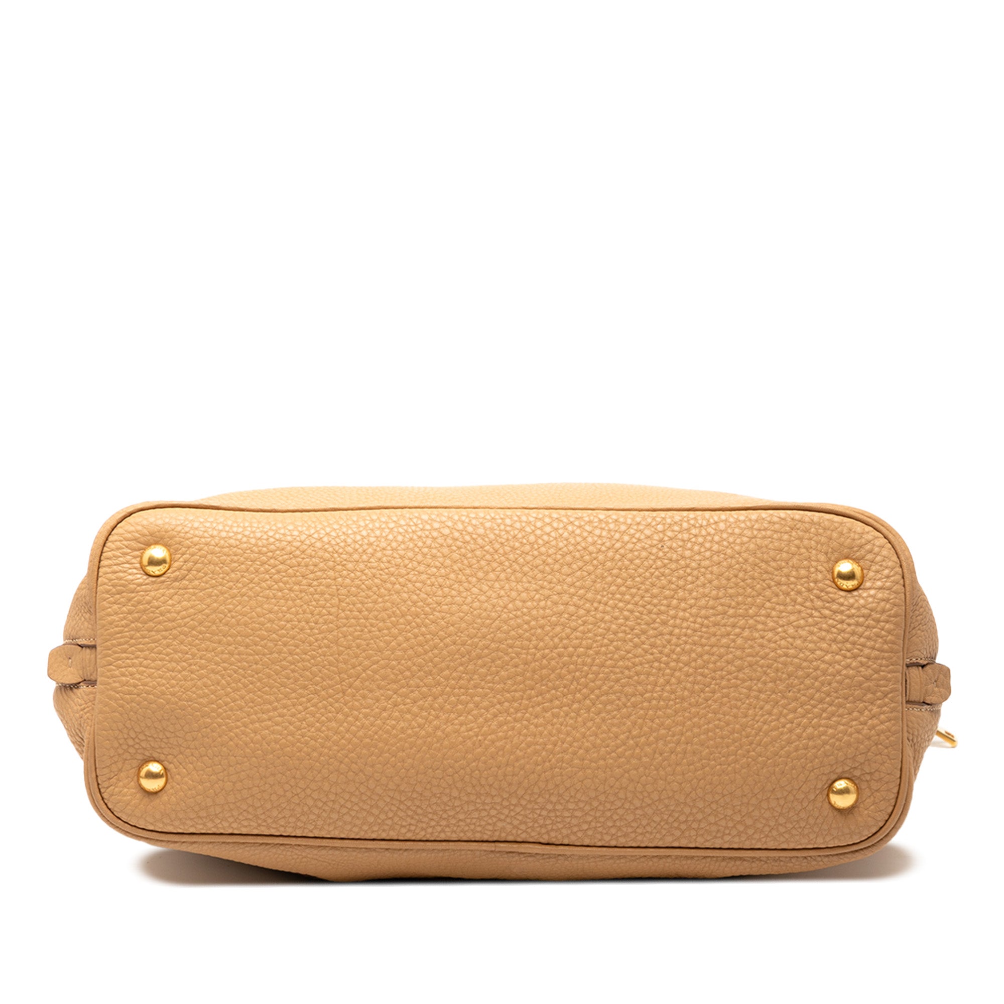 This satchel features a leather body with size zip expansions, rolled leather handles, a detachable flat leather strap, an open top with snap closure, and interior zip and slip pockets. Inclusion: authenticity card. Retail Price: 1750.00