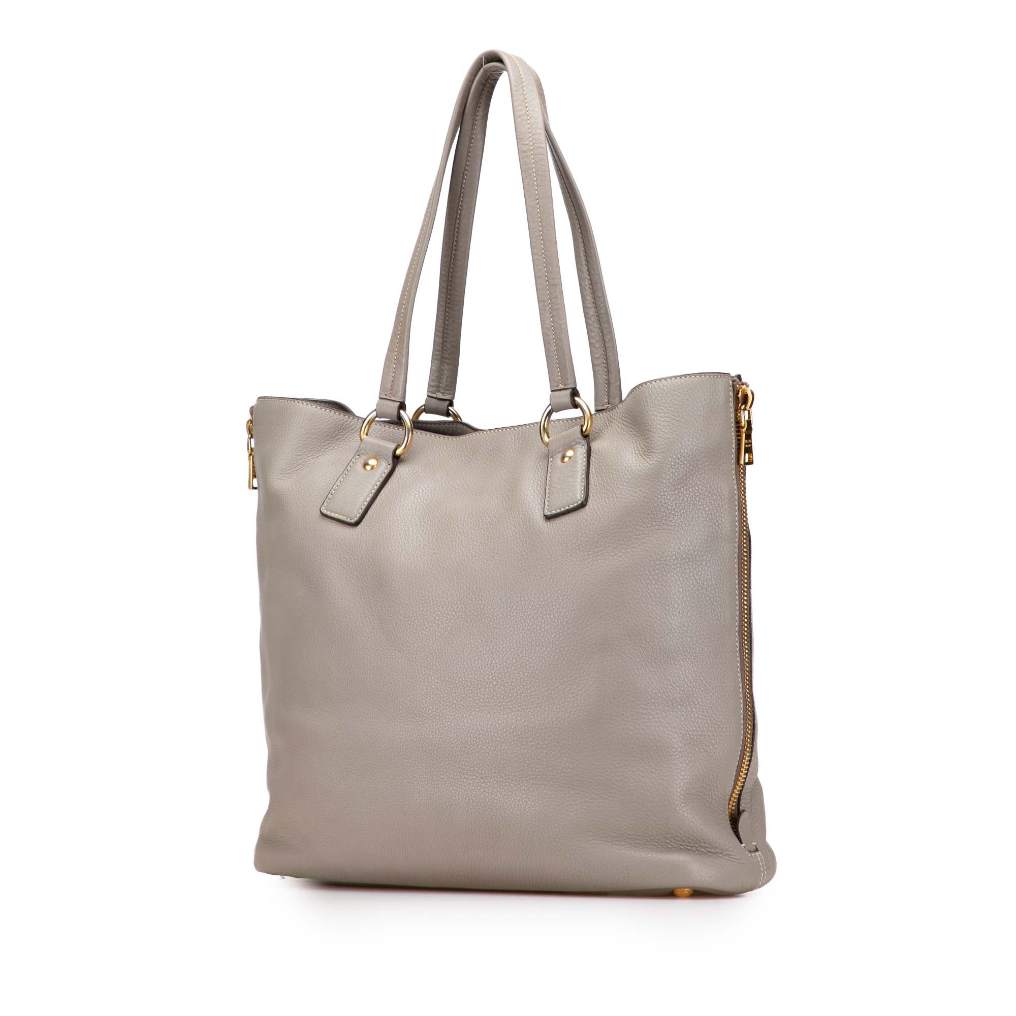 This tote features a leather body with size zip expansions, flat leather straps, an open top with snap closure, and interior zip and slip pockets. Retail Price: 1480.00
