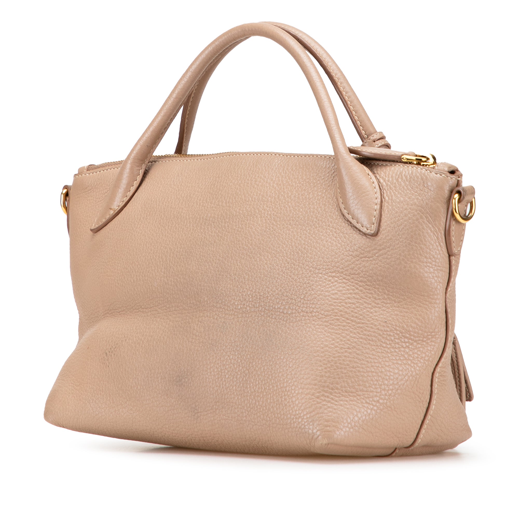 This satchel features a leather body, rolled leather top handles, adjustable and detachable flat leather shoulder straps, a top zip closure, and interior zip and slip pockets. Inclusion: authenticity card. Retail Price: 1790.00
