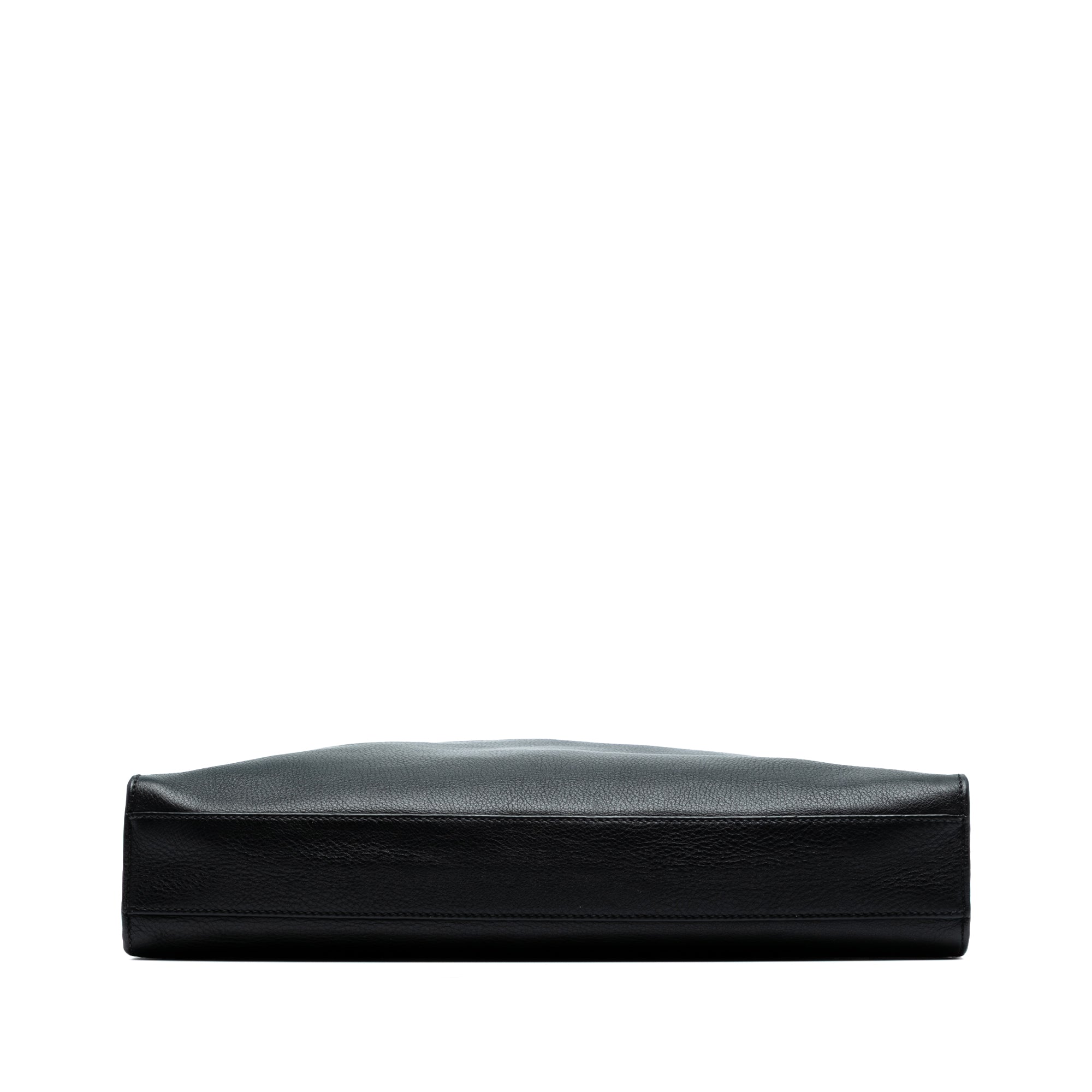 This satchel features a leather body, flat leather handles, a detachable flat leather strap, an open top with magnetic closure, and interior zip and slip pockets. Retail Price: 2100.00