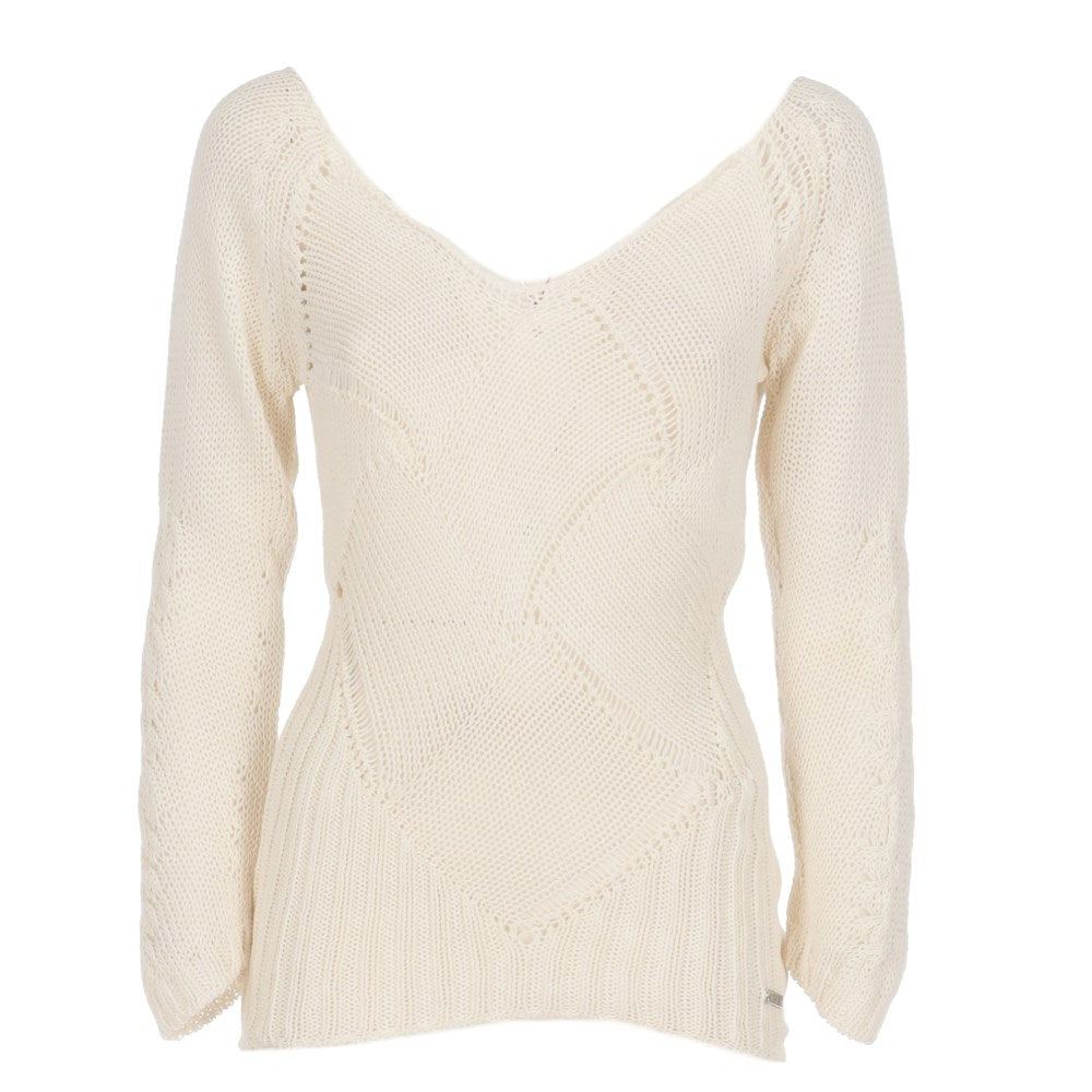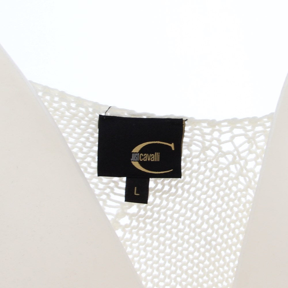 Just Cavalli perforated white cotton blend 2000s sweater. V-neck, long sleeves.