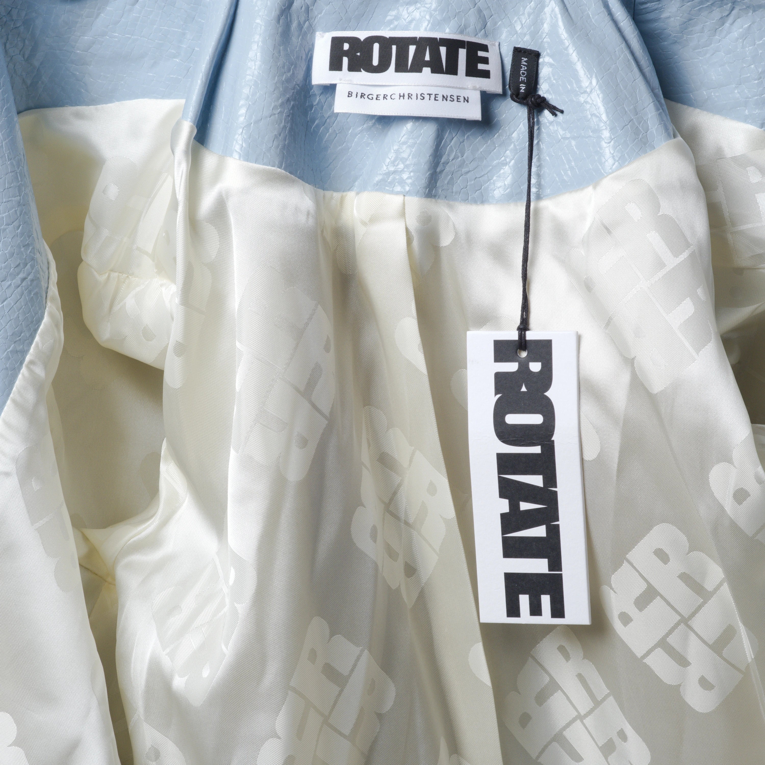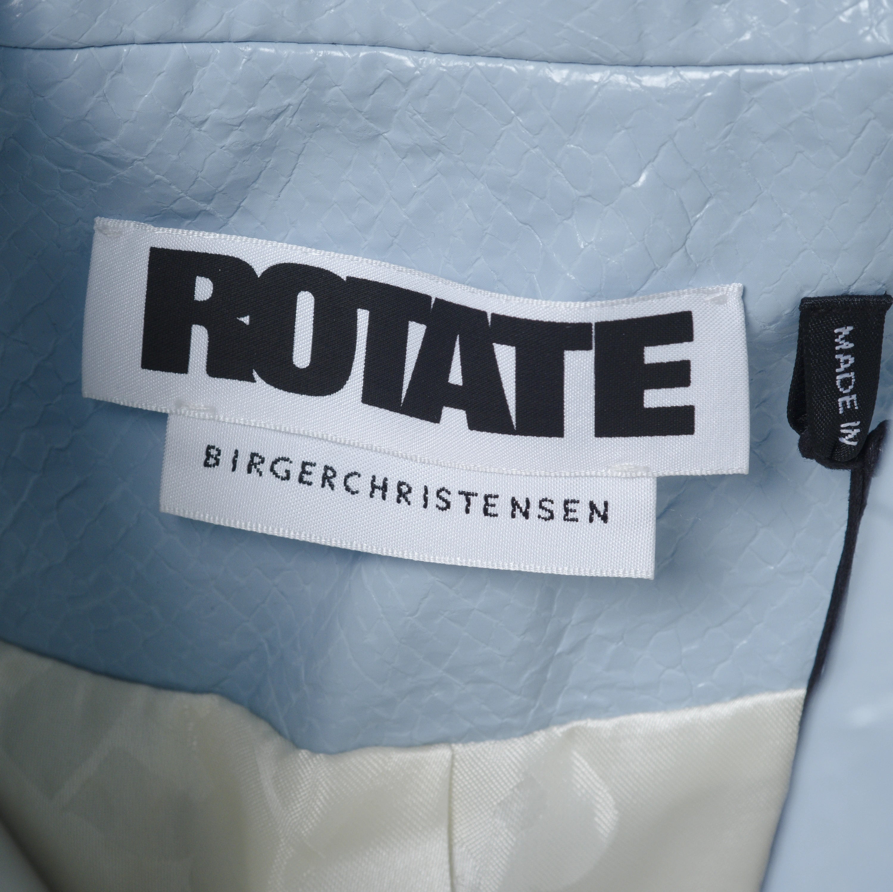 Women's blazer by Rotate Birger Christensen with a contemporary and refined design. The clean, structured lines flatter the figure, while the fabrics ensure comfort, durability, and precise finishes. The blazer features a light blue lined interior, adding a touch of elegance and a refined detail to the overall design.