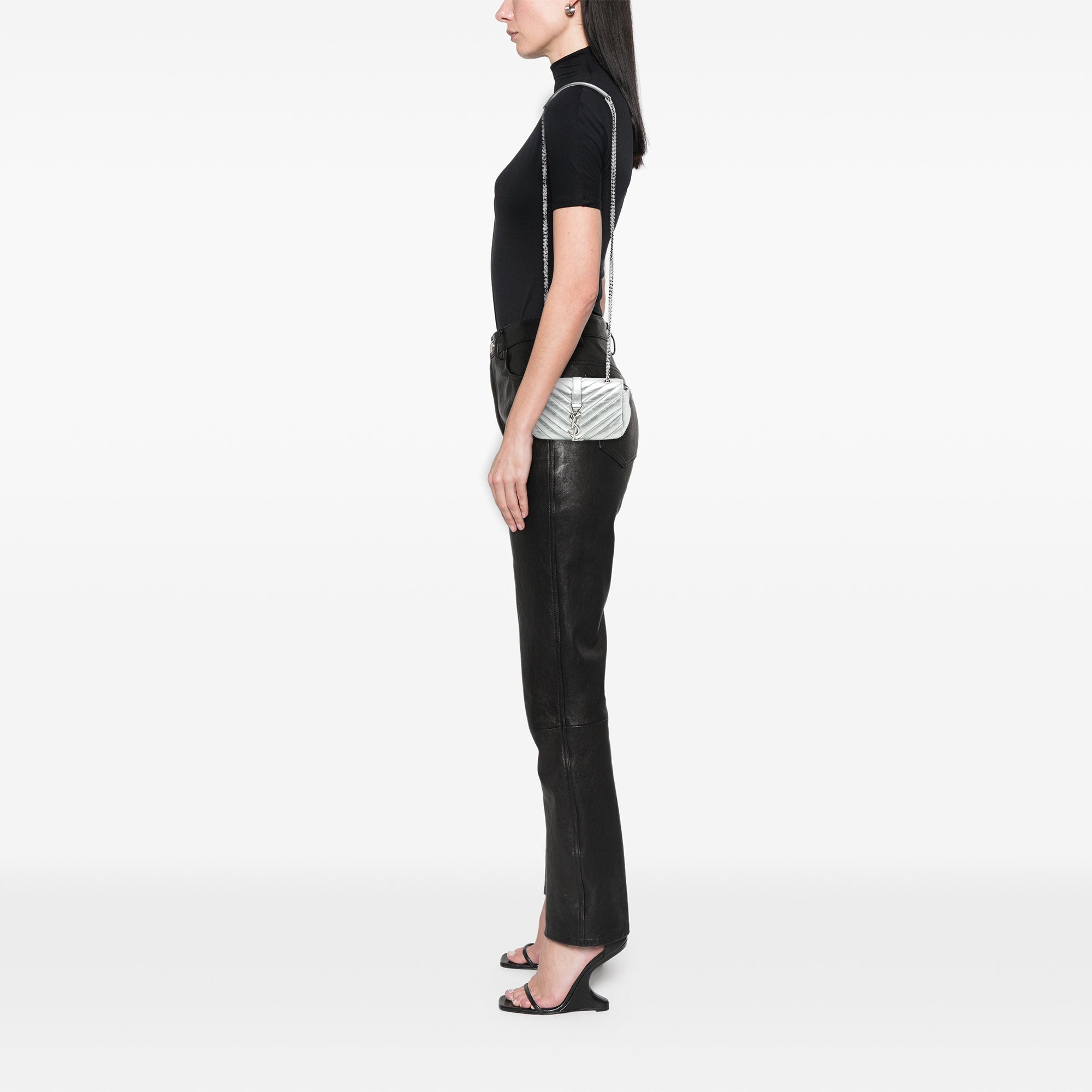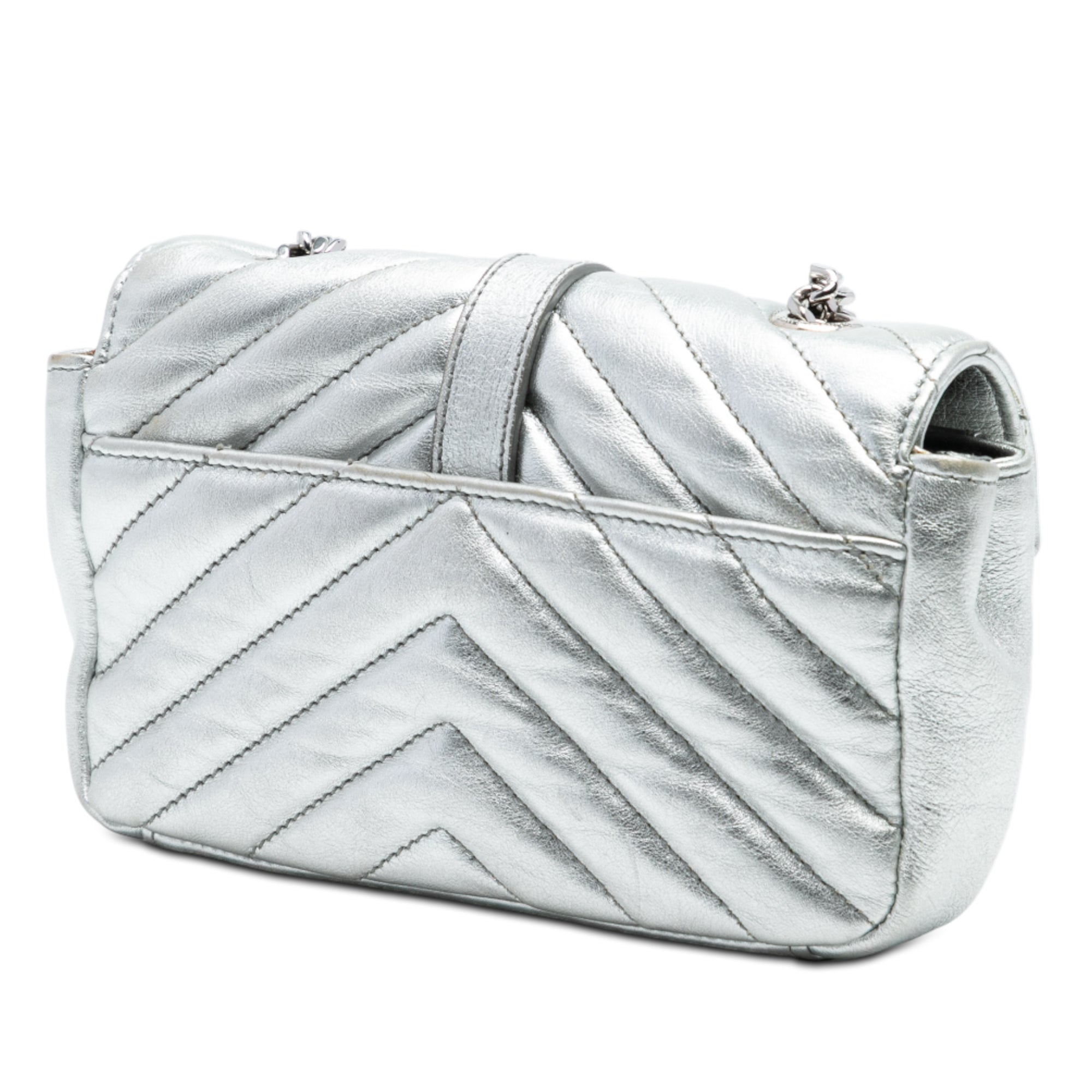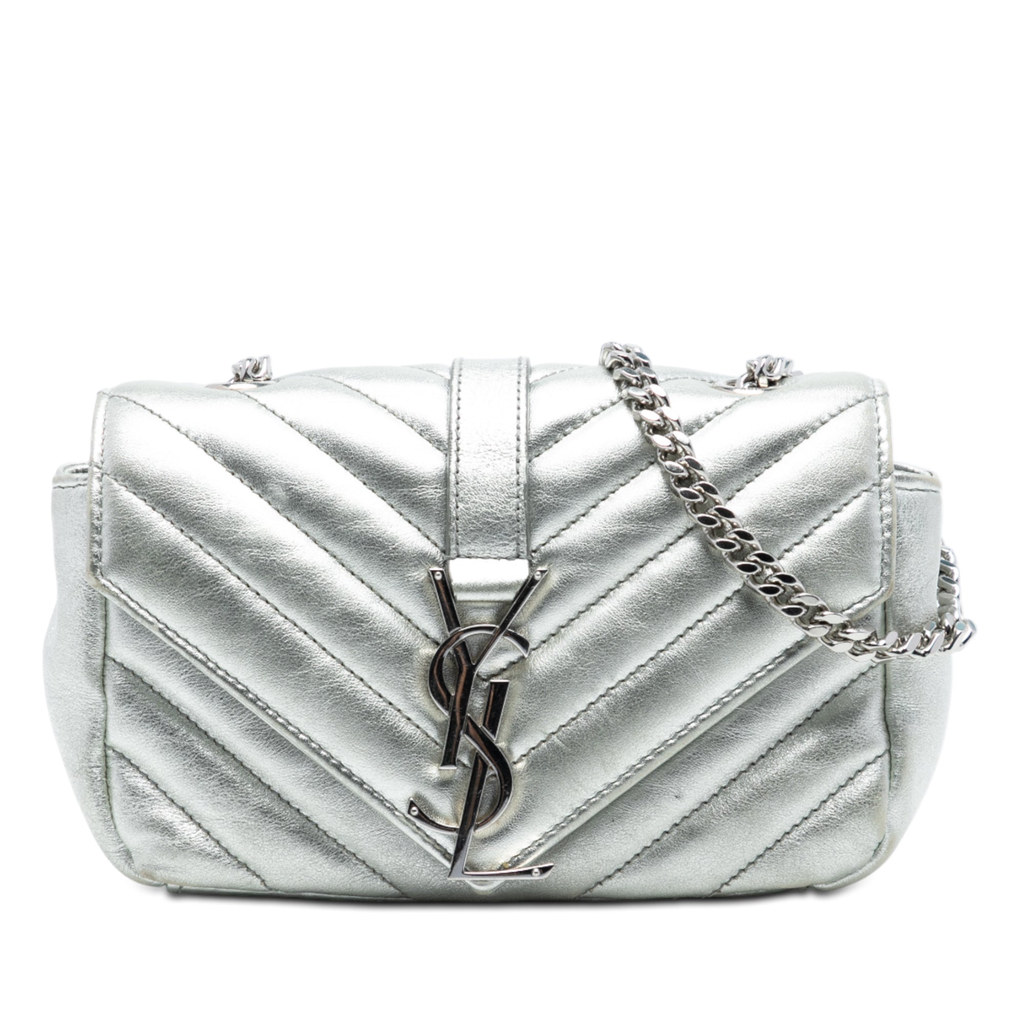 Saint Laurent Baby Metallic Calfskin Chevron Monogram Classic Chain Bag