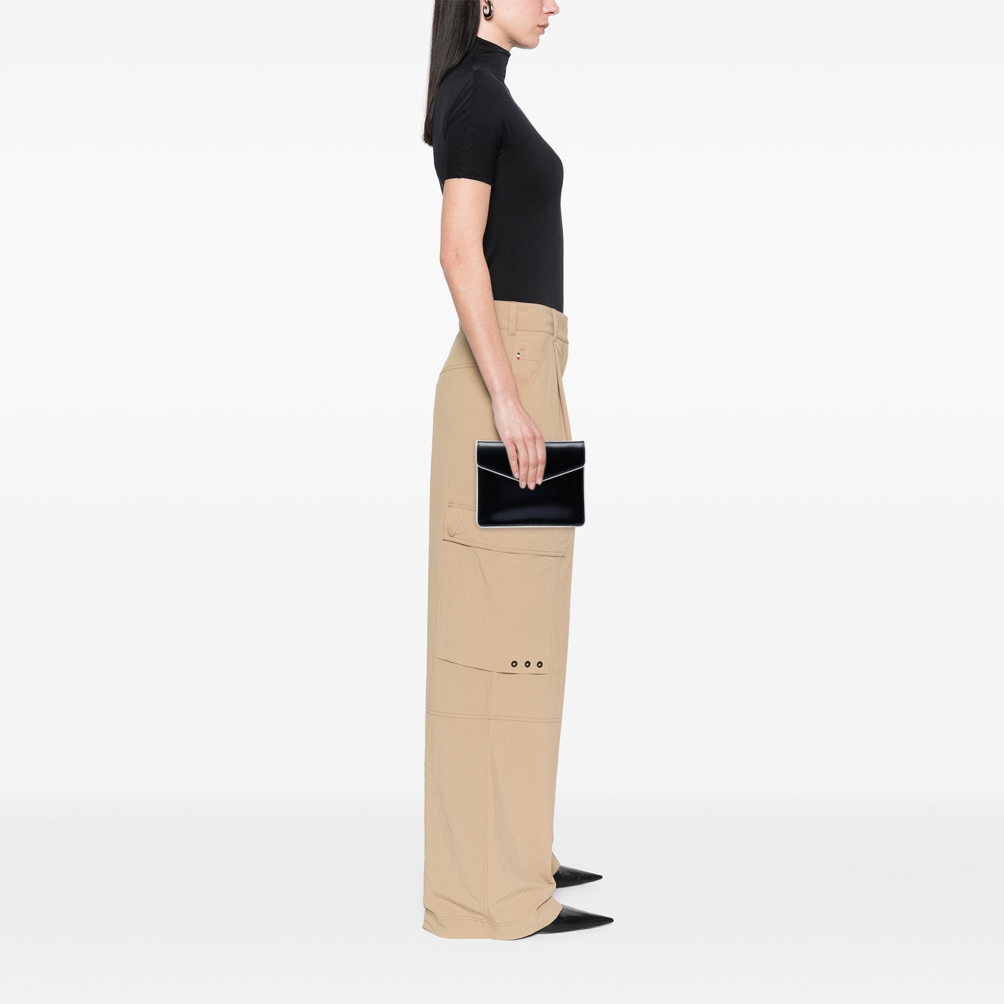 This clutch features a leather body and a flap with magnetic snap closure. Inclusion: Dust bag, box. Retail Price: 800.00