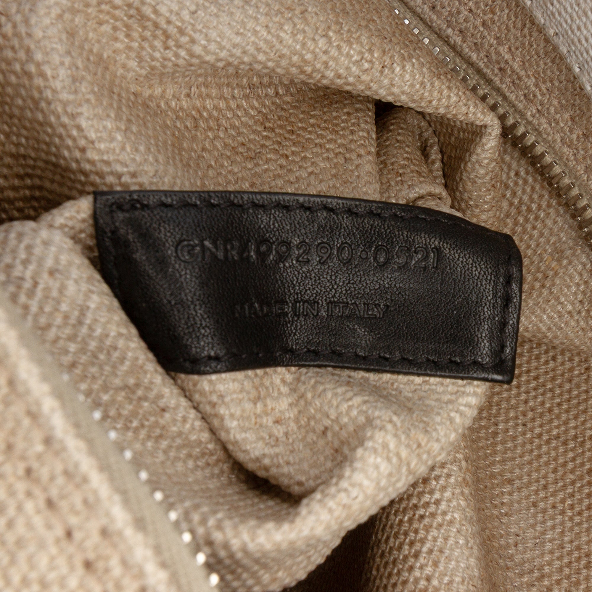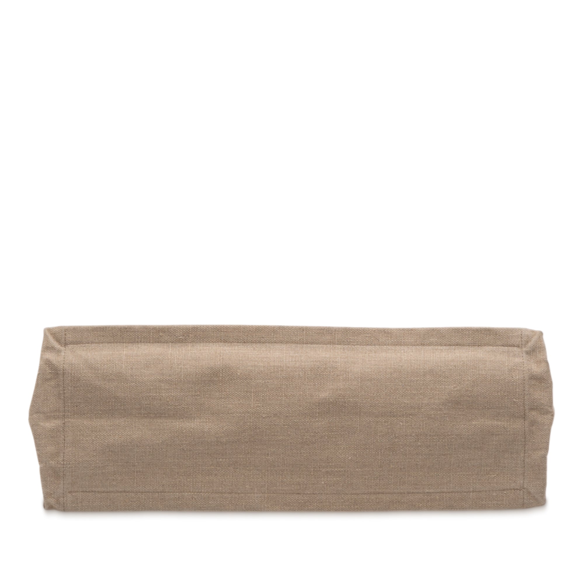 This tote bag features a canvas body, rolled leather handles, an open top with snap button closure, and an interior zip pocket. Inclusion: Dust bag. Retail Price: 1050.00