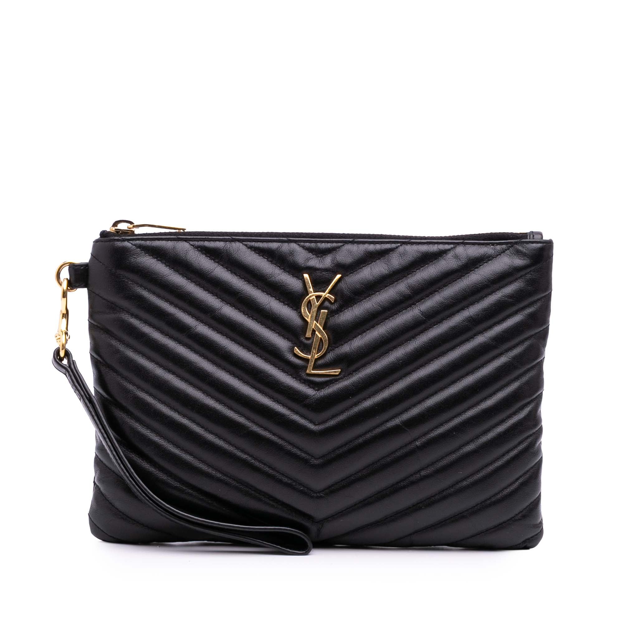 Saint Laurent Chevron Leather Monogram Zip A5 Wristlet Pouch