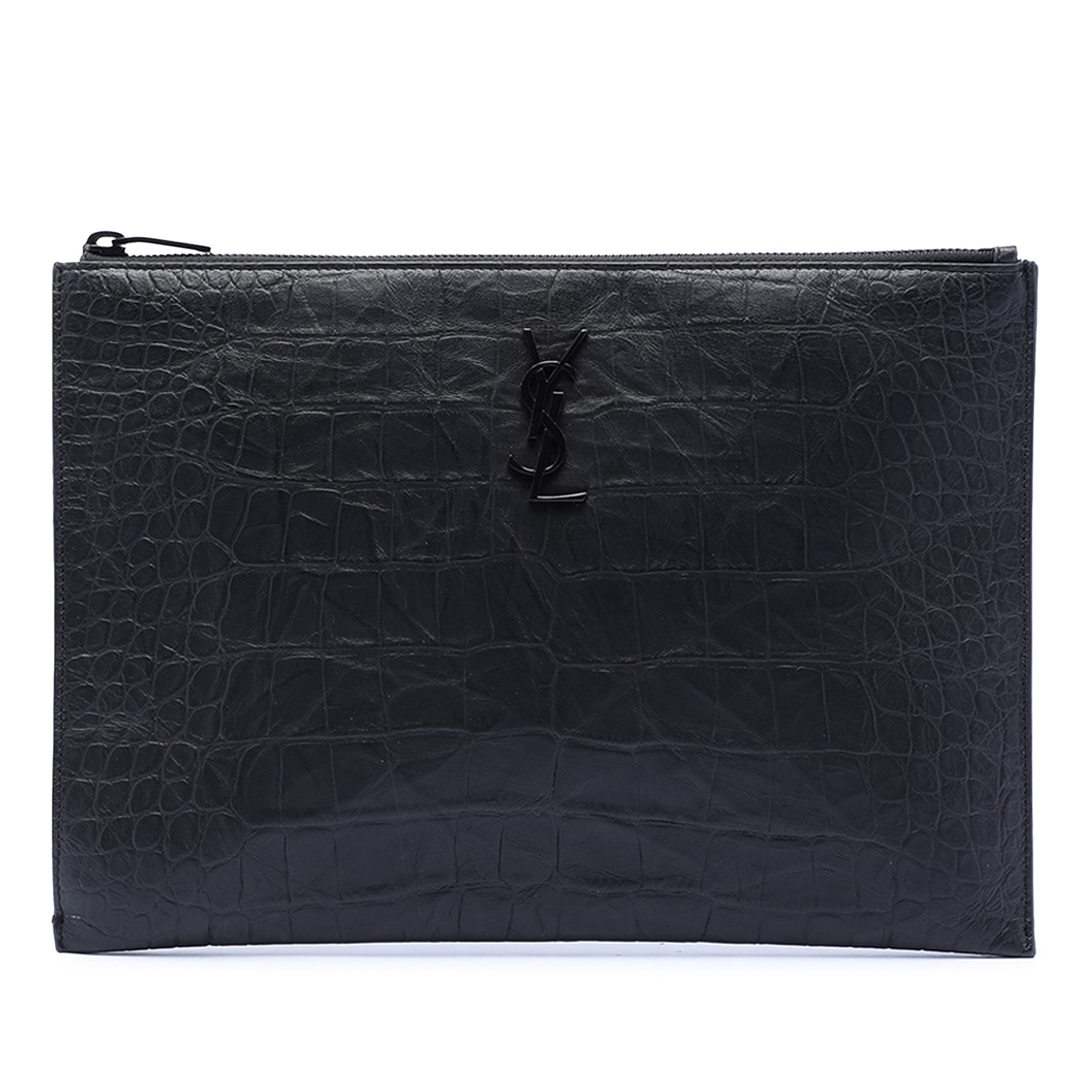 Saint Laurent Croc Embossed Leather Monogram Document Holder