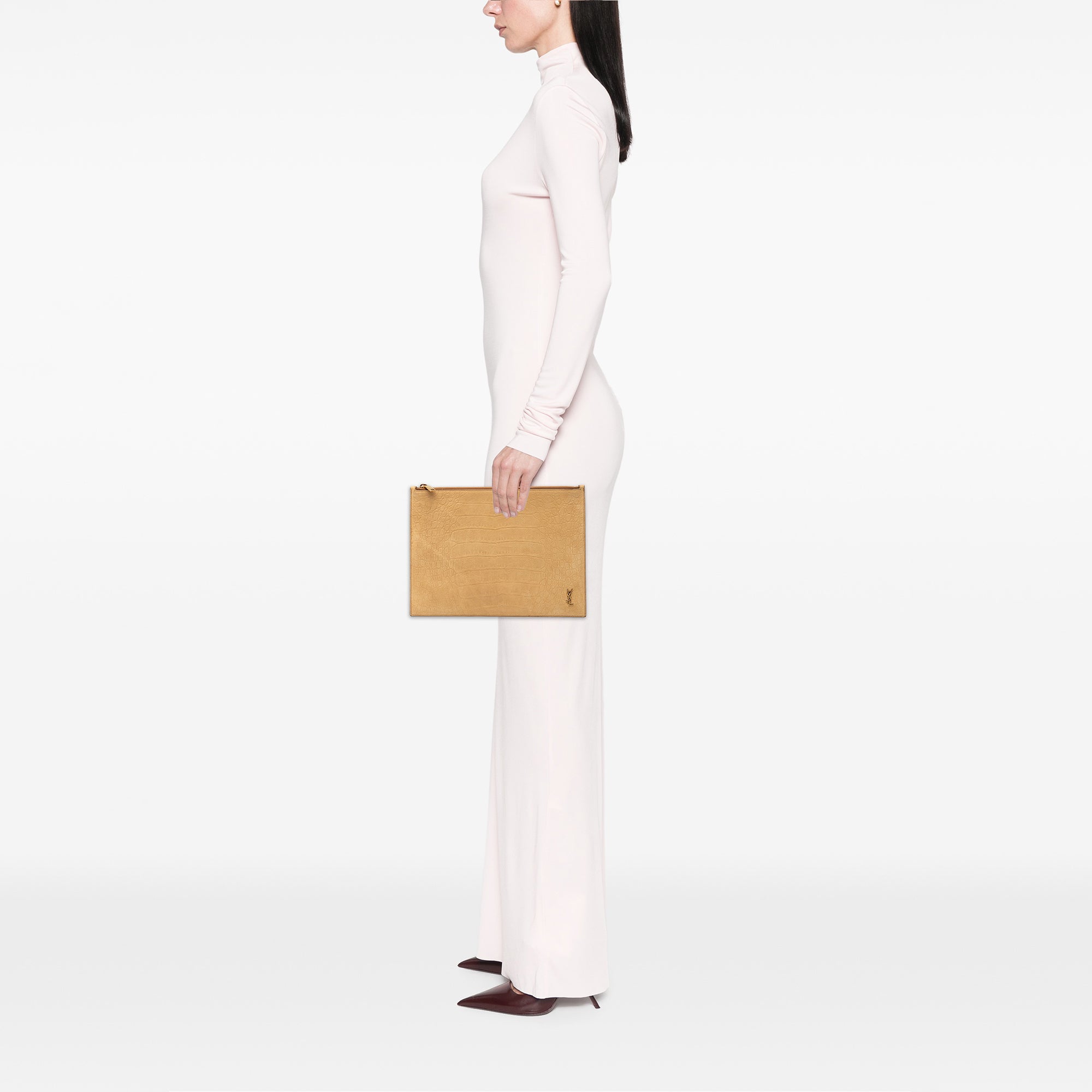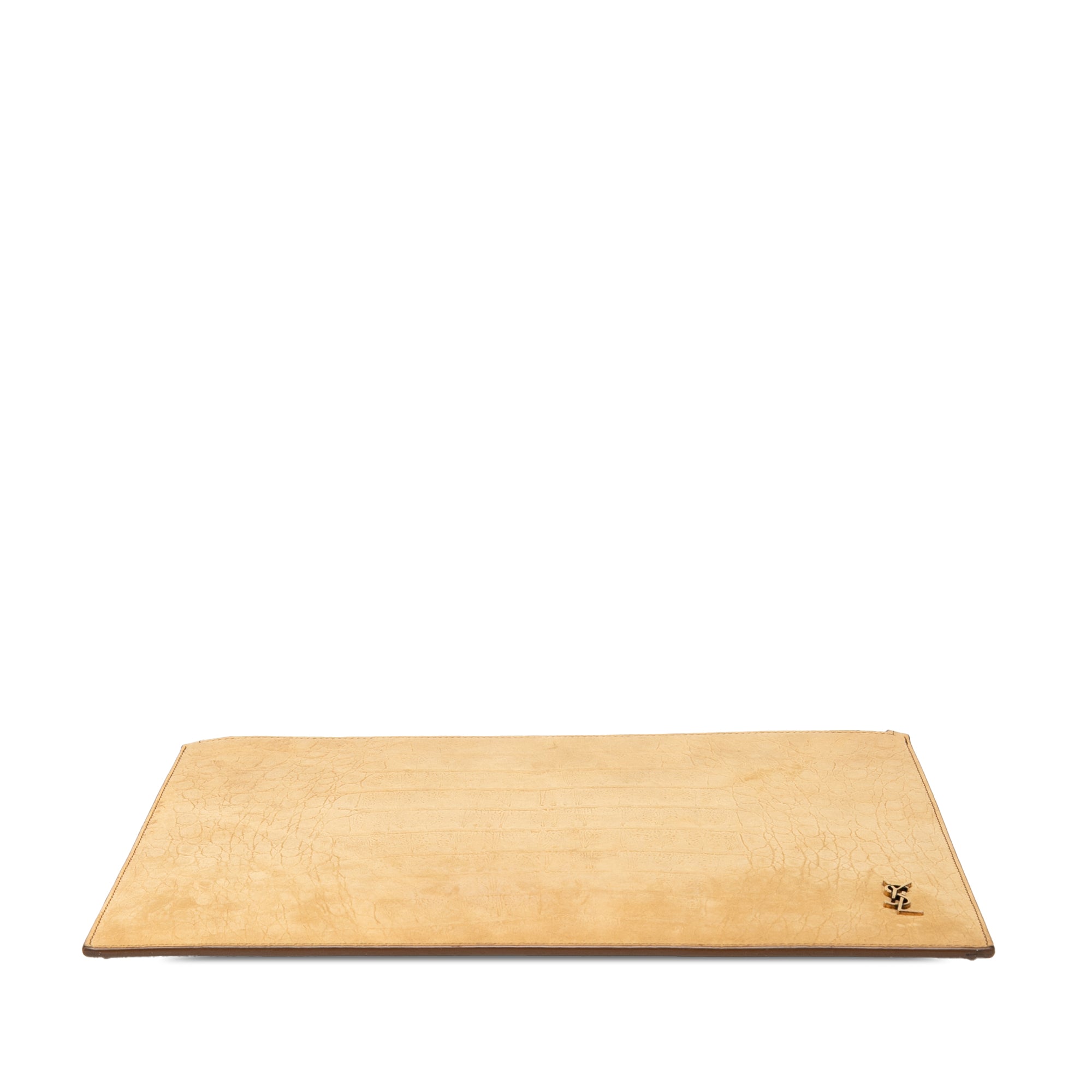 Saint Laurent Croc Embossed Leather Tiny Monogram Zipped Tablet Holder