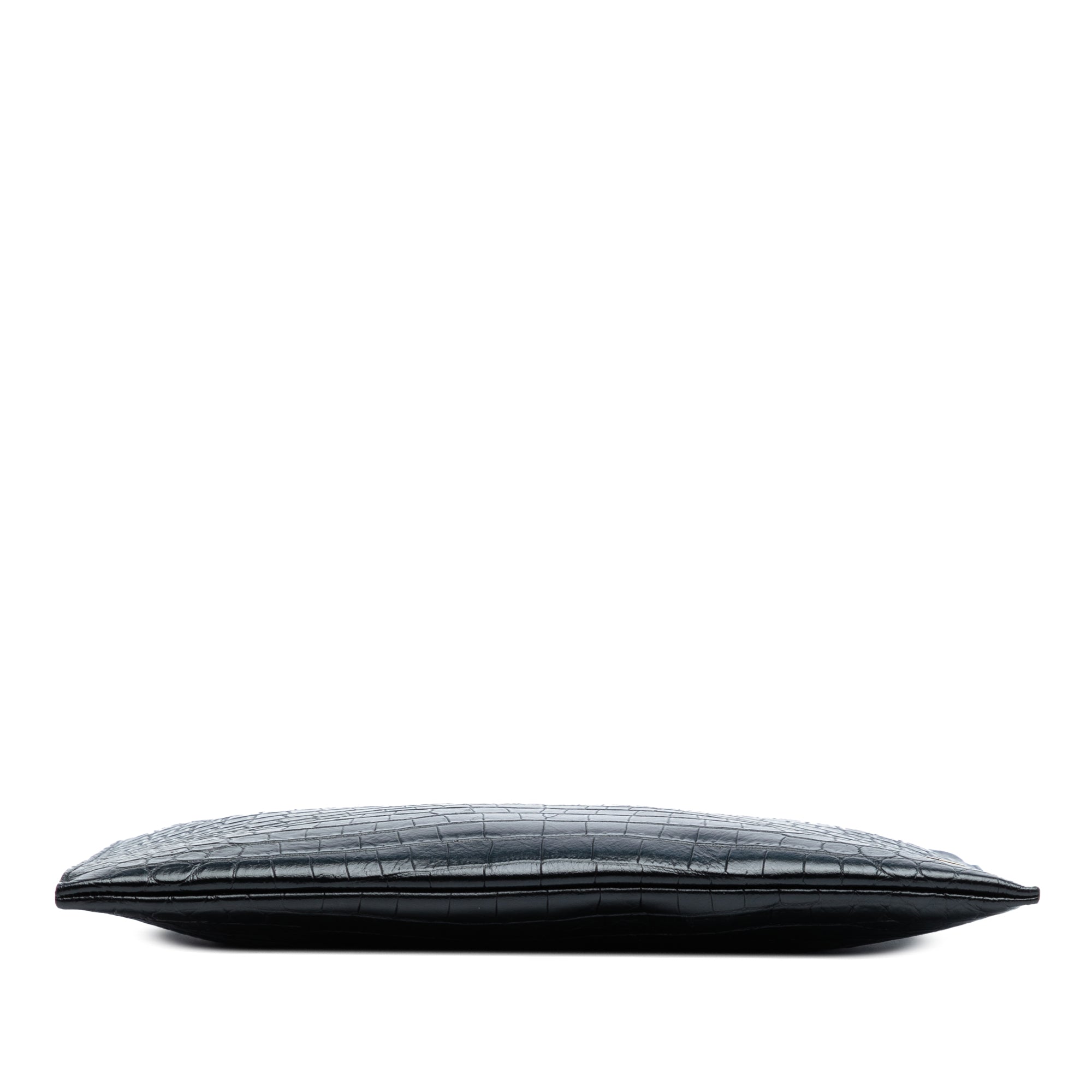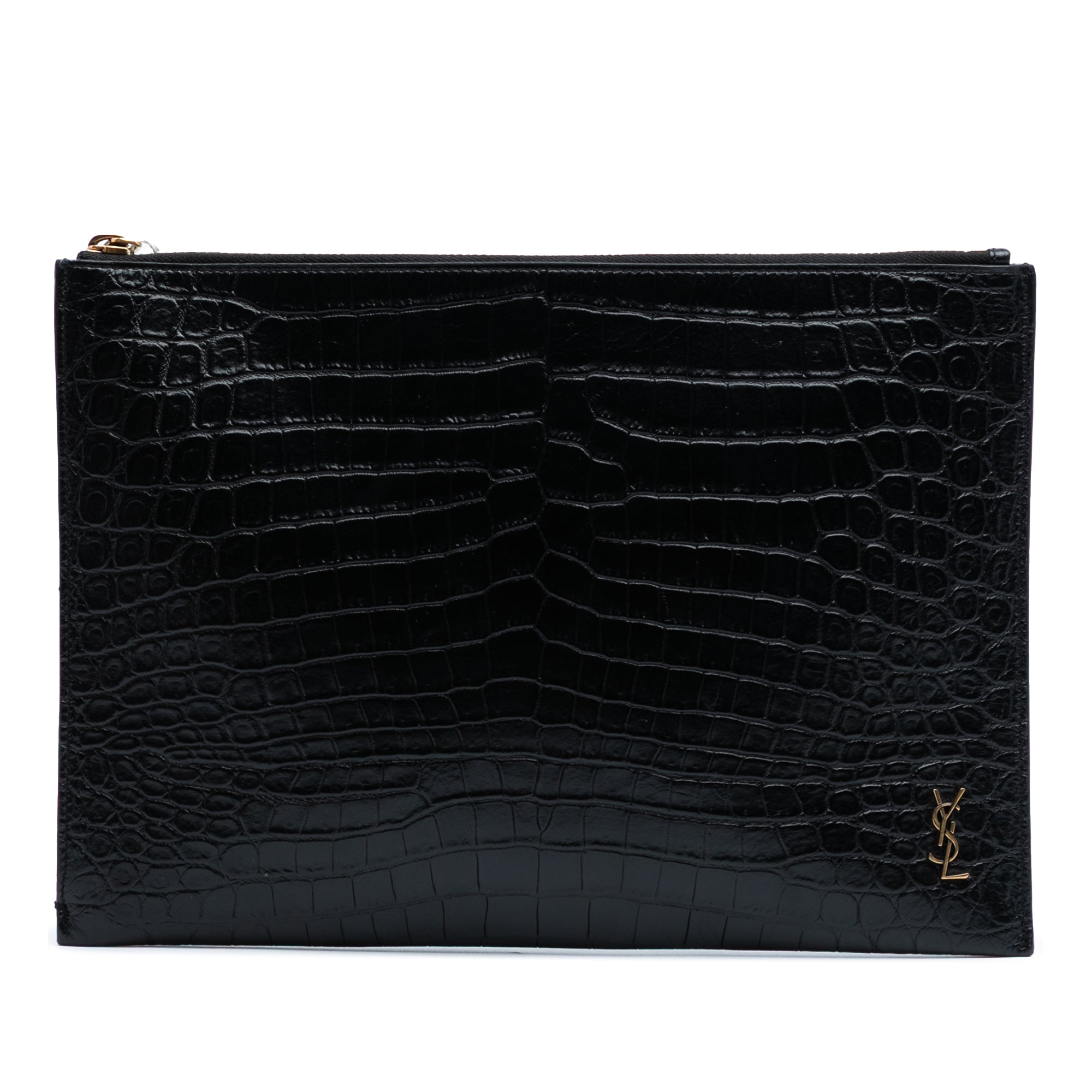 Saint Laurent Croc Embossed Leather Tiny Monogram Zipped Tablet Holder