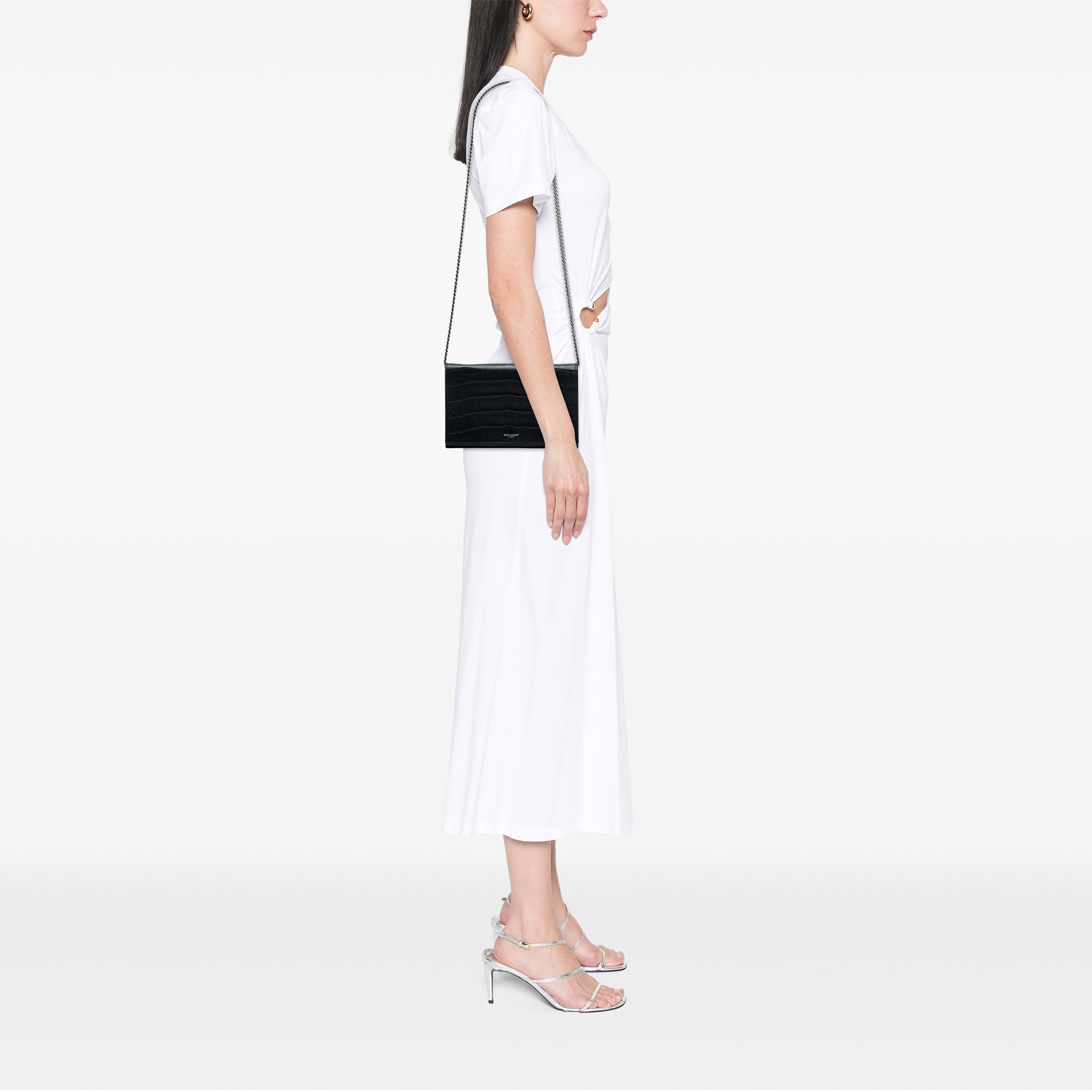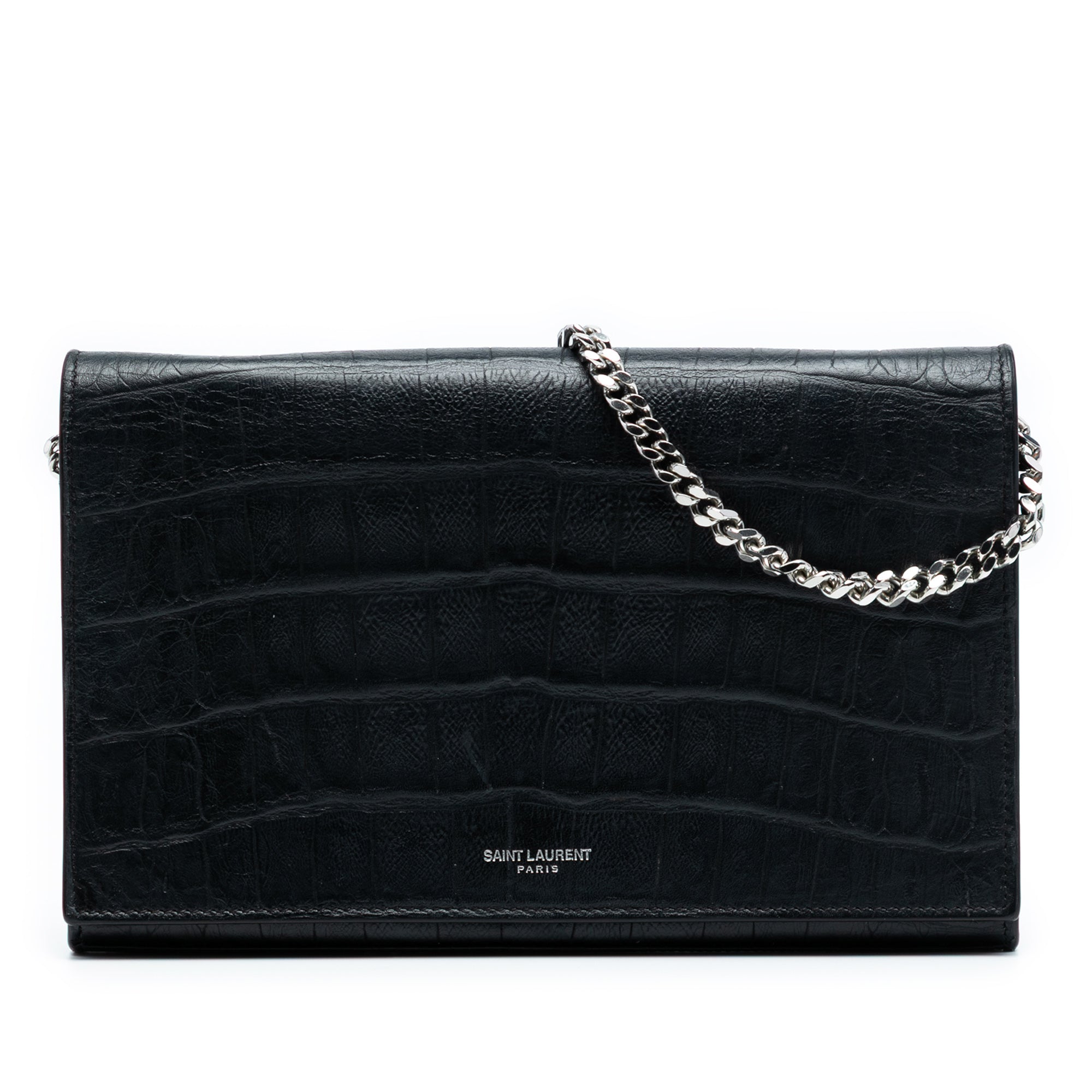 Saint Laurent Croc Embossed Leather Wallet On Chain