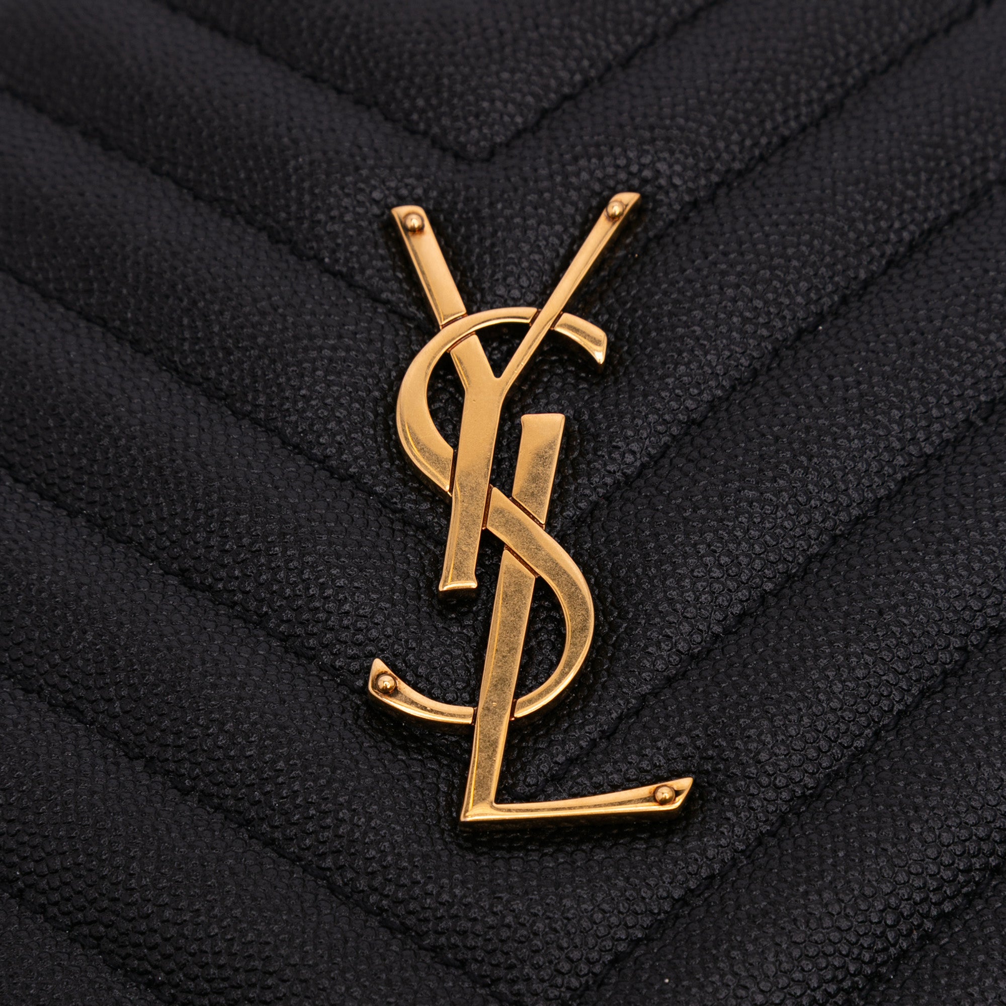 This crossbody bag features a grained quilted leather body, a gold-tone chain strap with leather guard, a top zip closure, and an interior slip pocket. Inclusion: Dust bag. Retail Price: 2450.00