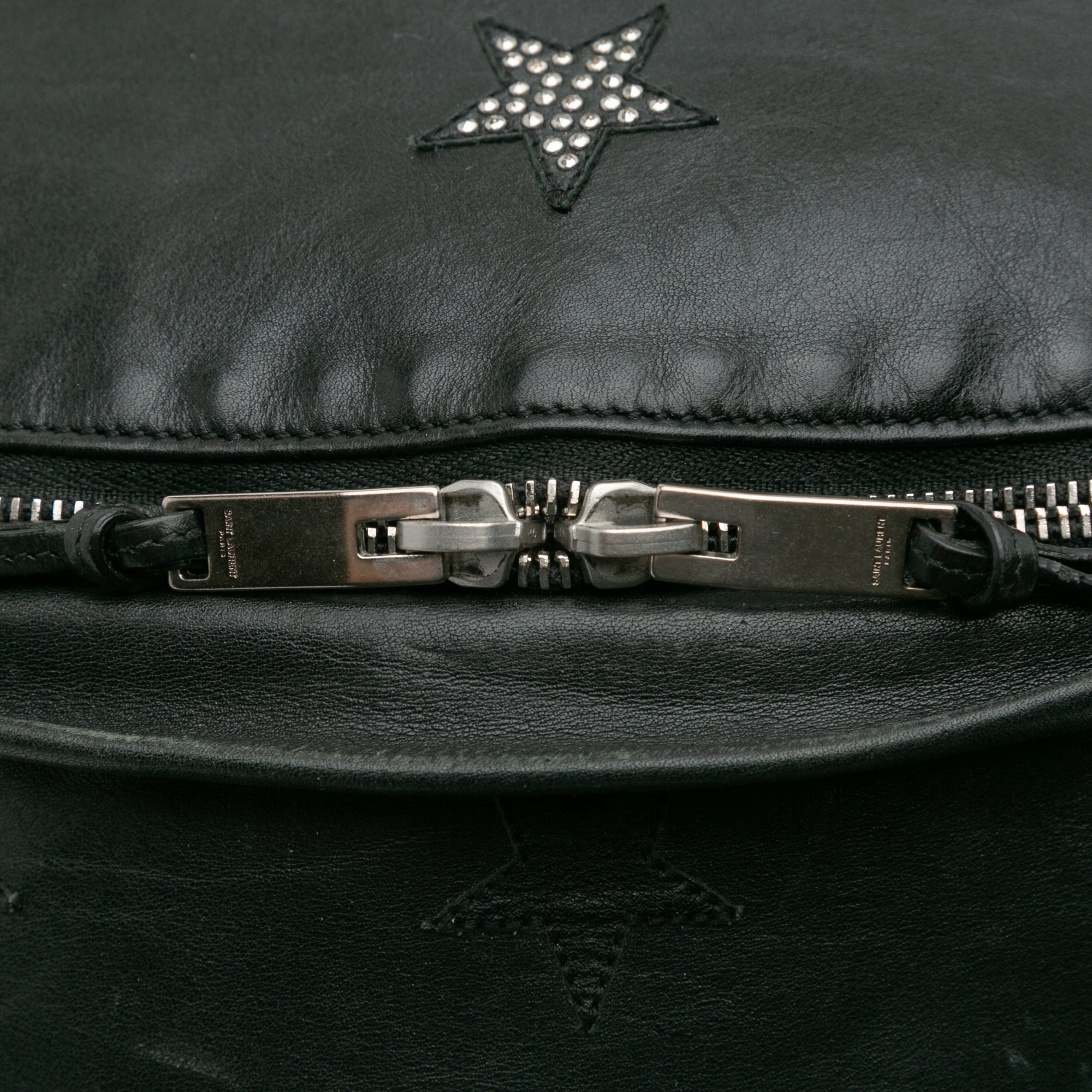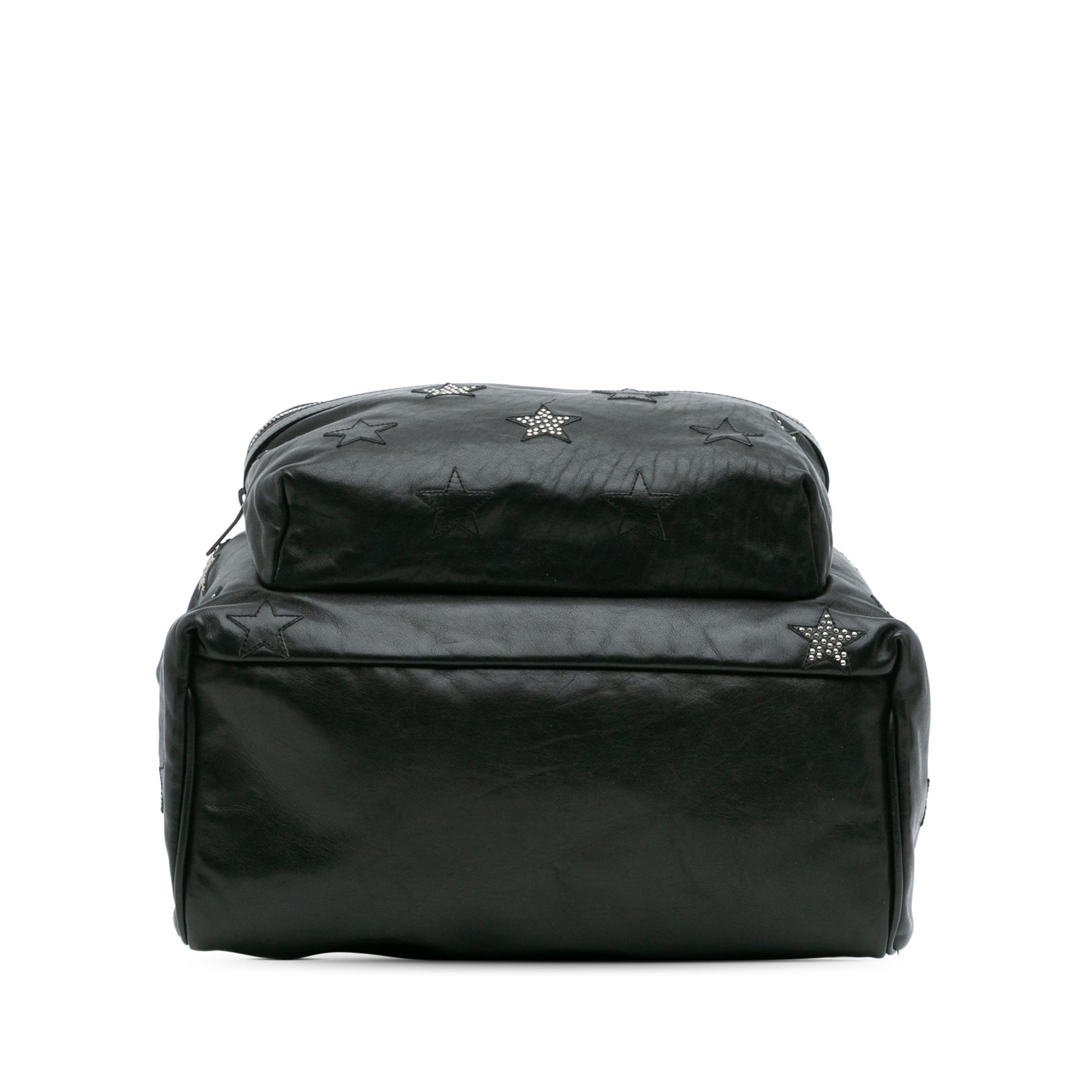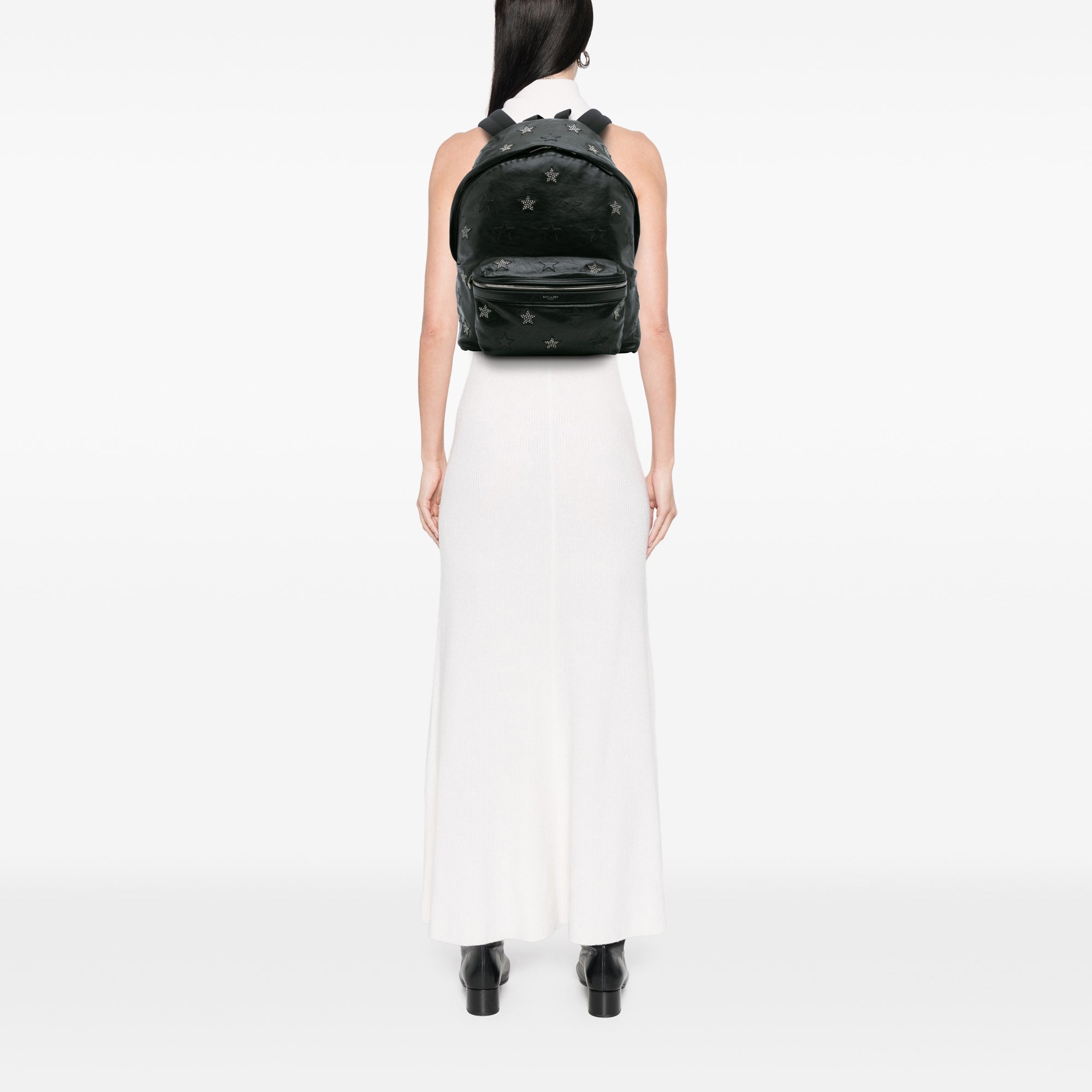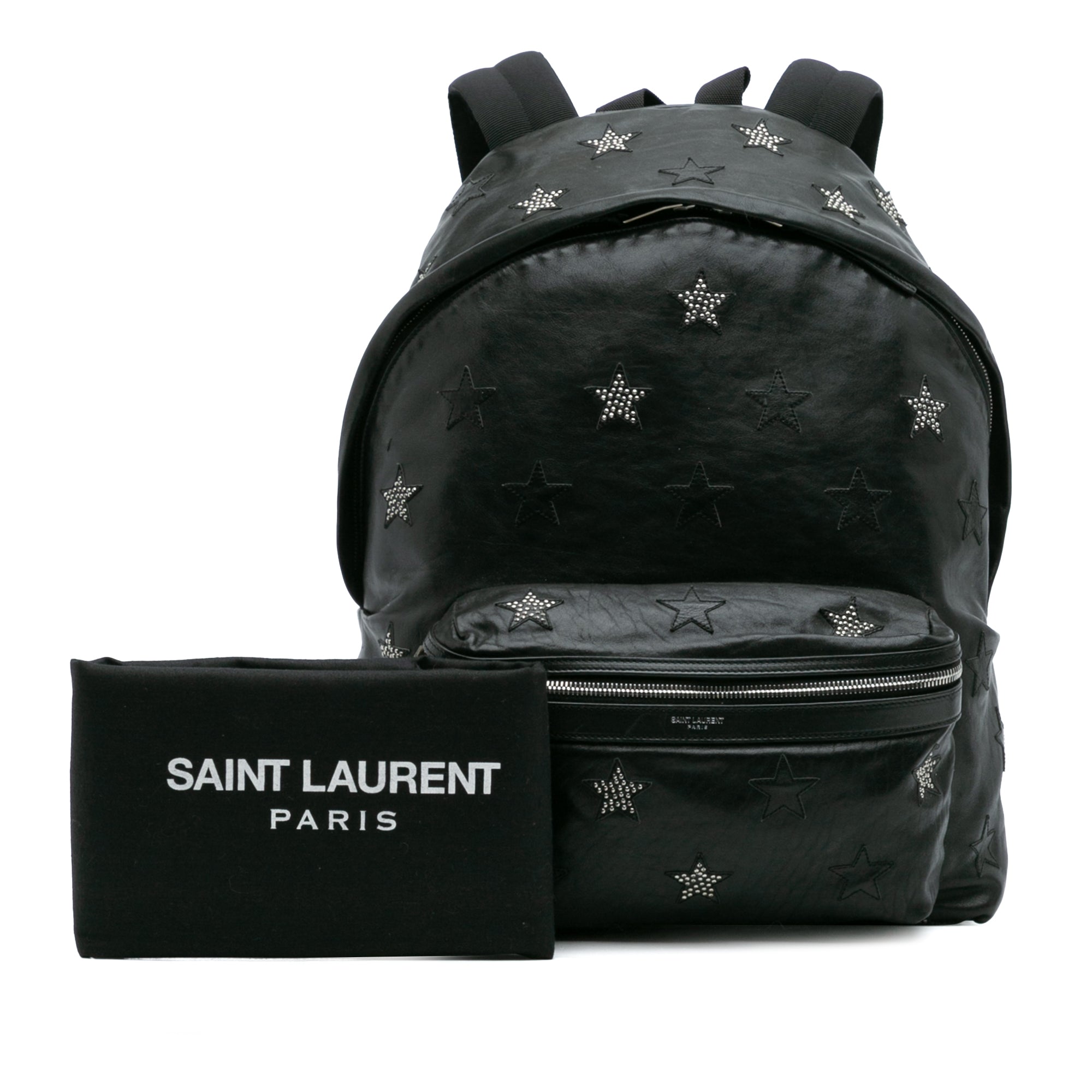 The City backpack features a leather body with star and stud embellishments, a flat top handle, flat adjustable back straps, a top zip closure, an exterior front zip pocket, and interior zip and slip pockets. Inclusion: Dust bag. Retail Price: 1750.00