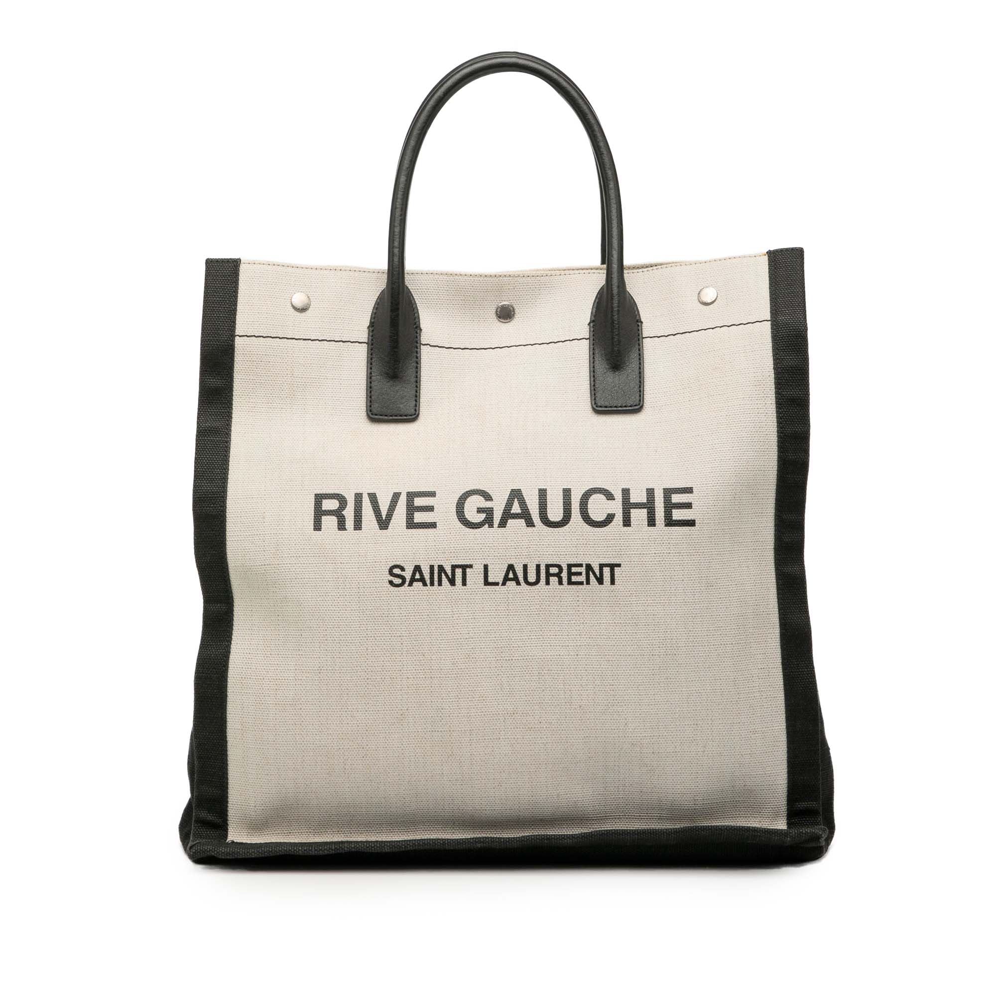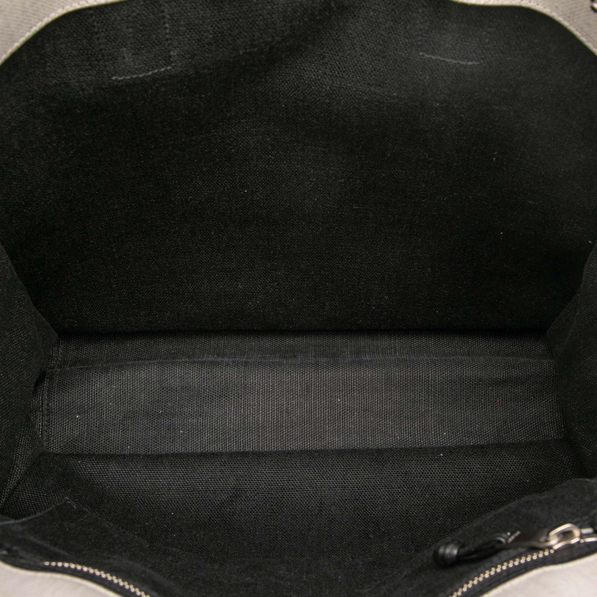 This tote bag features a linen body, rolled leather handles, an open top with snap button closure, and an interior zip pocket. Retail Price: 1890.00