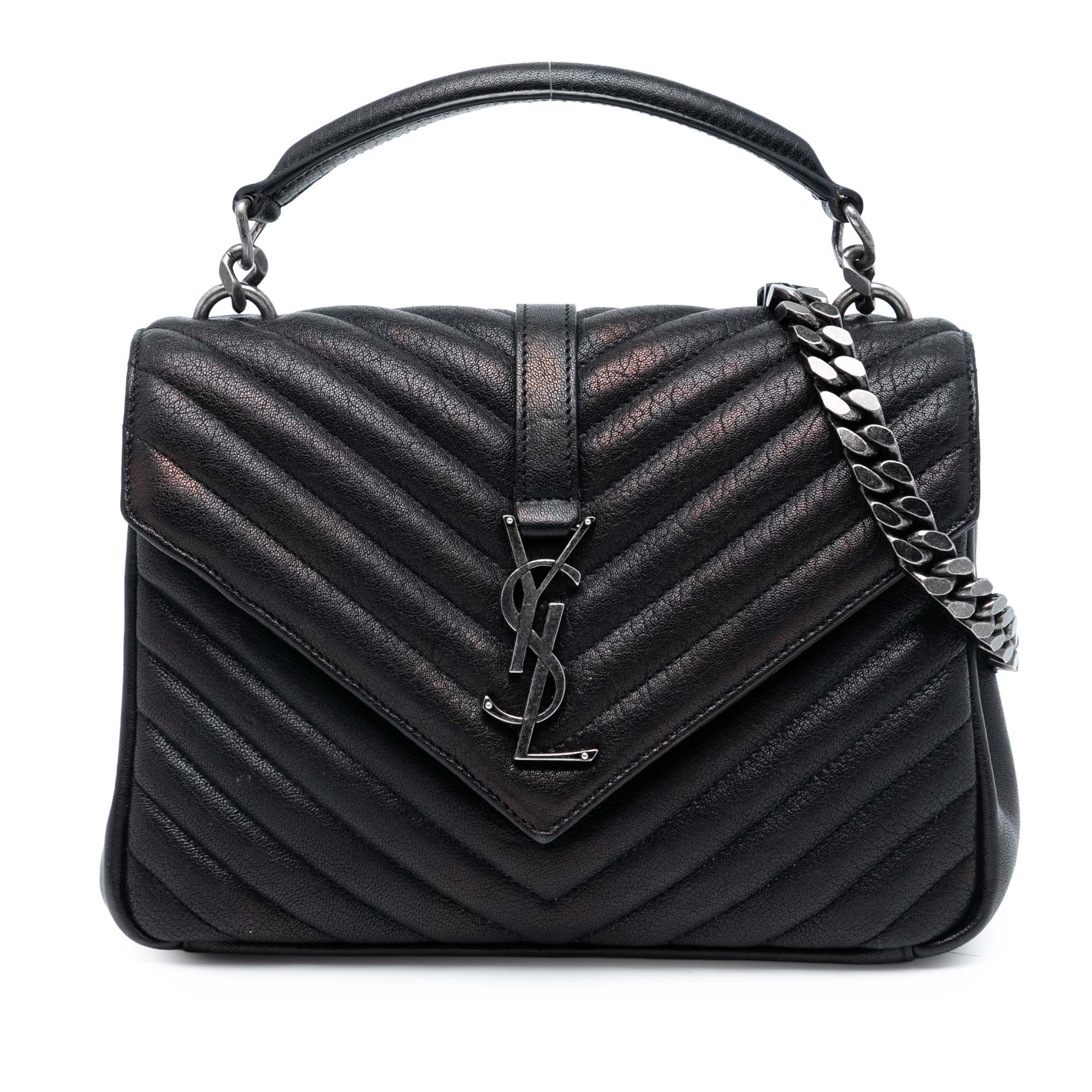 Saint Laurent Medium Chevron Sheepskin Monogram College Satchel