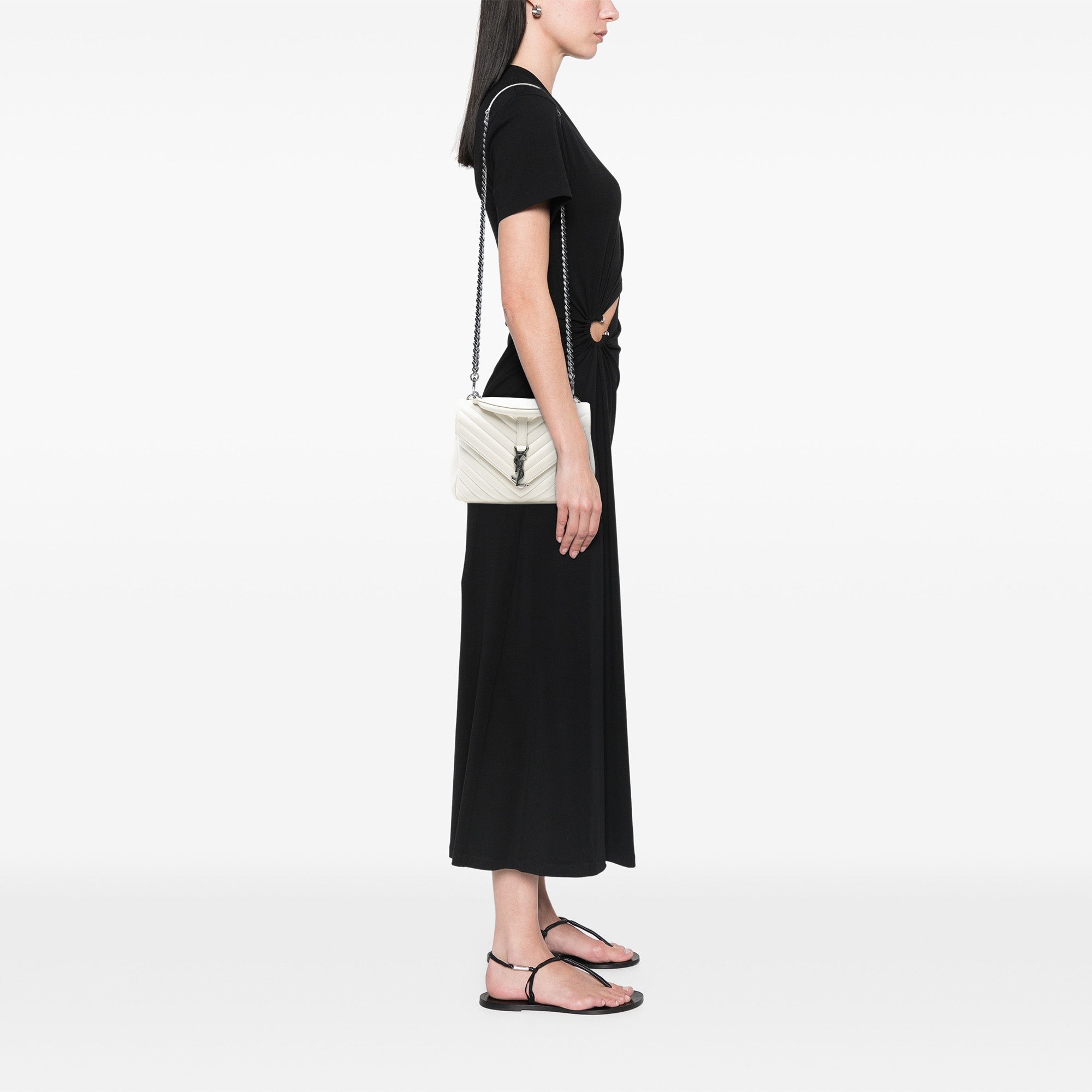Saint Laurent Medium Chevron Sheepskin Monogram College Satchel