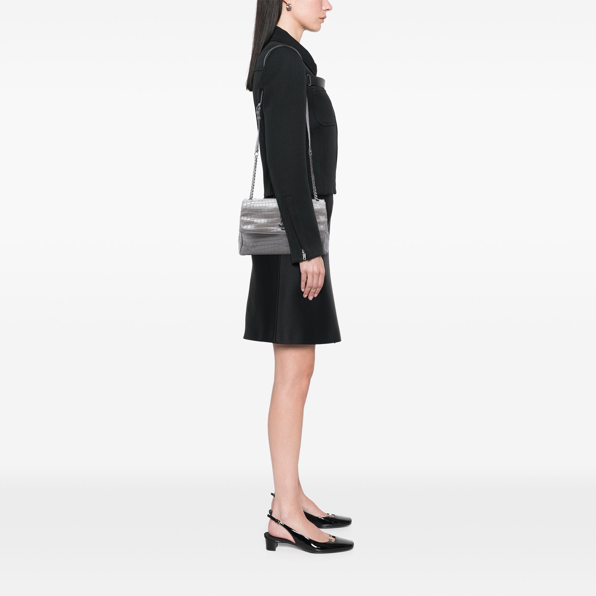 Saint Laurent Medium Croc Embossed Calfskin Monogram West Hollywood Crossbody