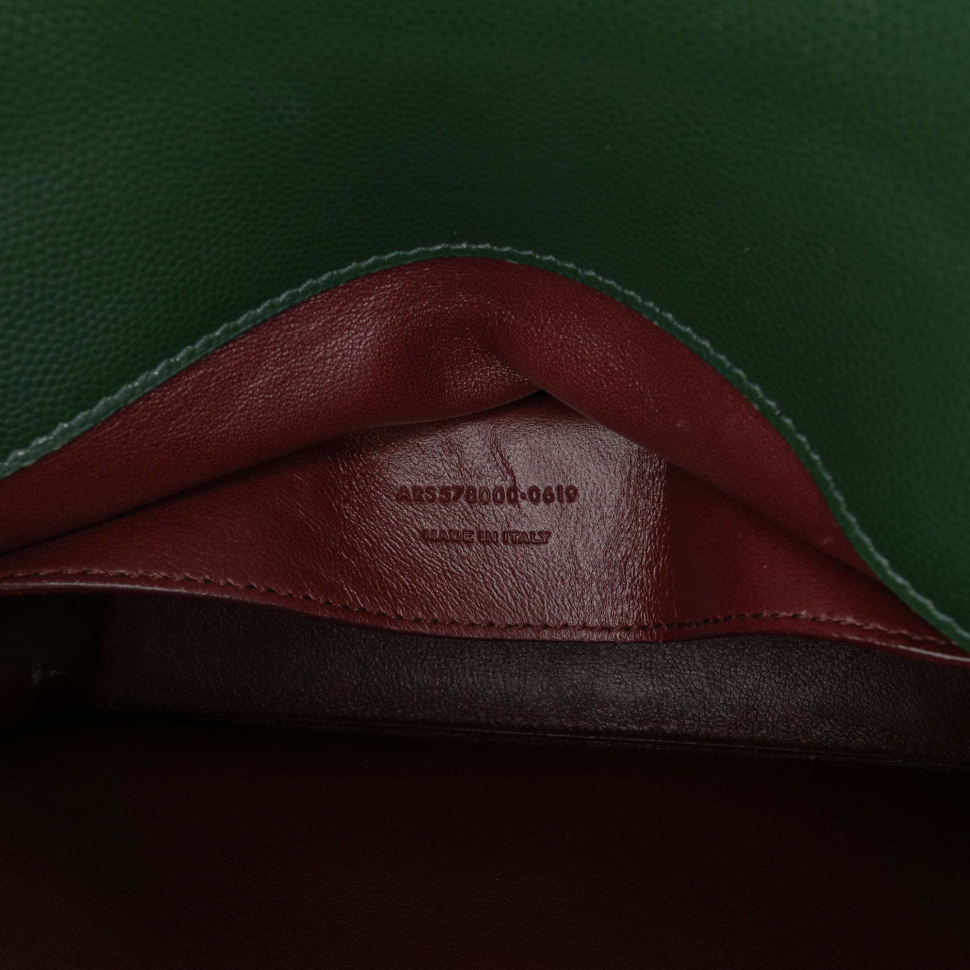 The Cassandra features a leather body, a flat leather top handle, a detachable leather shoulder strap, a front flap with metal YSL logo and magnetic snap closure, exterior back slip pocket, and interior slip pocket. Retail Price: 2830.00