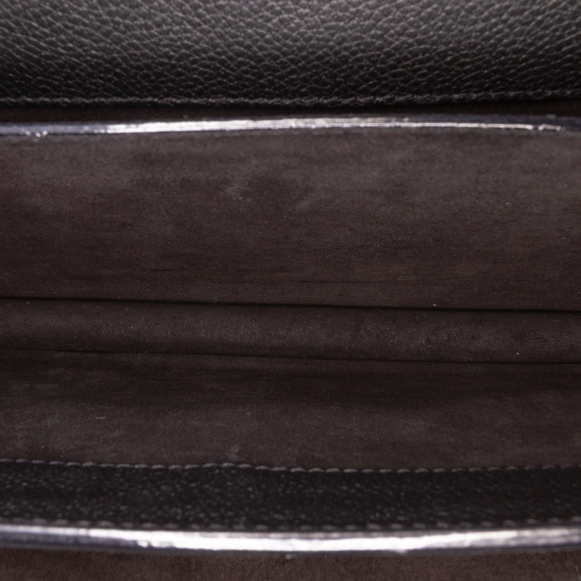 The Sunset features a leather body, a flat leather shoulder strap, a top flap with magnetic snap button closure, two interior compartments, and an interior slip pocket. Retail Price: 2700.00