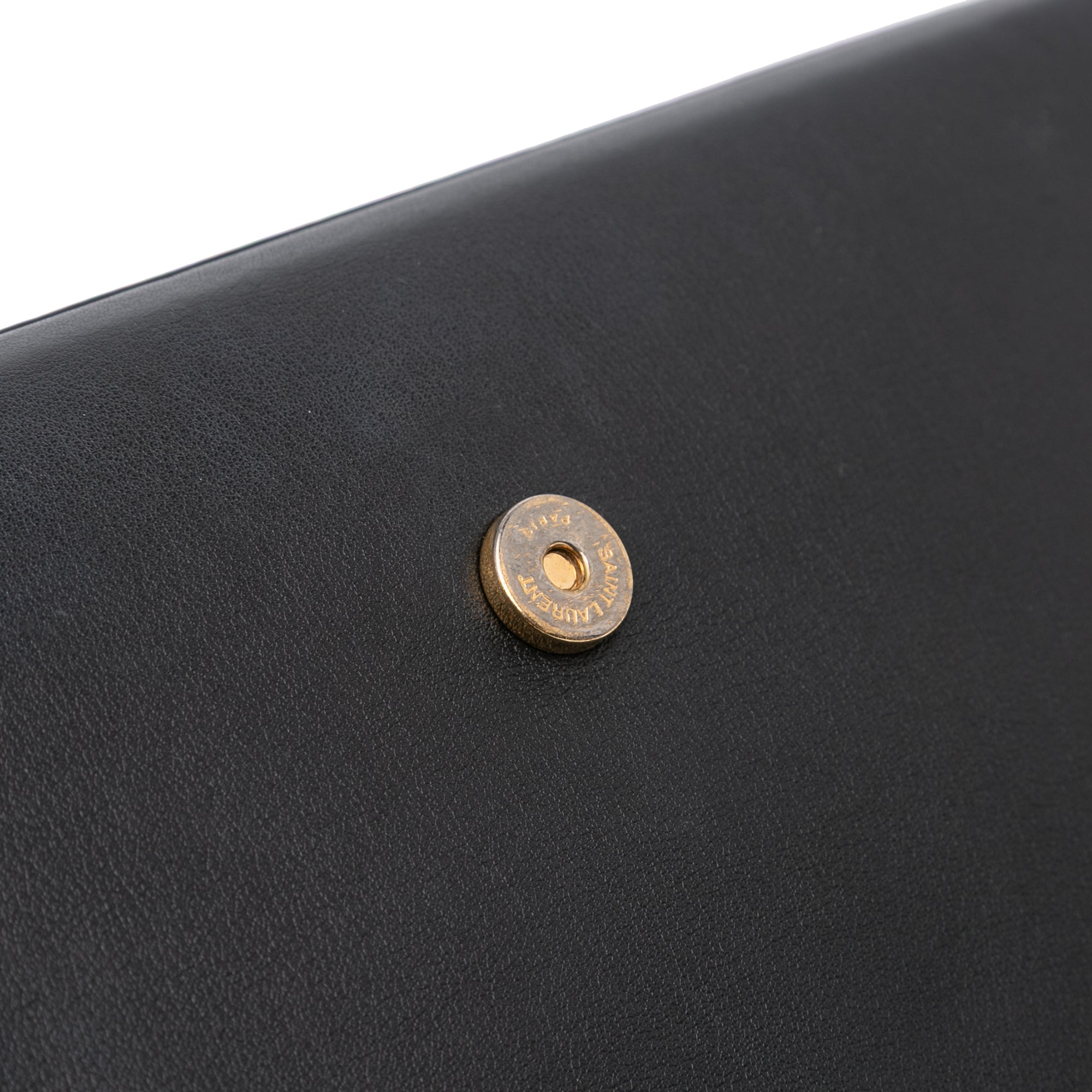 The Kate crossbody bag features a leather body, a gold-tone chain link shoulder strap, a front flap with a metal YSL logo and magnetic closure, and an interior slip pocket. Retail Price: 2150.00
