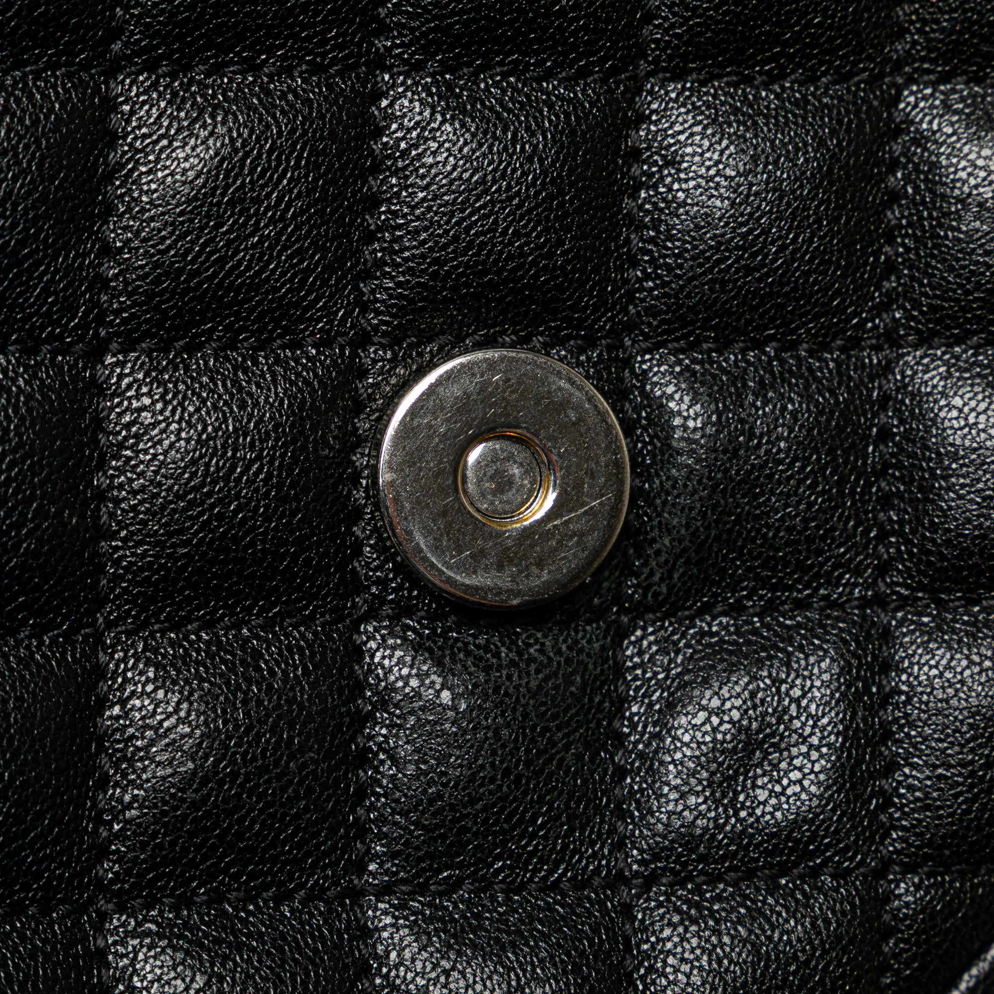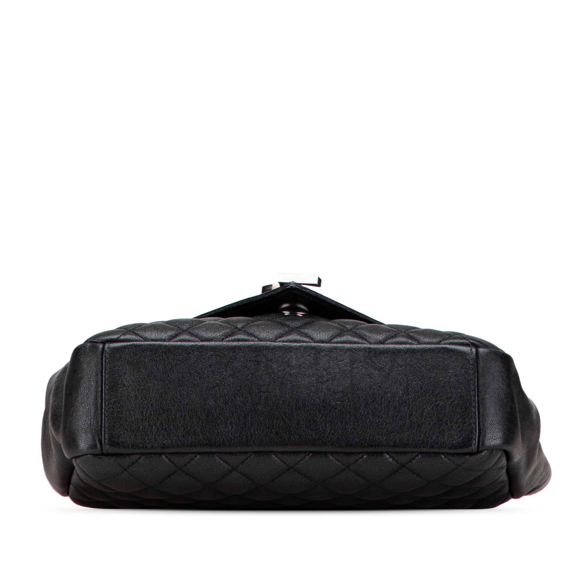 This shoulder bag features a quilted leather body, chain link shoulder straps with leather guard, a front flap with magnetic snap closure, and an interior slip pocket. Retail Price: 2849.00