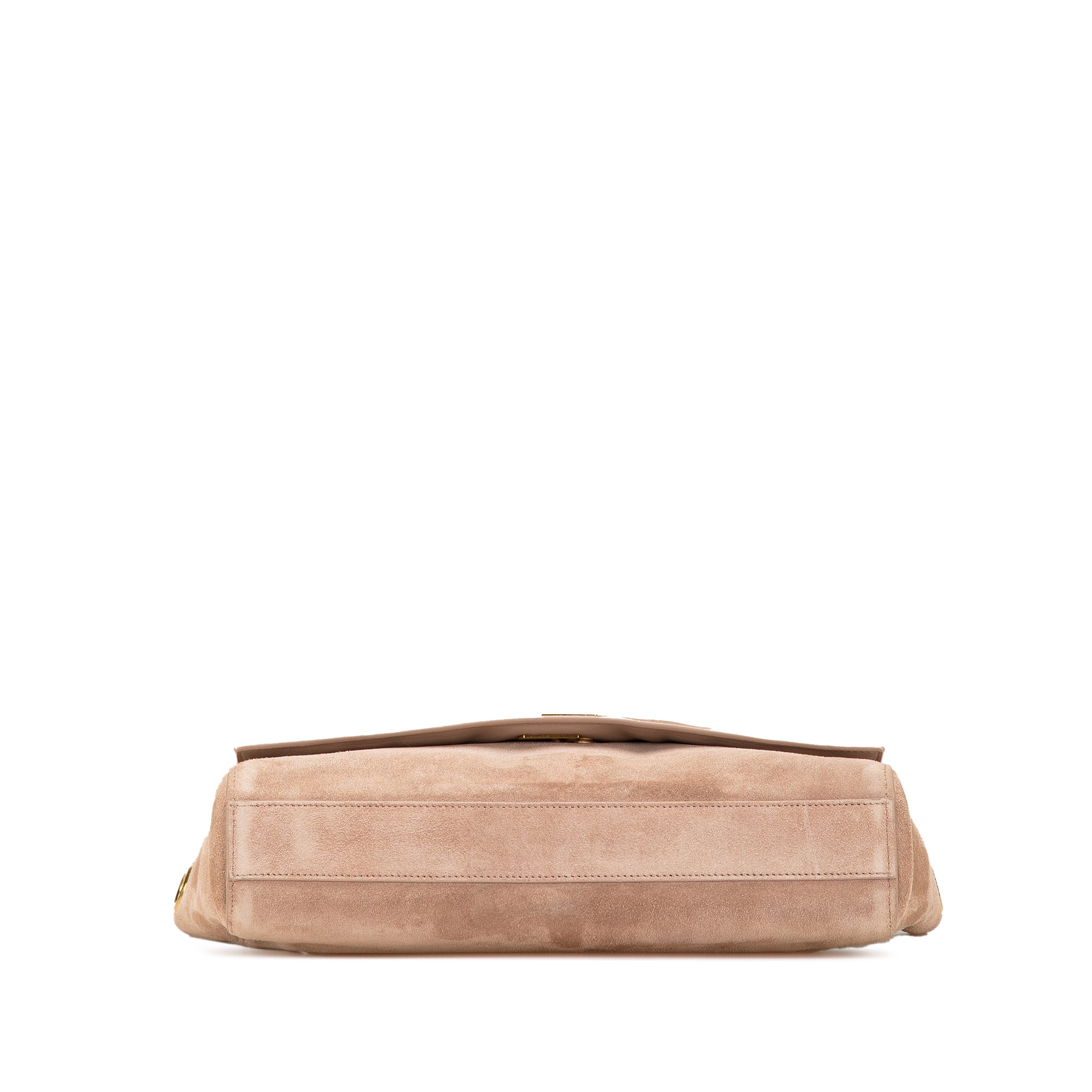 This crossbody bag features a suede and calfskin leather body, a chain link shoulder strap, a flap closure, and an interior slip pocket. Inclusion: Dust bag. Retail Price: 2550.00