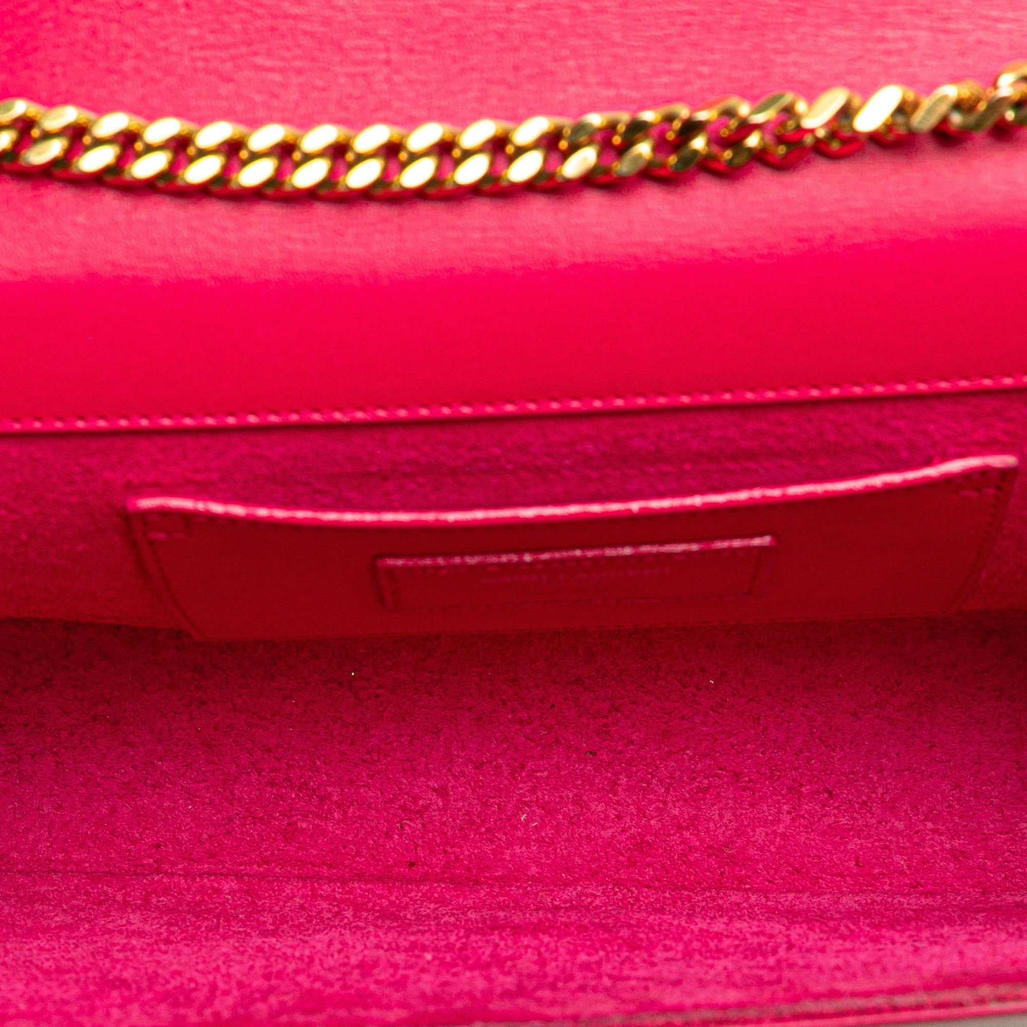 The Kate features a leather body with a tassel, a gold-tone chain-link shoulder strap, a front flap with magnetic snap closure, and an interior slip pocket. Inclusion: Dust bag. Retail Price: 2400.00