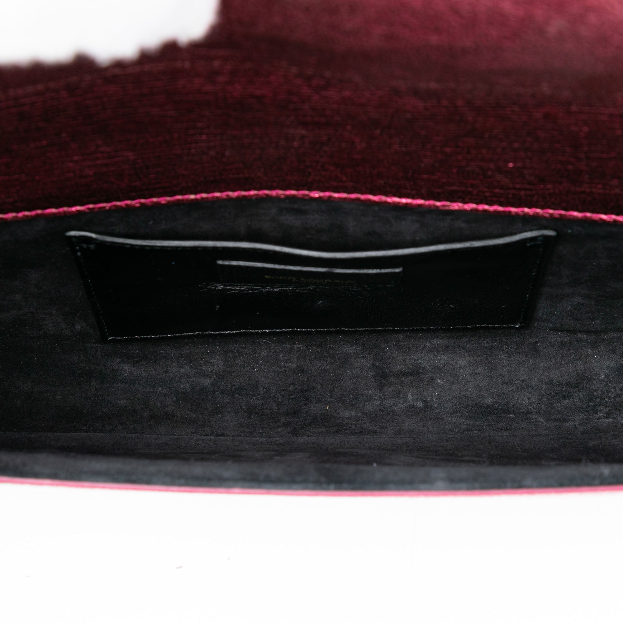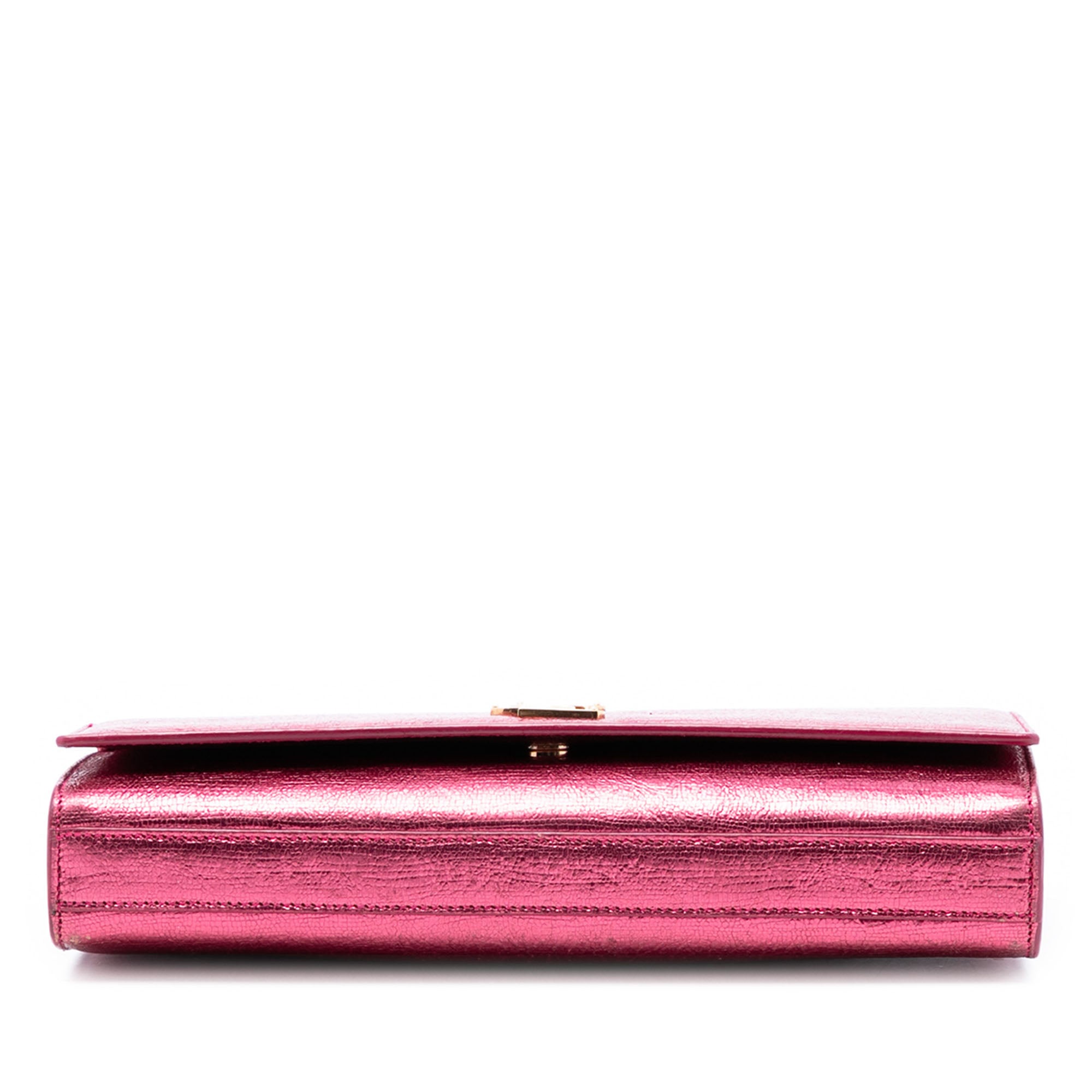 The Cassandre clutch bag features a metallic calf leather body, a front flap with magnetic closure, and an interior slip pocket. Retail Price: 1290.00