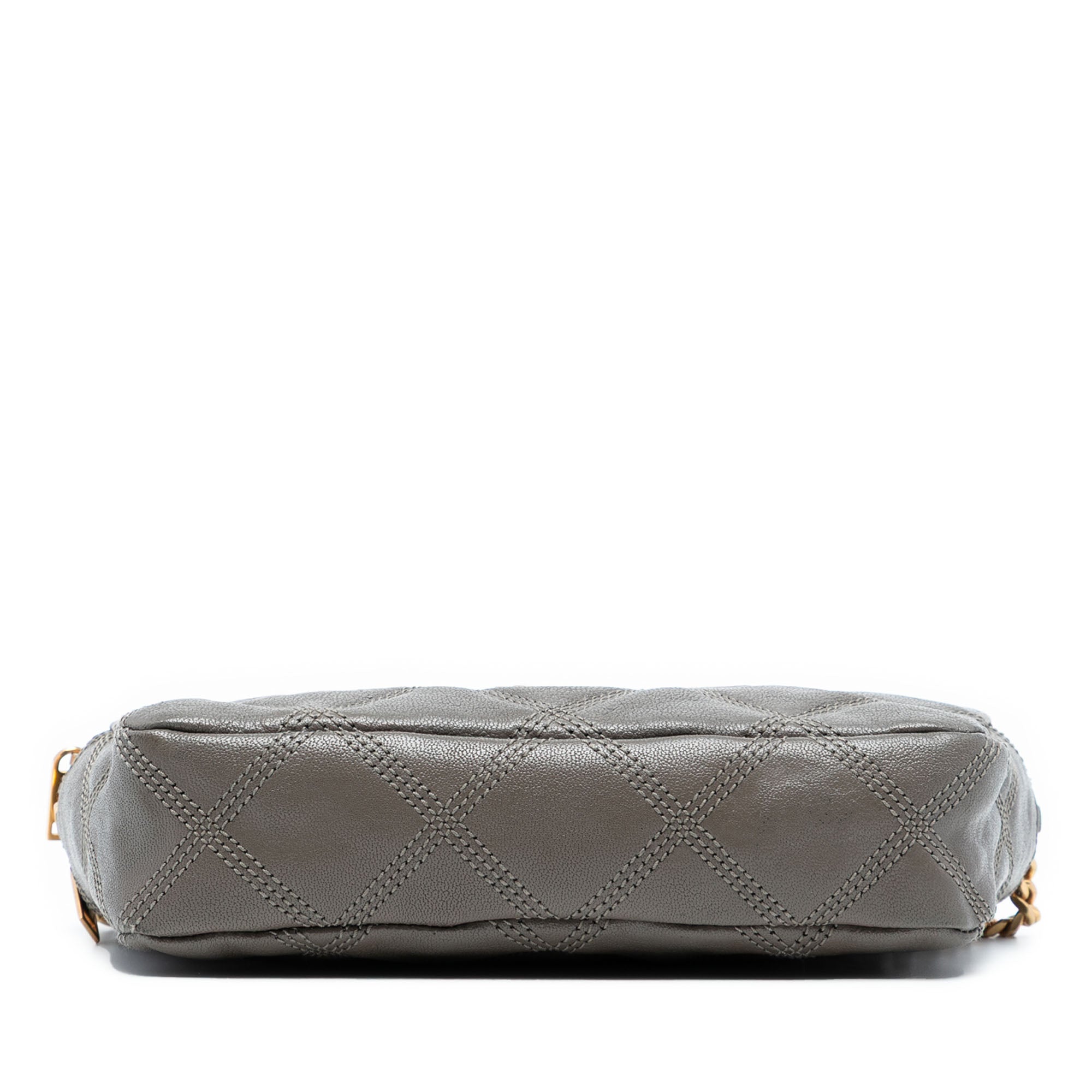 The Becky Double Zip features a quilted lambskin leather body, a chain strap with leather guard, and dual top zip closures. Retail Price: 1490.00