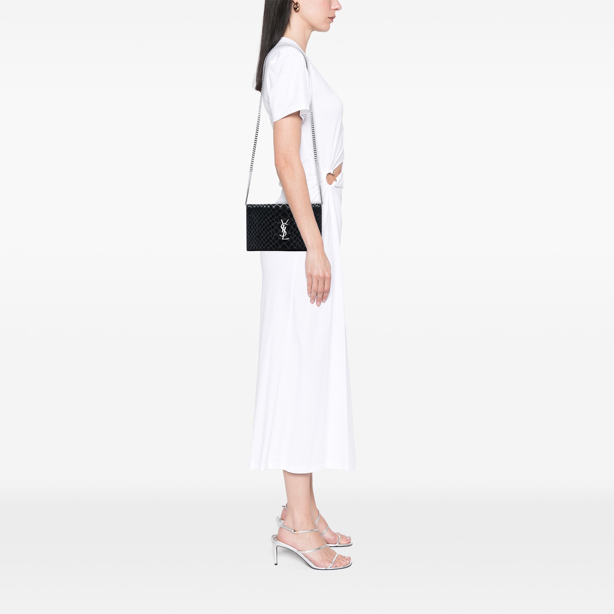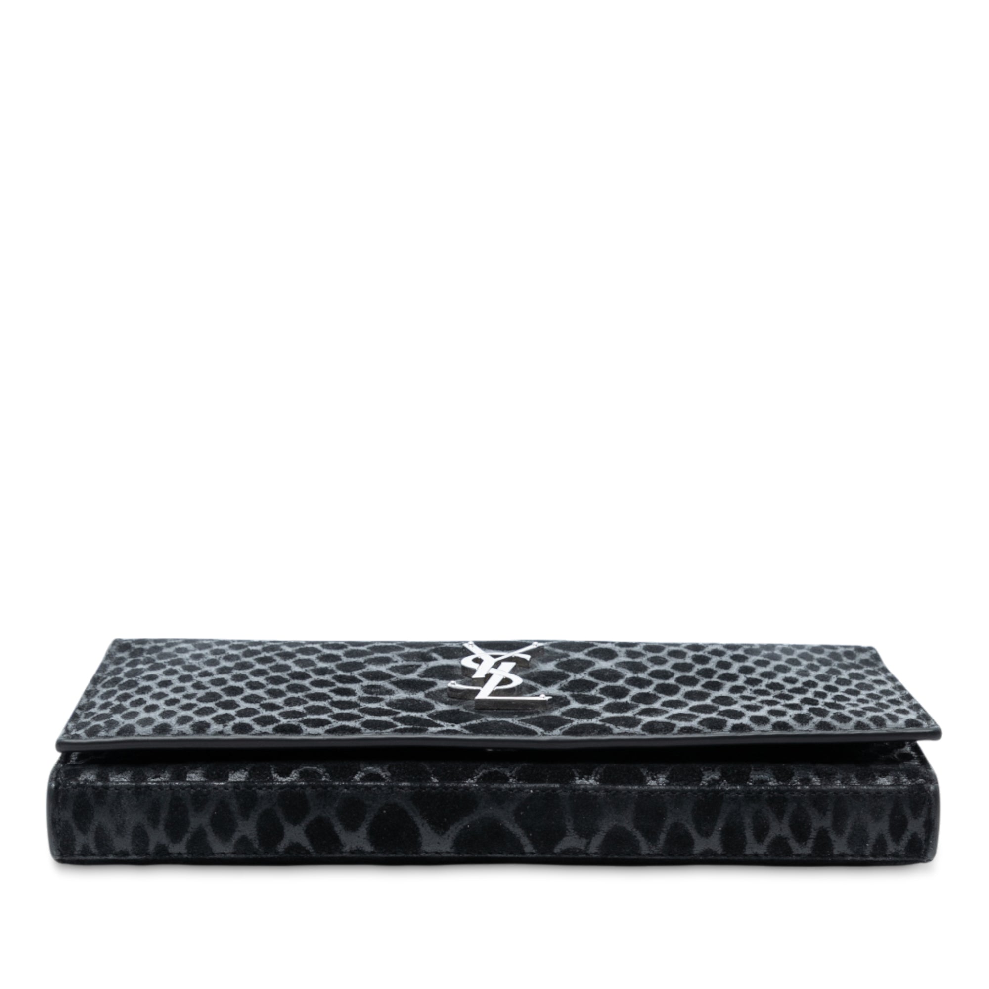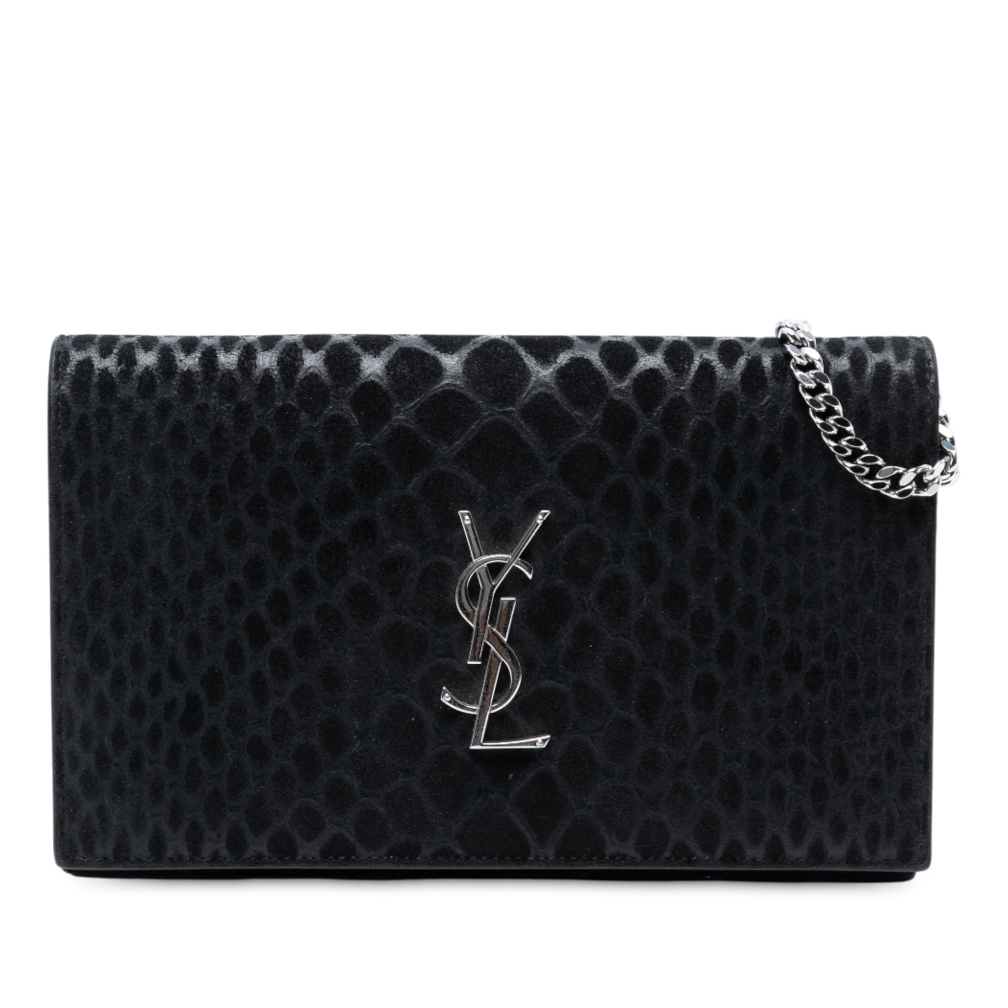 Saint Laurent Python Embossed Suede Monogram Kate Wallet on Chain