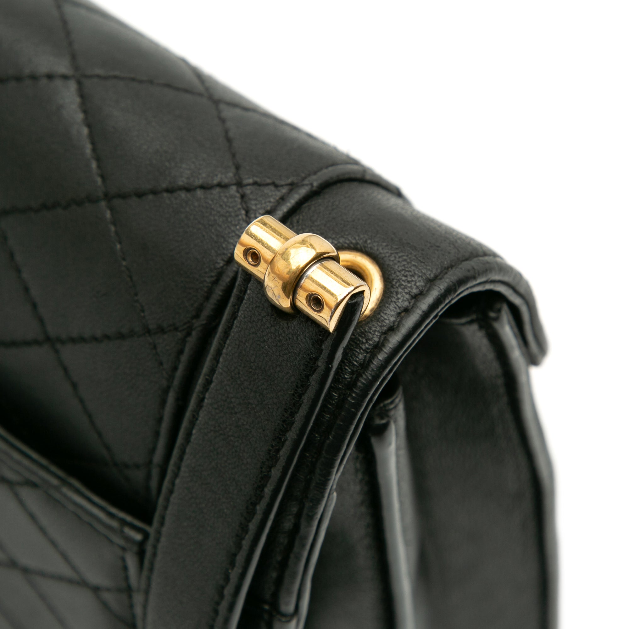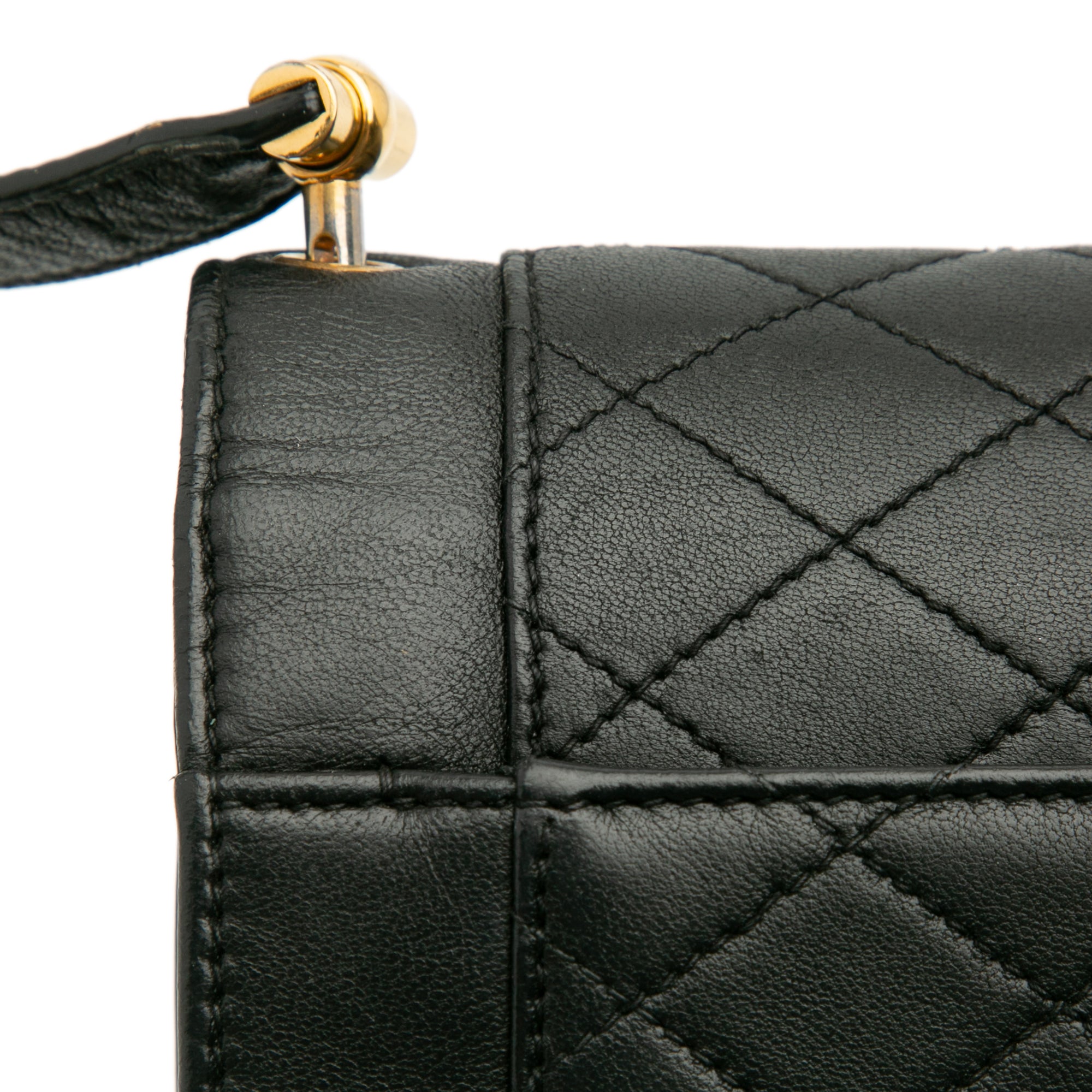 This shoulder bag features a quilted lambskin leather body, an adjustable flat leather strap, a front flap with magnetic snap closure, and an interior zip pocket. Retail Price: 2860.00