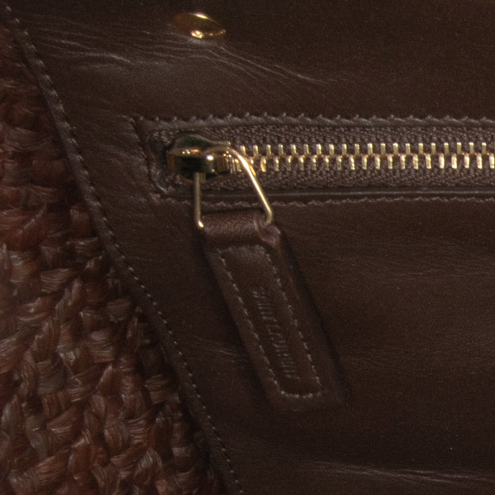 This tote bag features a raffia body, flat leather handles, an open top, and an interior zip pocket. Retail Price: 1650.00