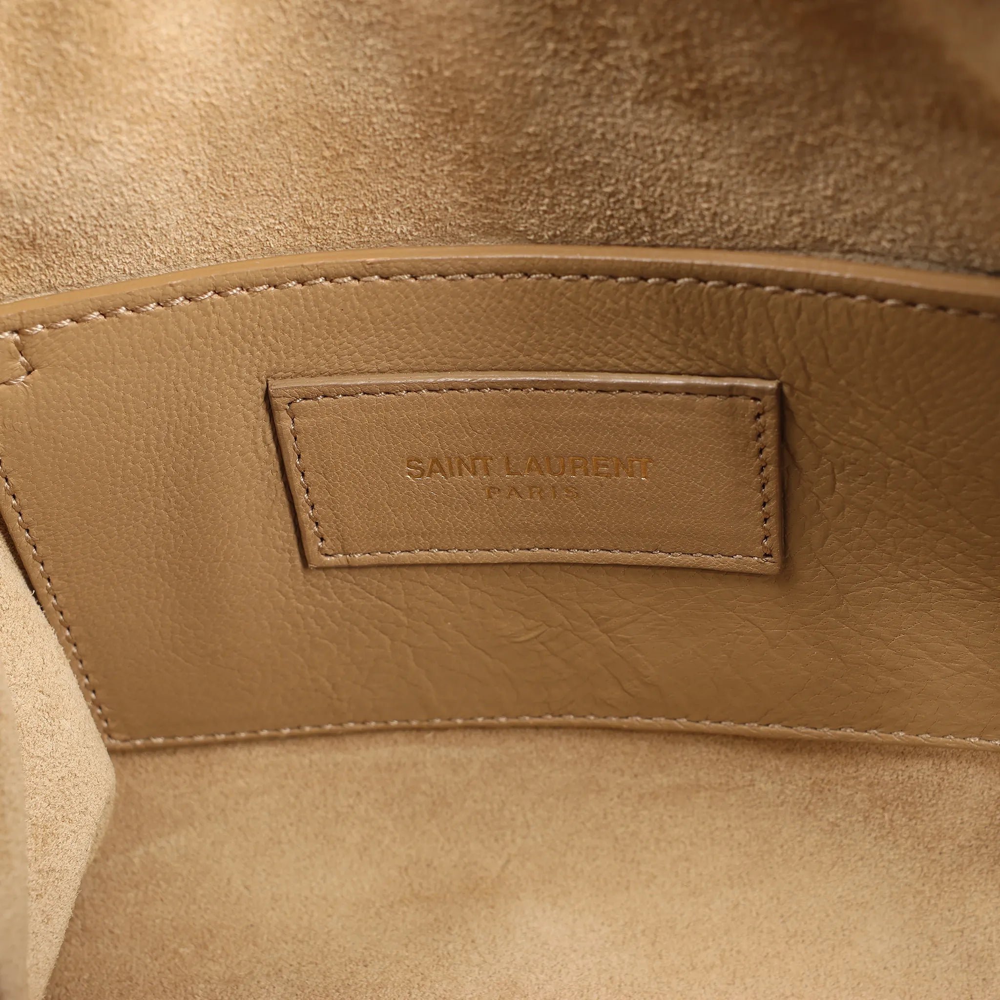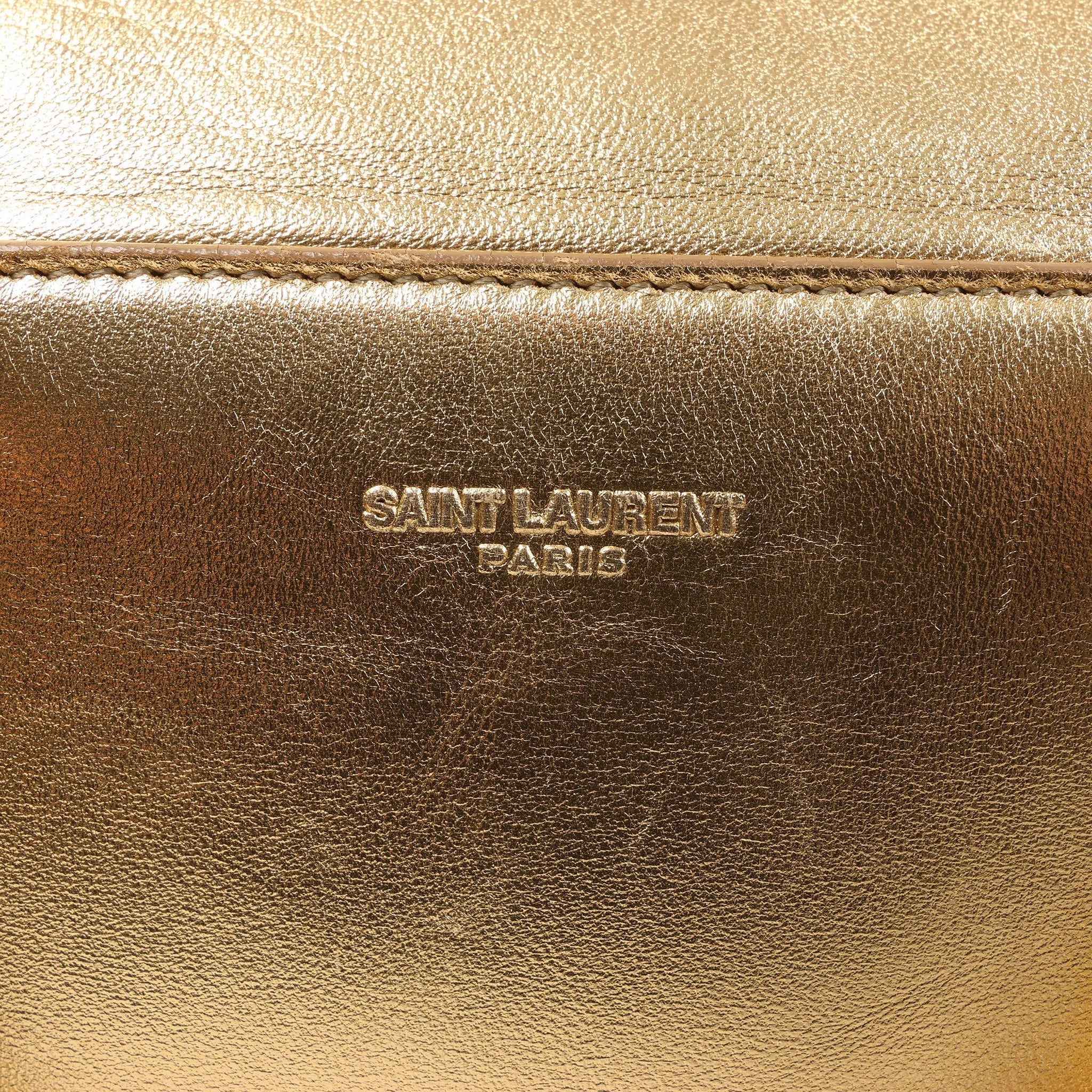 Brand: SAINT LAURENT Model: Baby Duffle Size: -Width: 22.5 cmHeight: 14 cmExterior Condition: Very goodInterior Condition: ExcellentCondition Details: The exterior leather is in great condition, but has scratches and rubbings at the bottom edges. The strap is clean in very good condition. The hardware is in good condition with some scratches. The interior lining is overall in great condition.Colour: GoldInterior Colour: BeigeHardware Colour: GoldMaterial: LeatherComes With: -