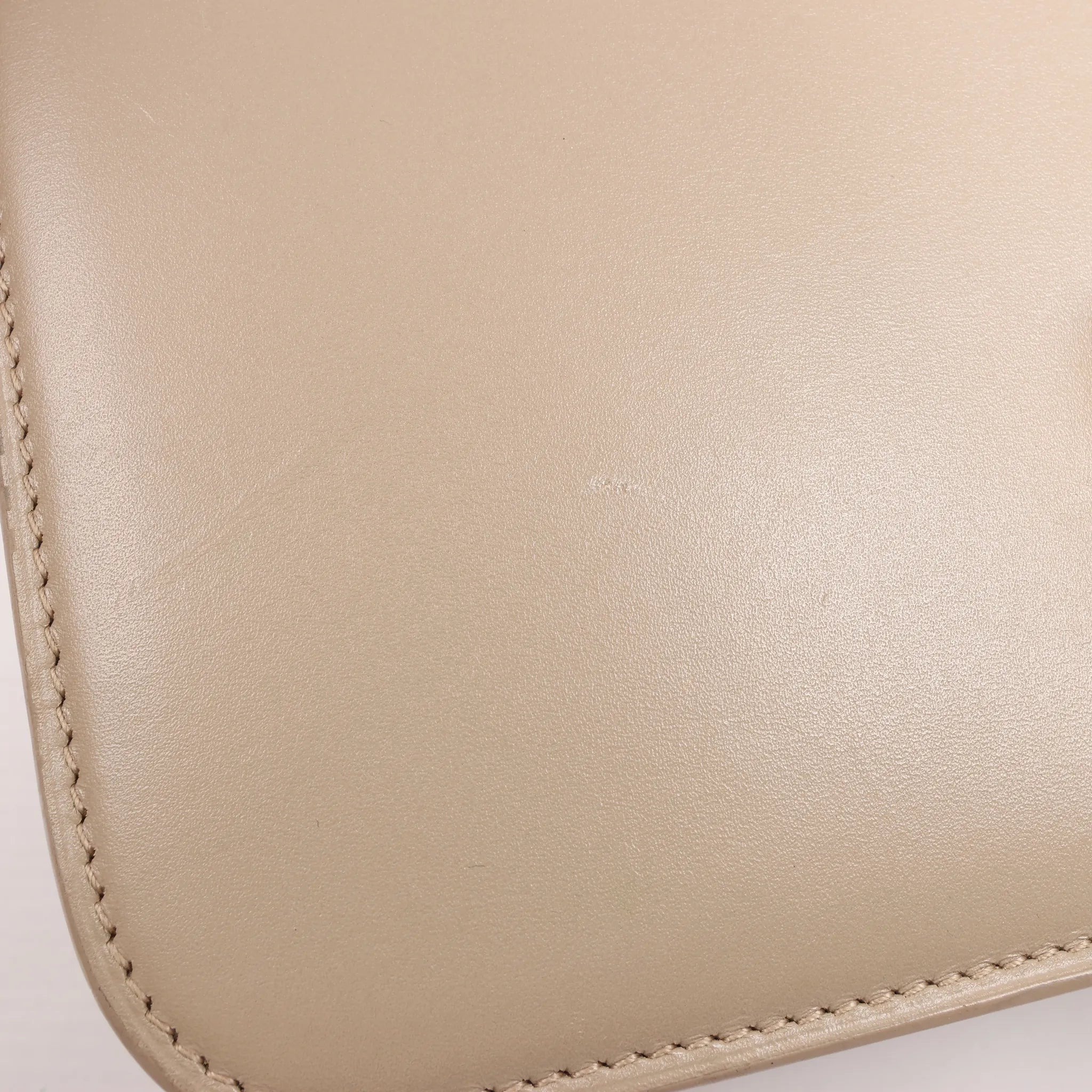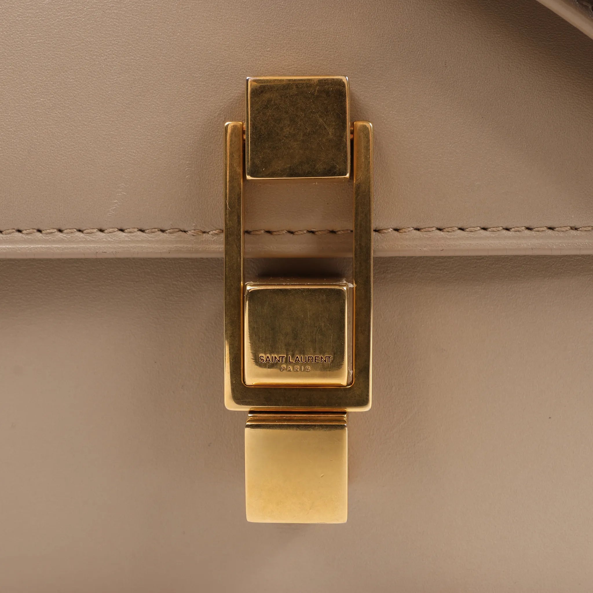 Brand: SAINT LAURENT Model: CarreSize: -Width: 22.5 cmHeight: 17 cmExterior Condition: ExcellentInterior Condition: ExcellentCondition Details: The exterior leather is in great condition, but has some usage scratches at the front. The strap is clean in very good condition. The hardware is in good condition with scratches. The interior lining is overall in great condition.Colour: BeigeInterior Colour: BeigeHardware Colour: GoldMaterial: LeatherComes With: Dustbag, box