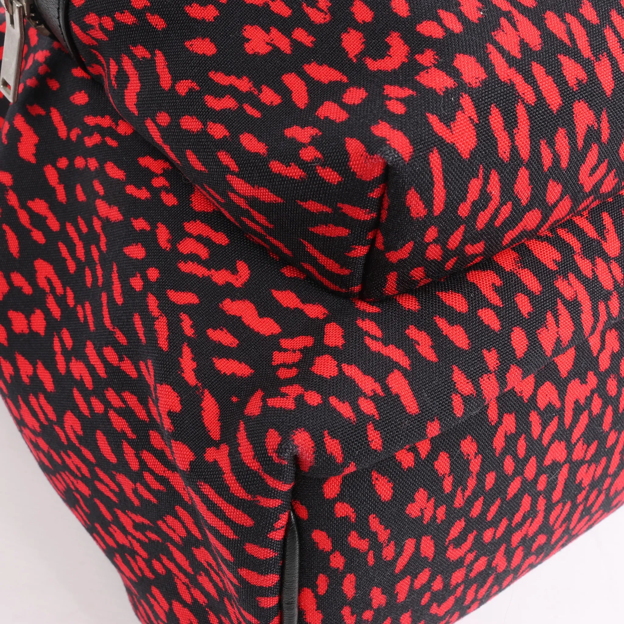 Saint Laurent Paris Leopard Hunting Canvas x Leather Backpack in Red x Black 326865 Secondhand