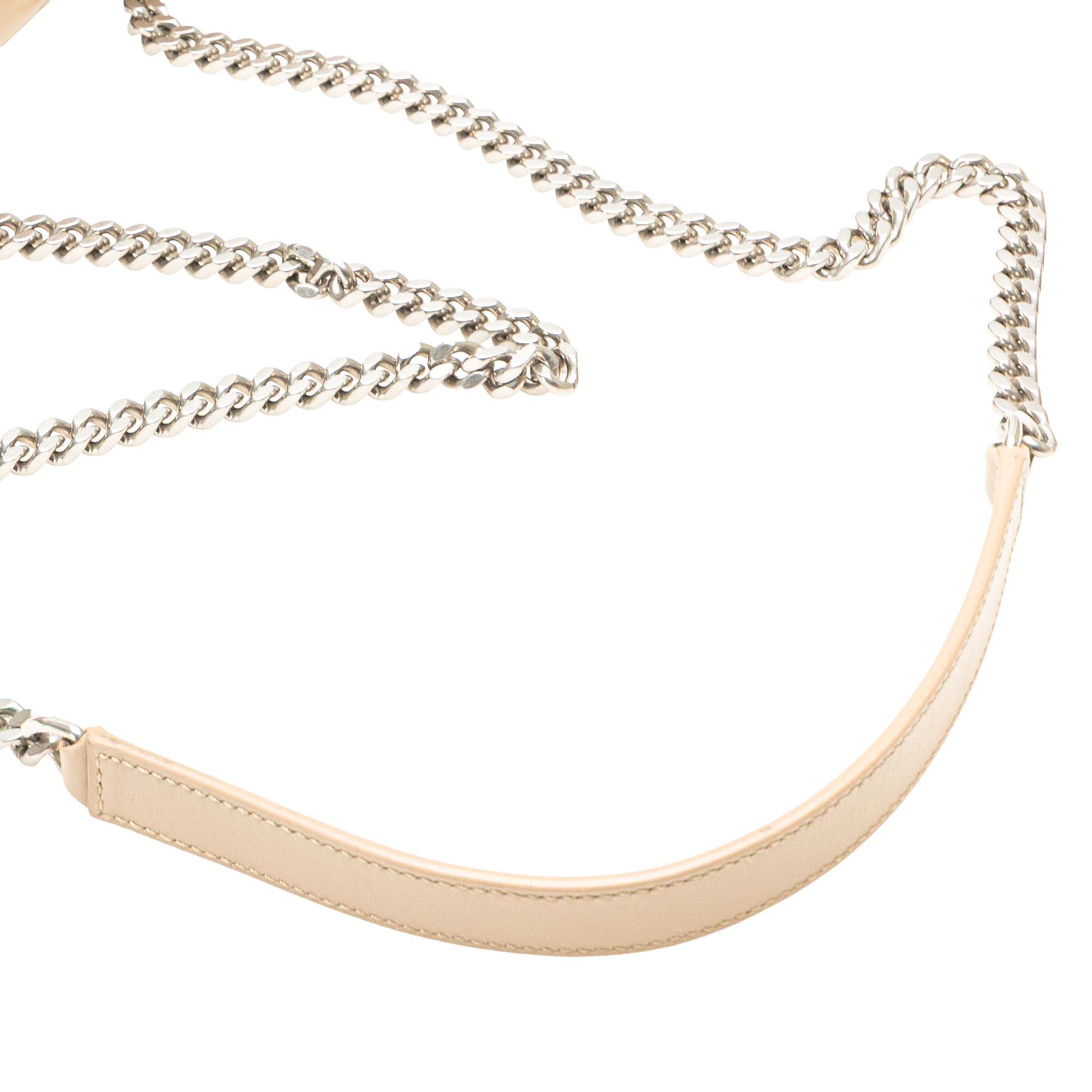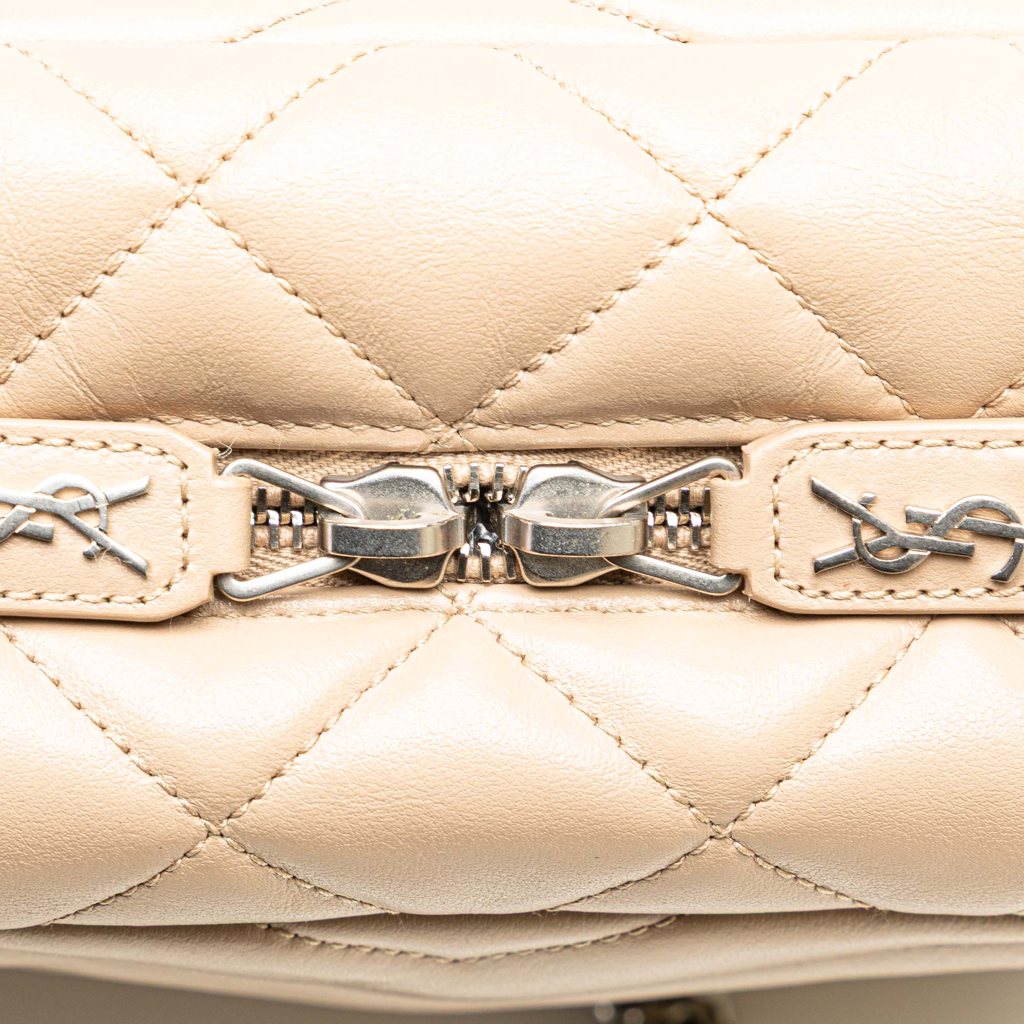 This crossbody bag features a quilted leather body, a curb chain and leather strap, a top zip closure, and interior zip and slip pockets. Retail Price: 1550.00