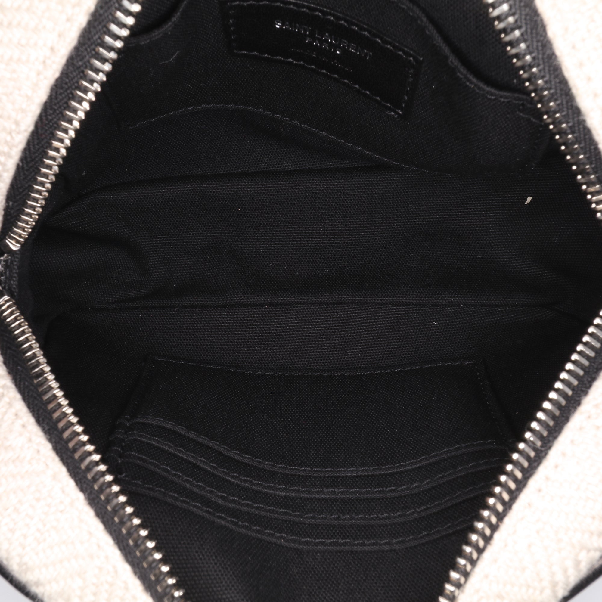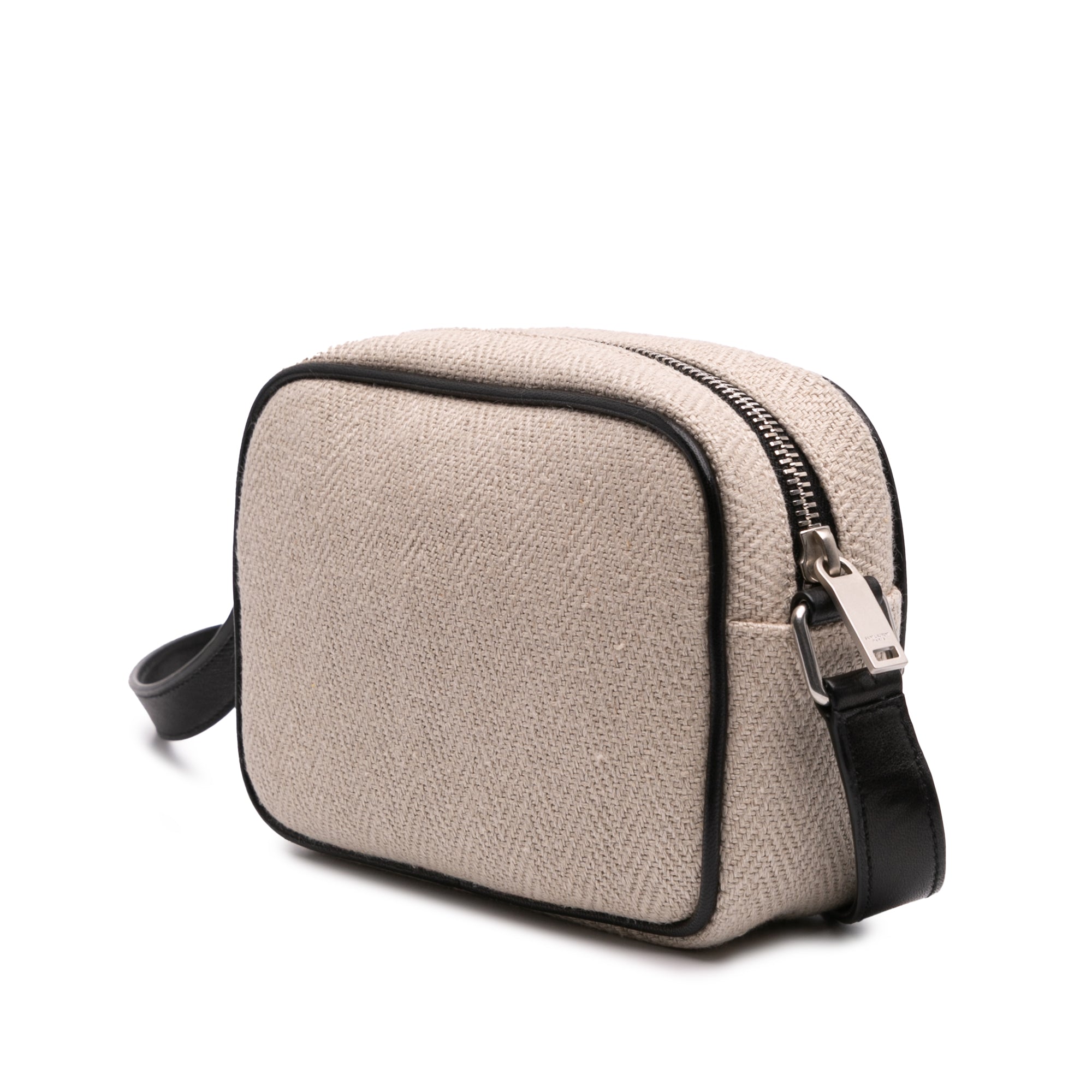 The Camp features a canvas body with leather trim, an adjustable flat leather strap, a top zip closure, an exterior zip pocket, and interior slip pockets. Inclusion: Dust bag. Retail Price: 1250.00