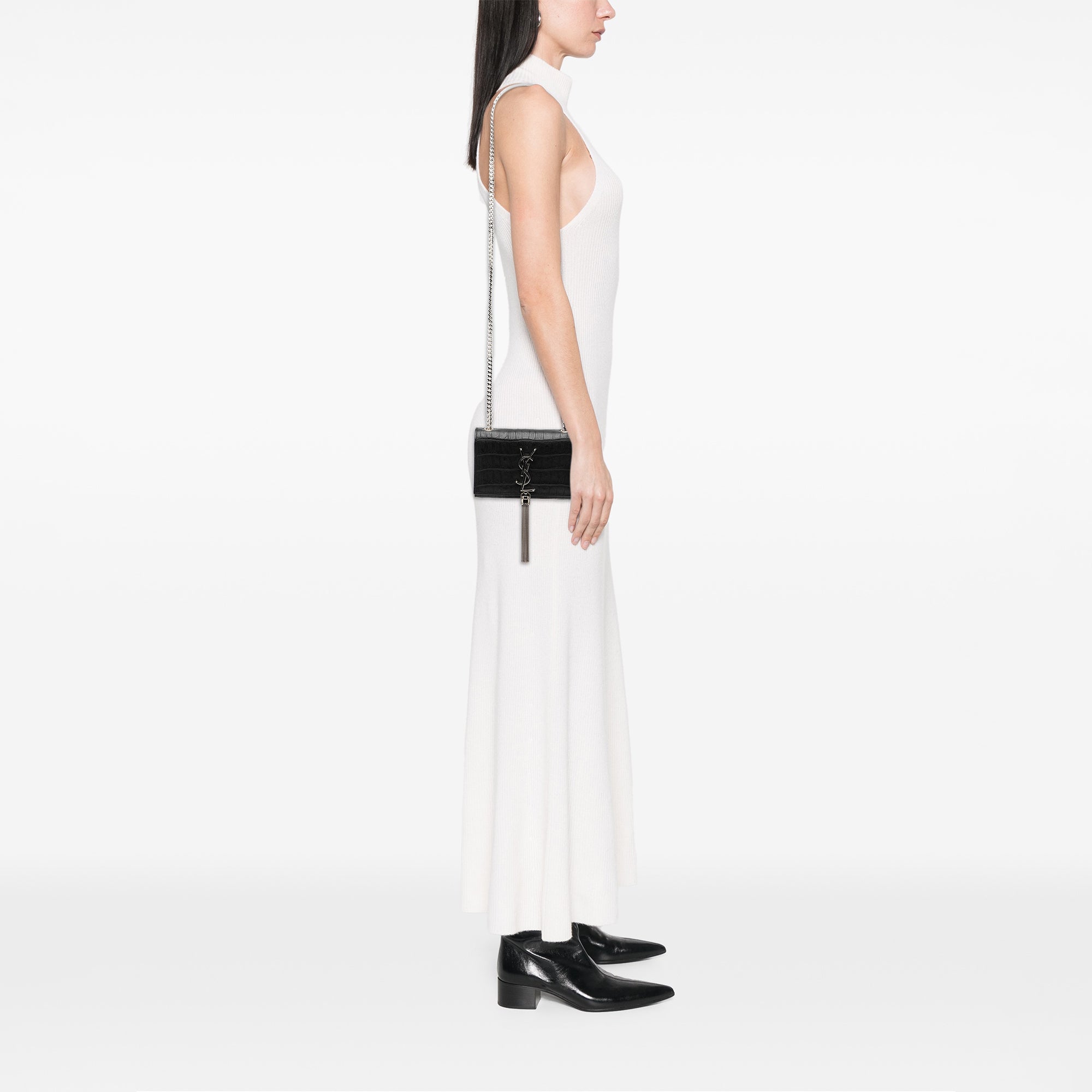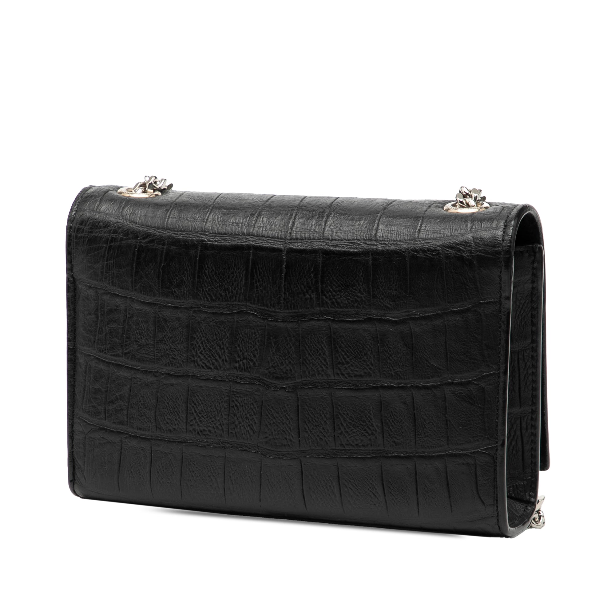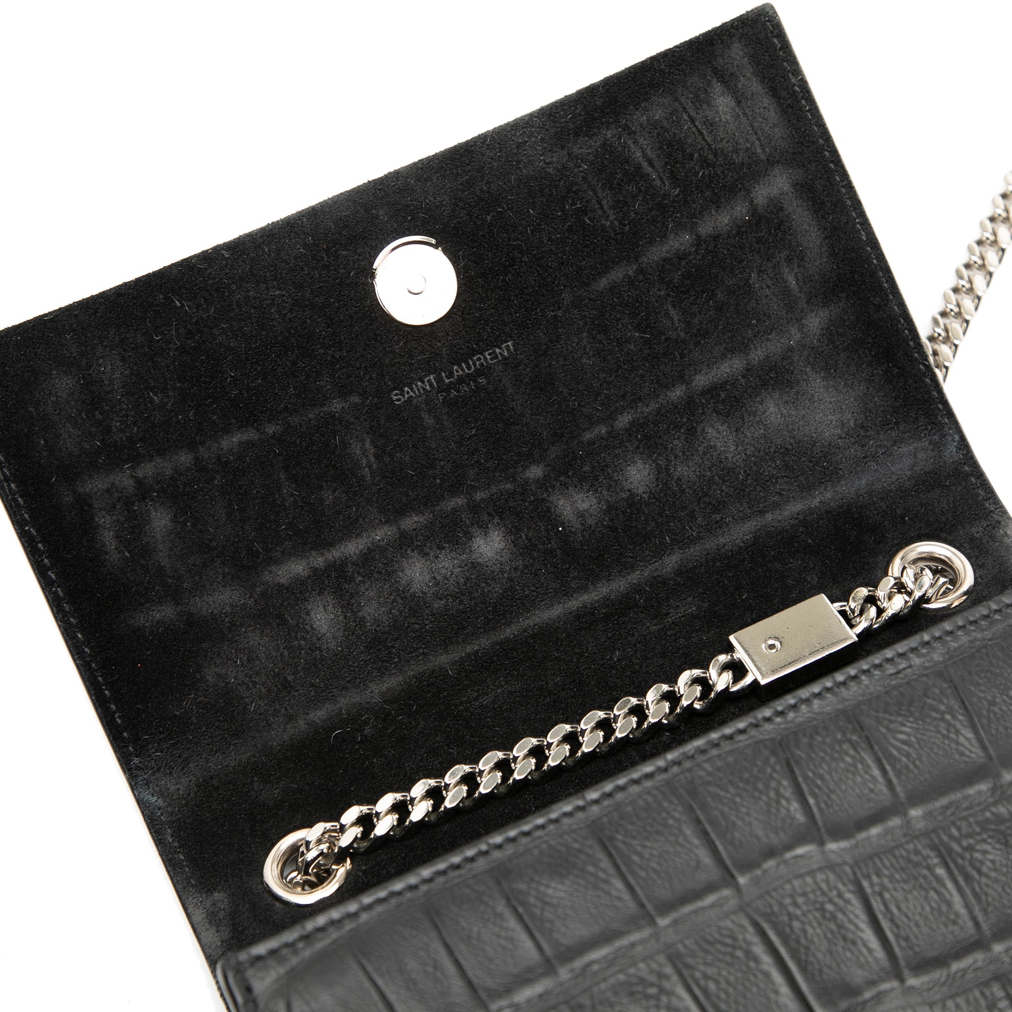 Saint Laurent Small Croc Embossed Leather Monogram Kate Tassel Crossbody