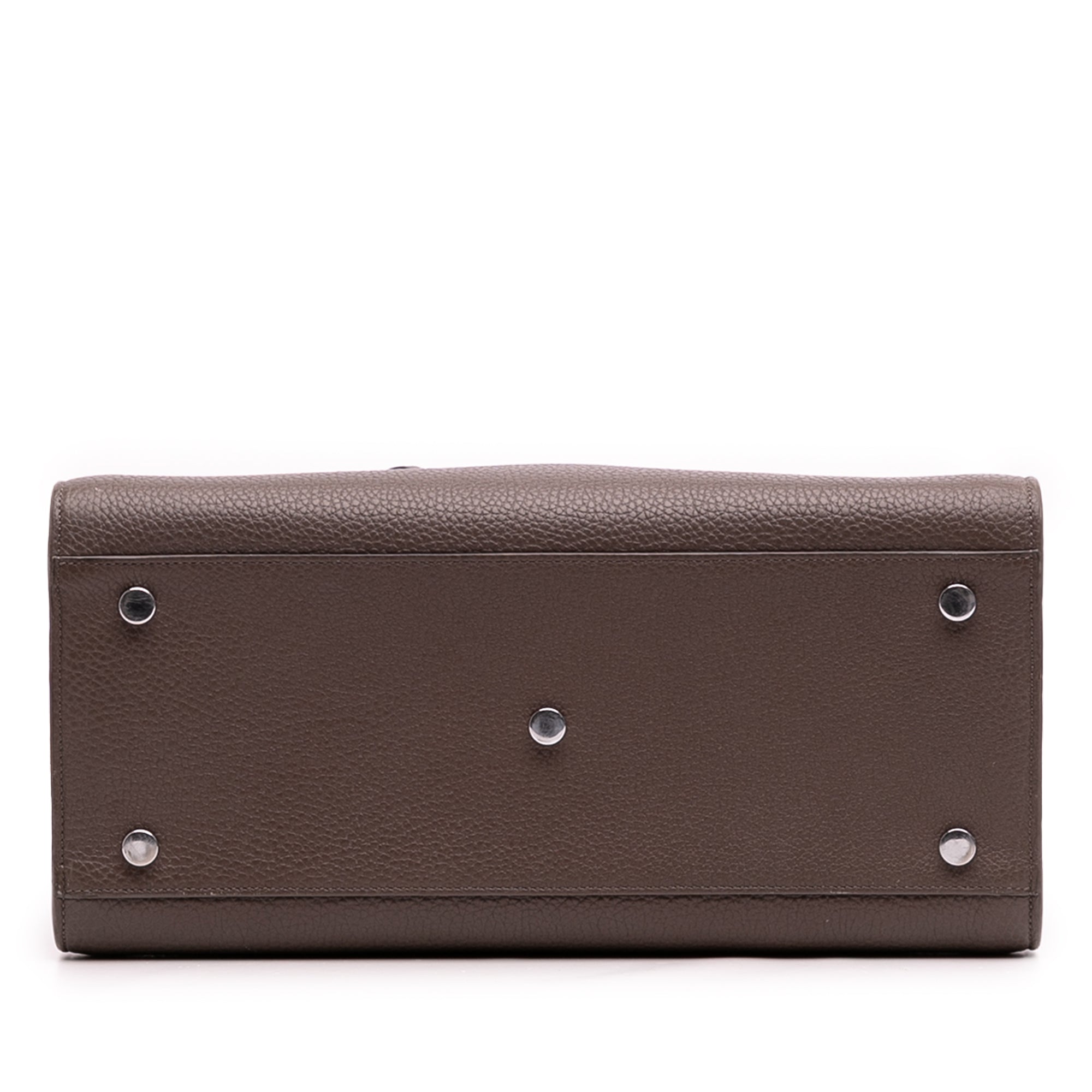 The Sac De Jour features a leather body, rolled leather handles, a detachable flat strap, an open top, an interior zip compartment, and interior zip and slip pockets. Retail Price: 1670.00