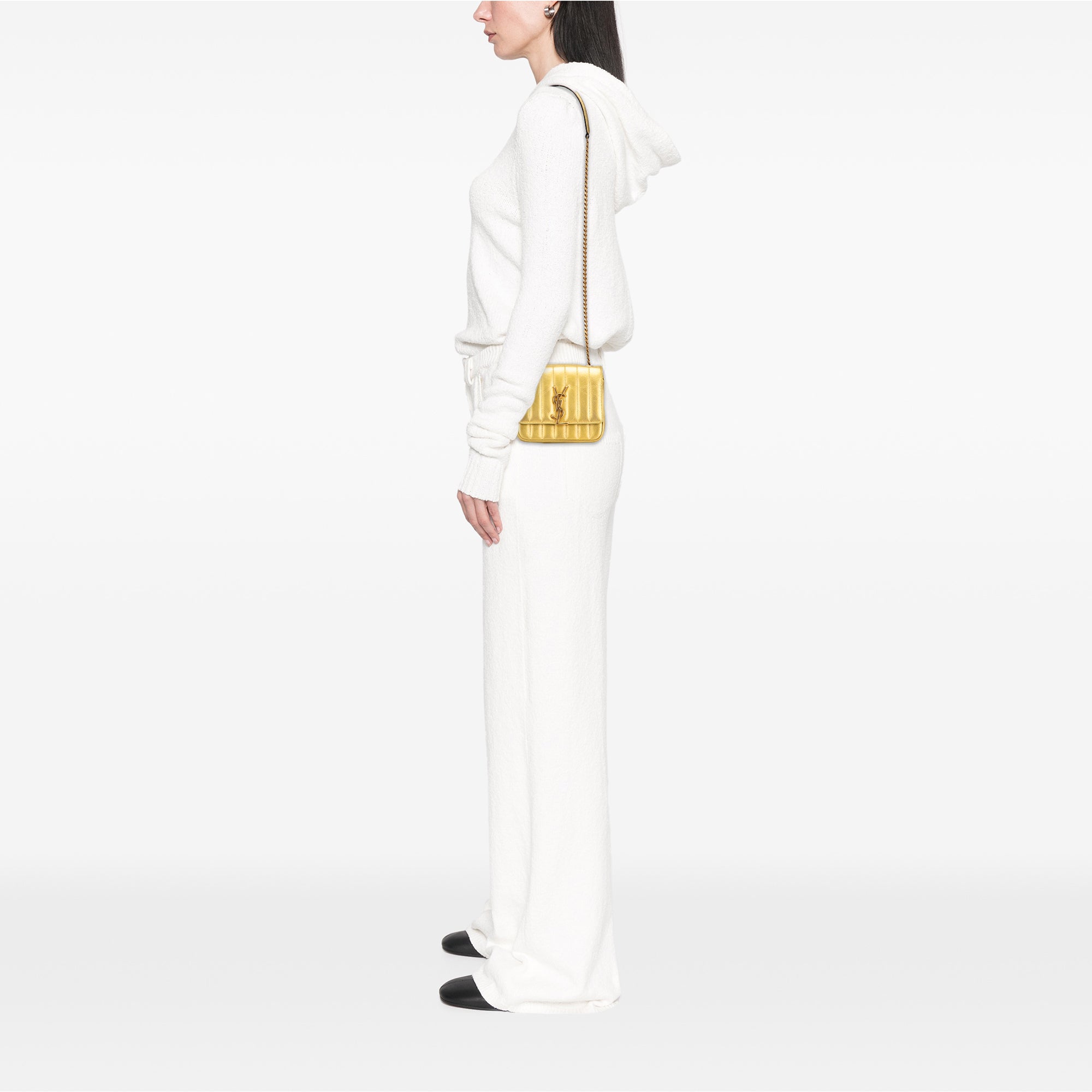 Saint Laurent Small Metallic Grain De Poudre Monogram Vicky Chain Bag