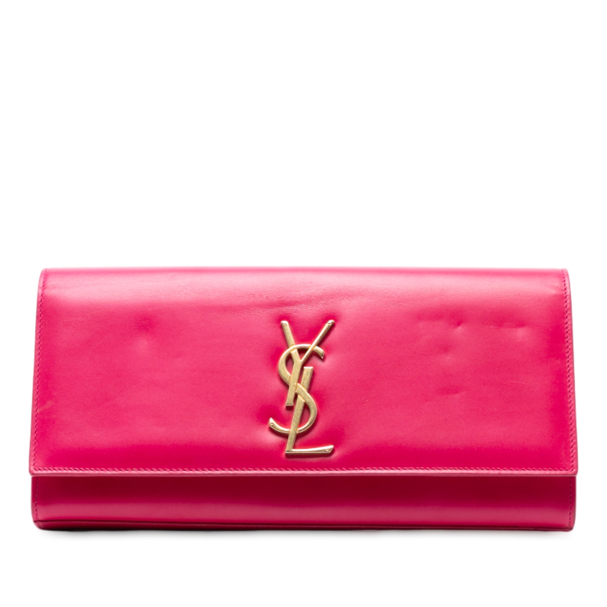 The Monogram Cassandre clutch bag features a leather body, a front flap with magnetic closure, and an interior slip pocket. Retail Price: 1000.00