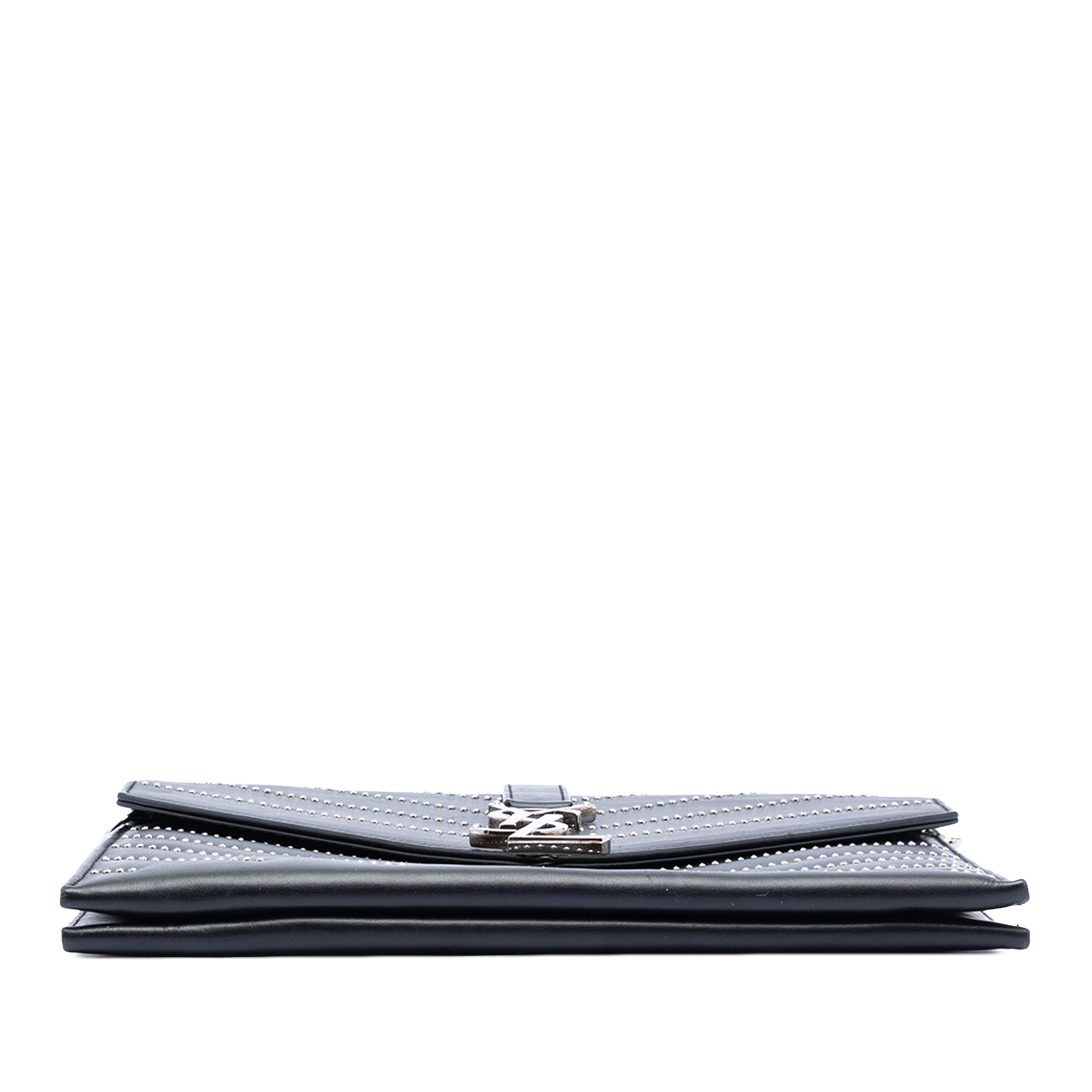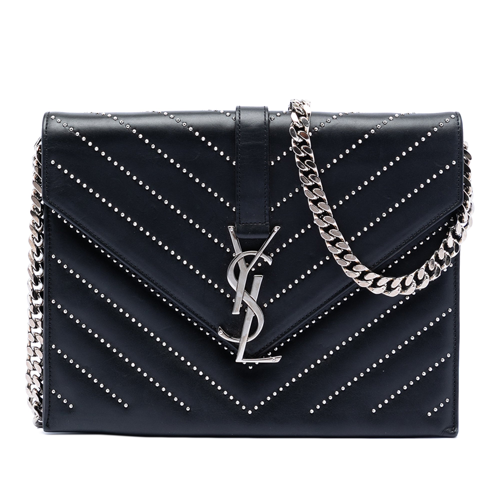 Saint Laurent Studded Chevron Calfskin Monogram Envelope Chain Flap