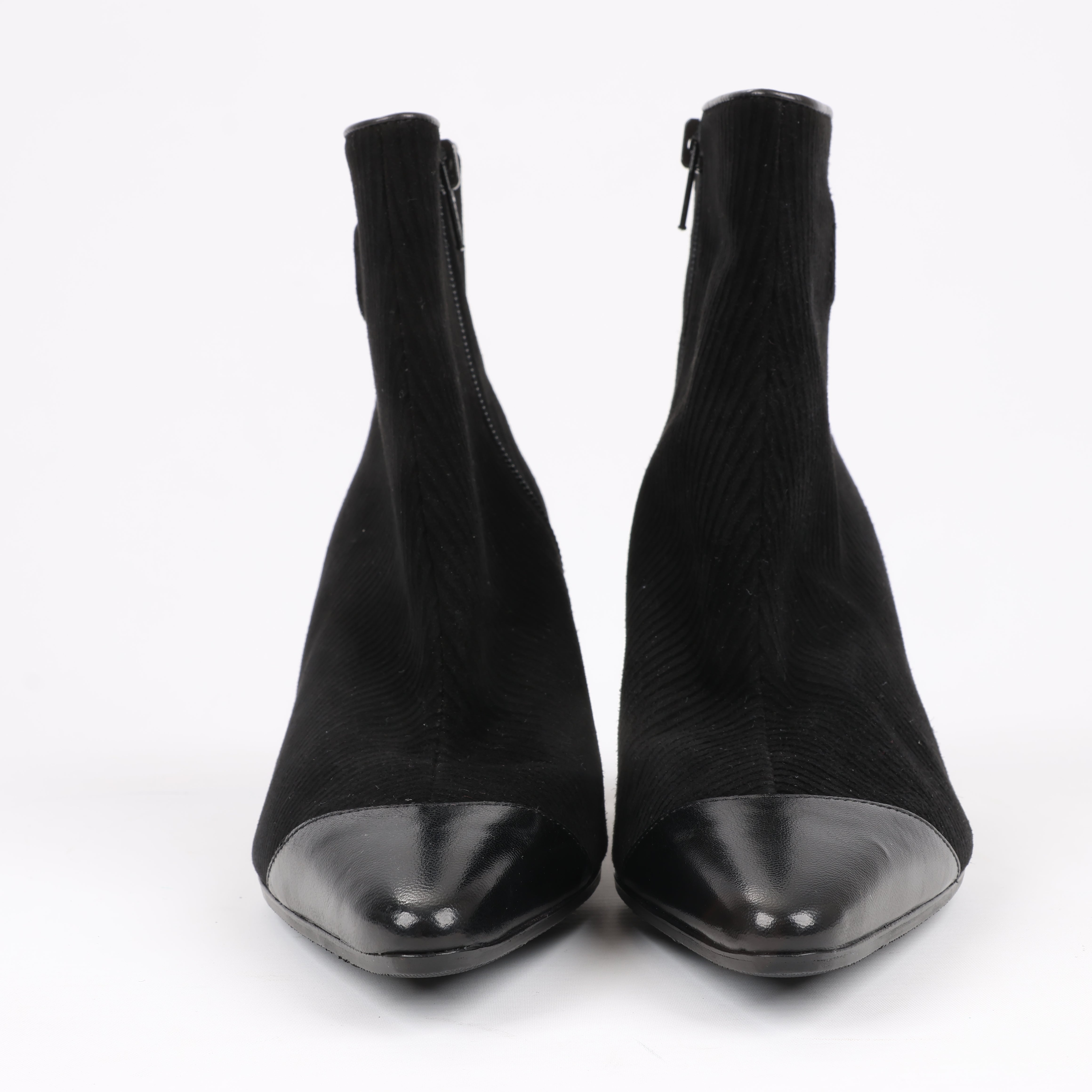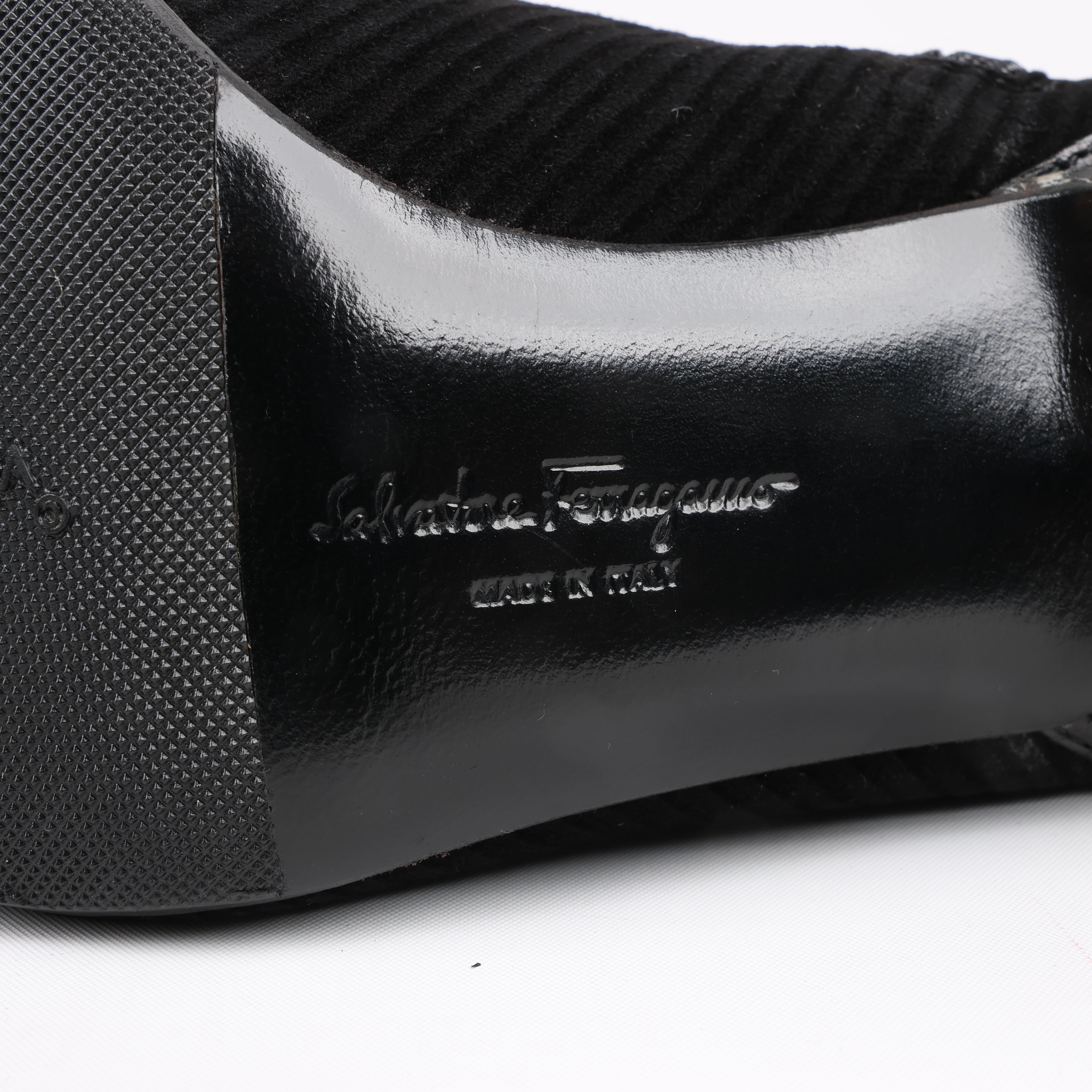 Salvatore Ferragamo Gancini Leather & Suede Ankle Boots in Black, Size 4.5 US