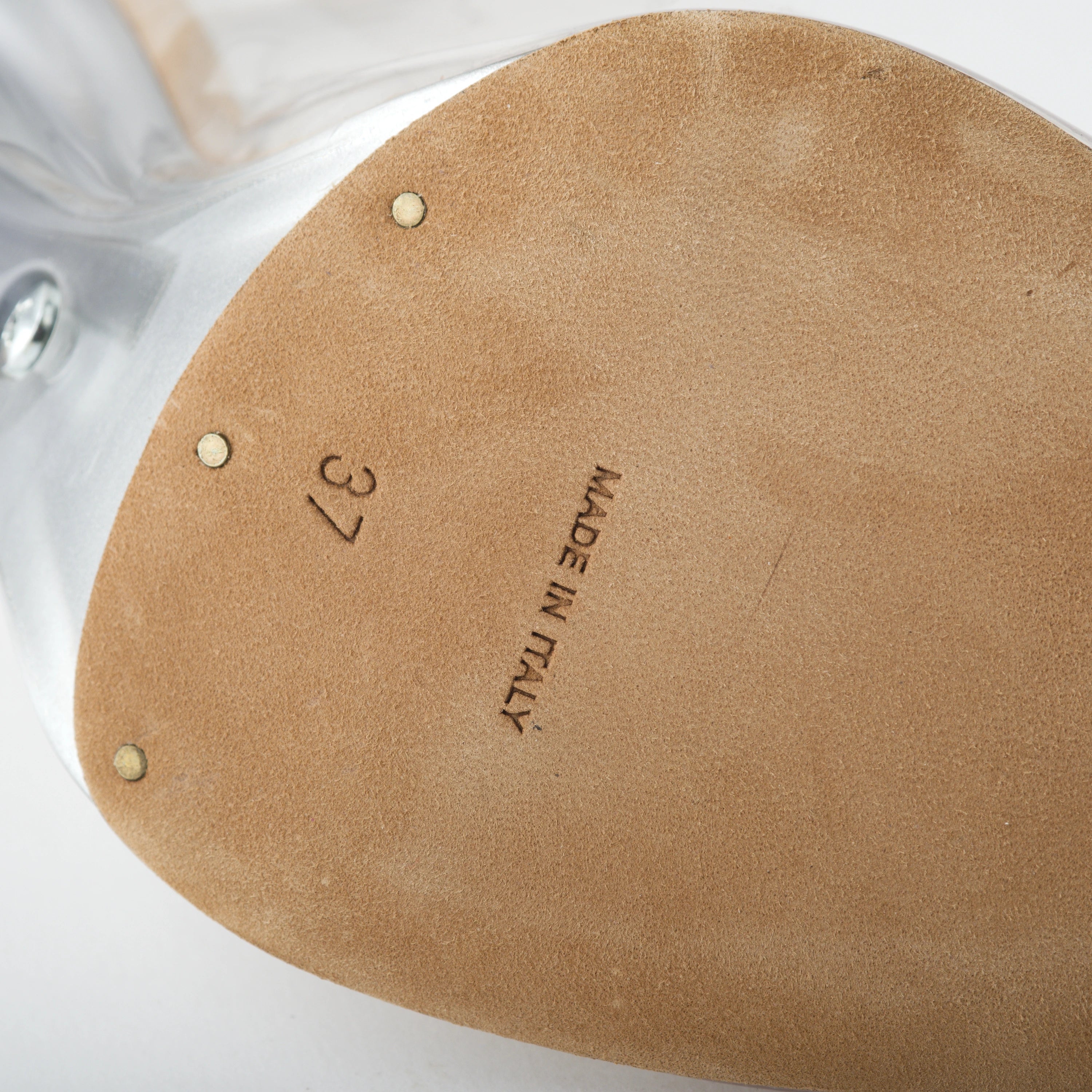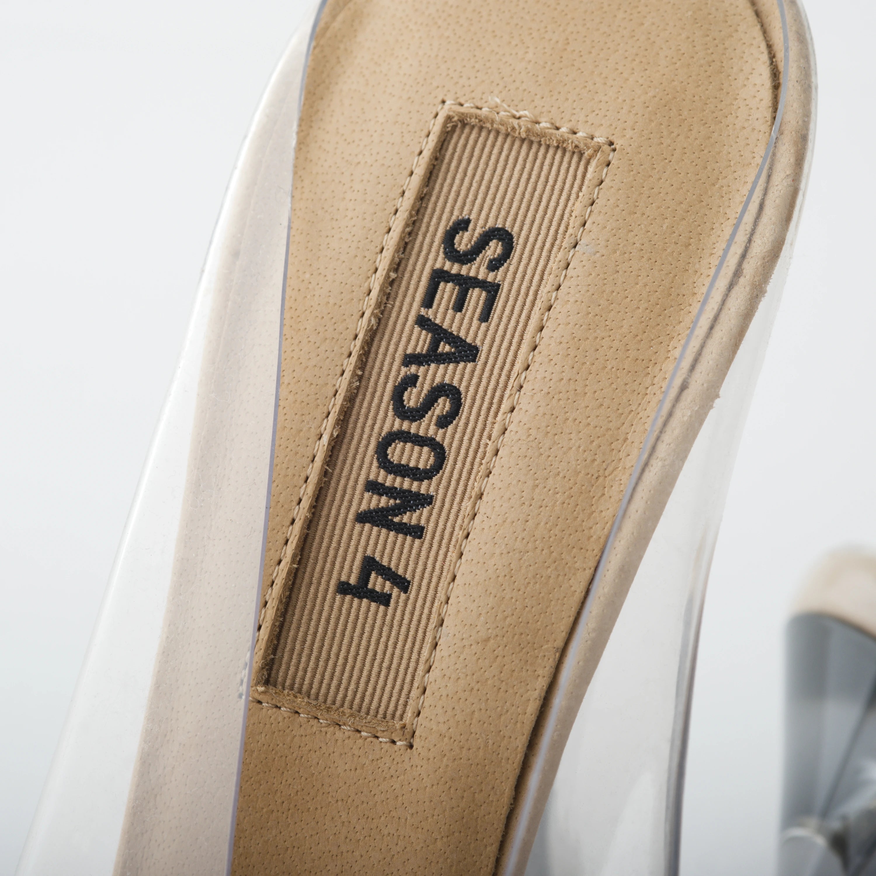 The Yeezy Season 4 Mule Heels combine cutting-edge style with an optimized fit, perfect for those seeking trend-driven shoes with a modern touch. These heeled mules are crafted from high-quality transparent PVC, a durable, lightweight, and easy-to-clean material that creates a chic and refined see-through effect.